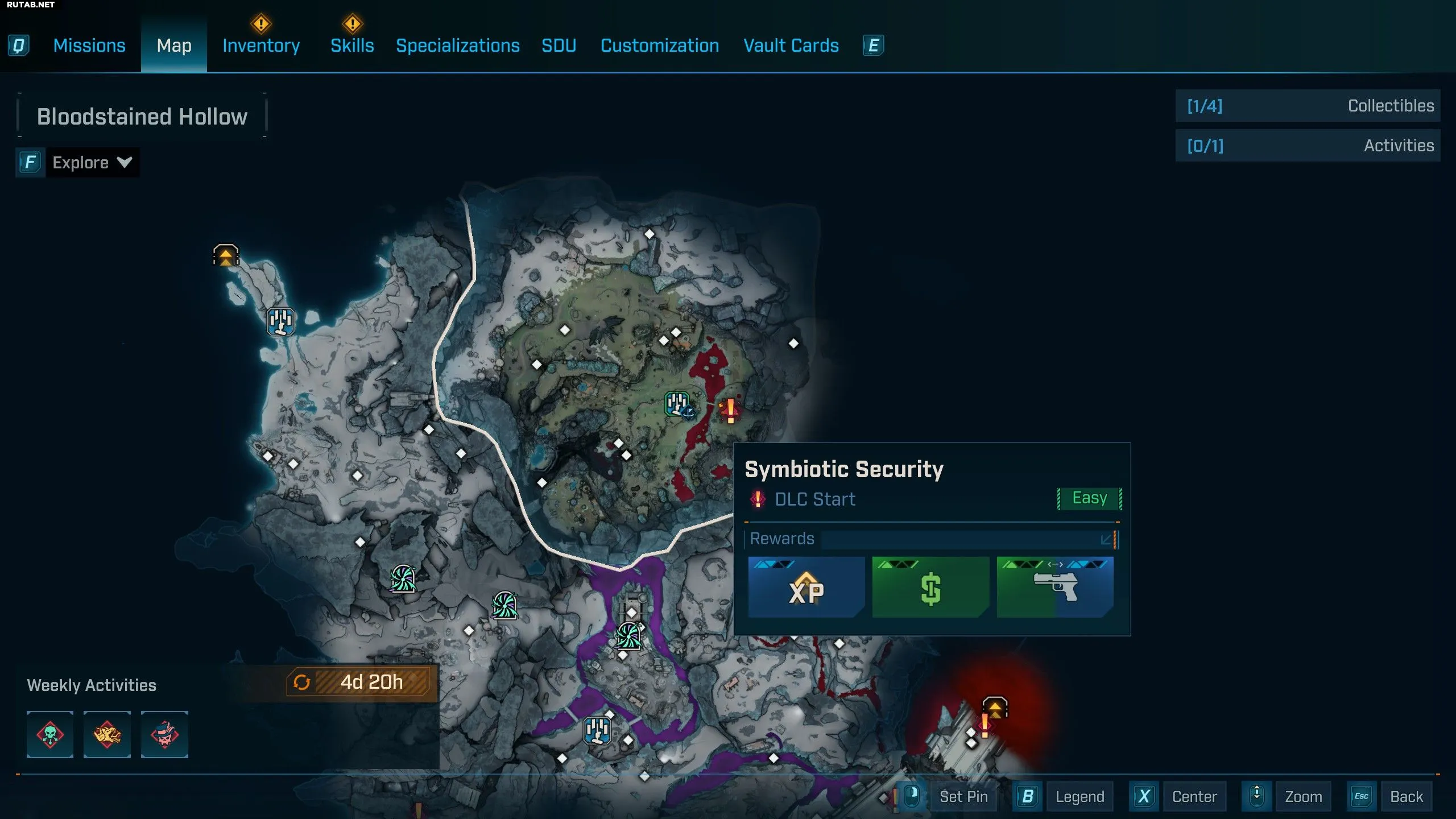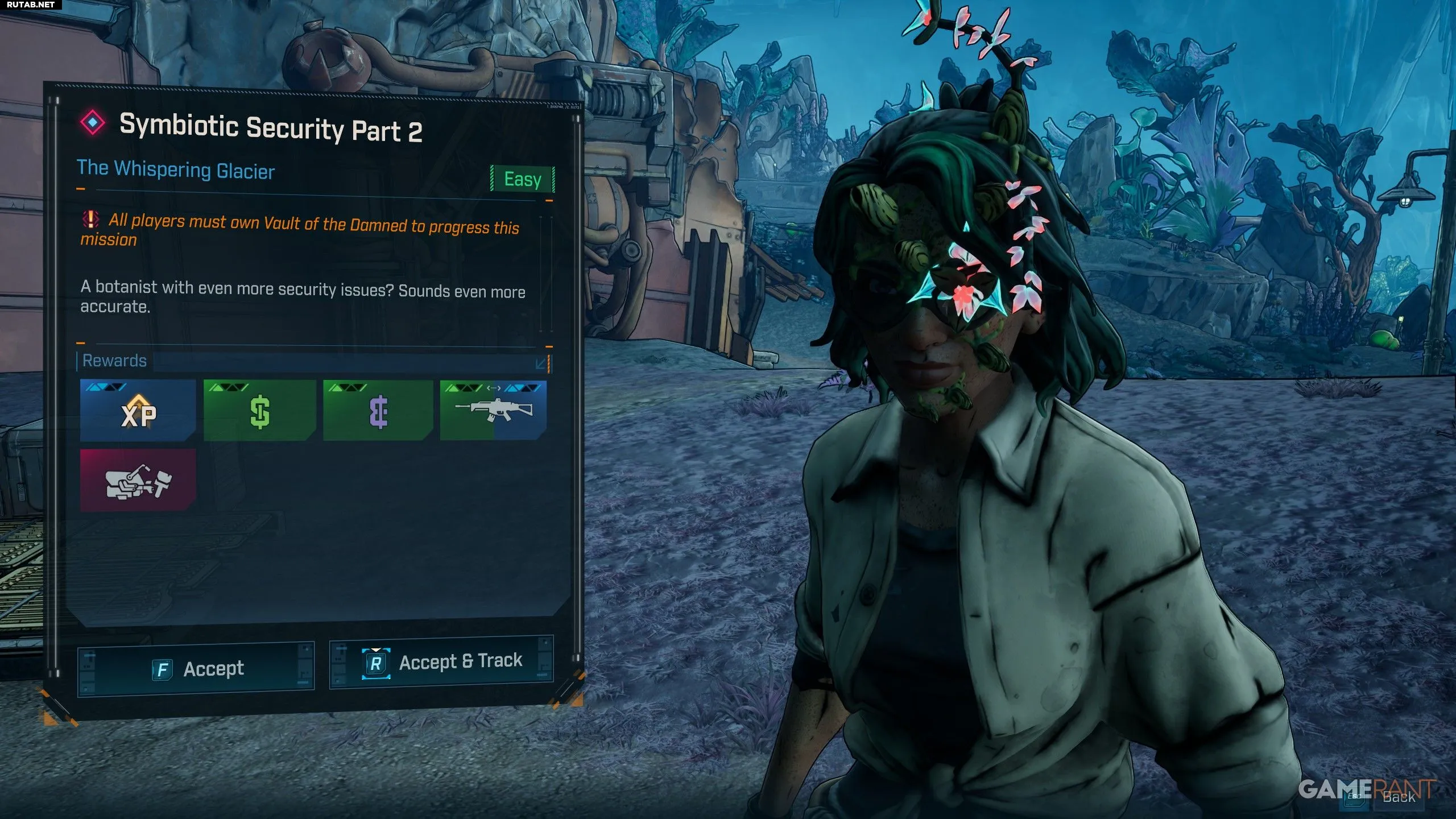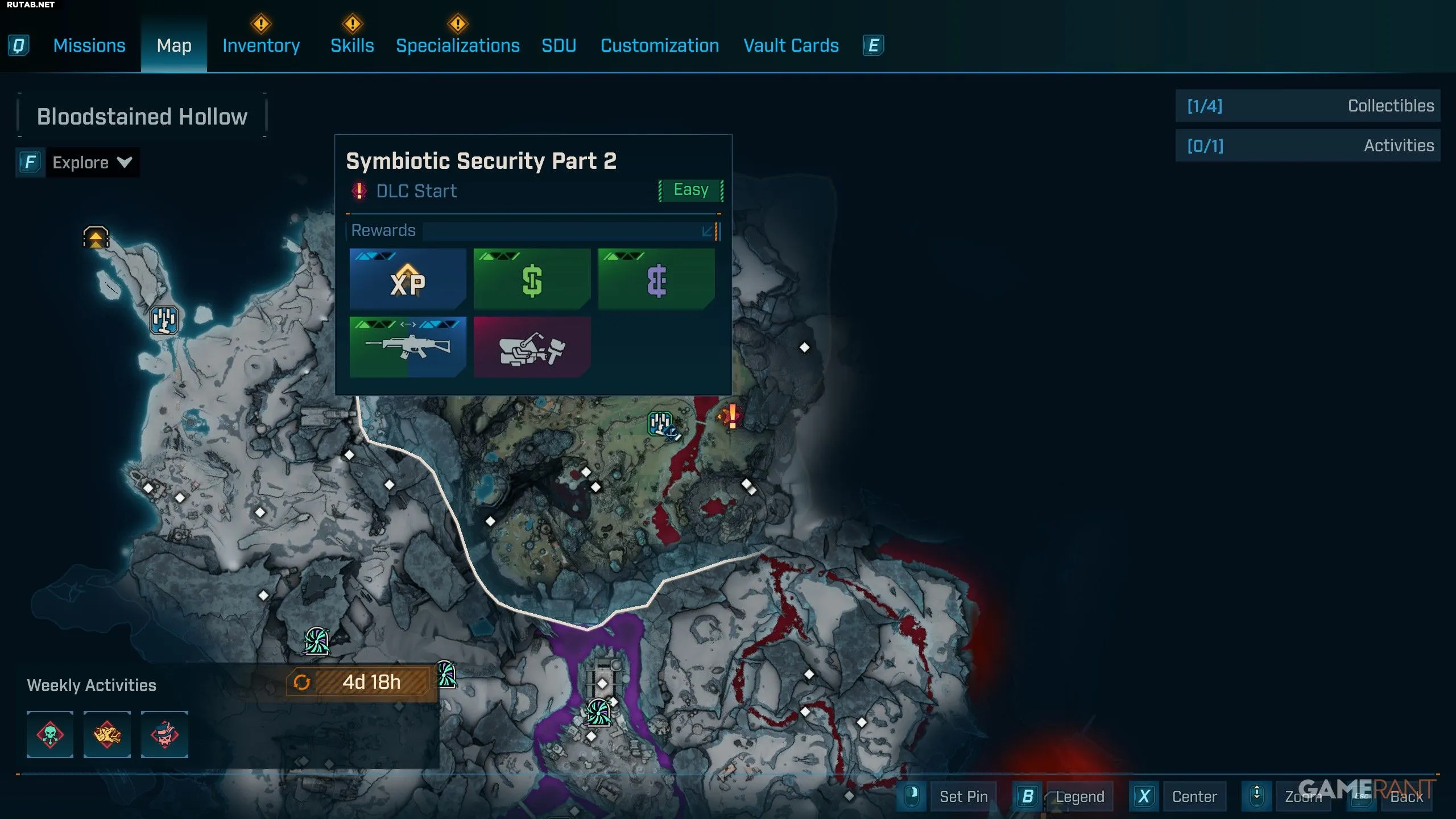 - «Симбиотическую безопасность» можно начать в саду Дафны в «Окровавленной лощине», после того как вы убьёте Безумного Эрла.