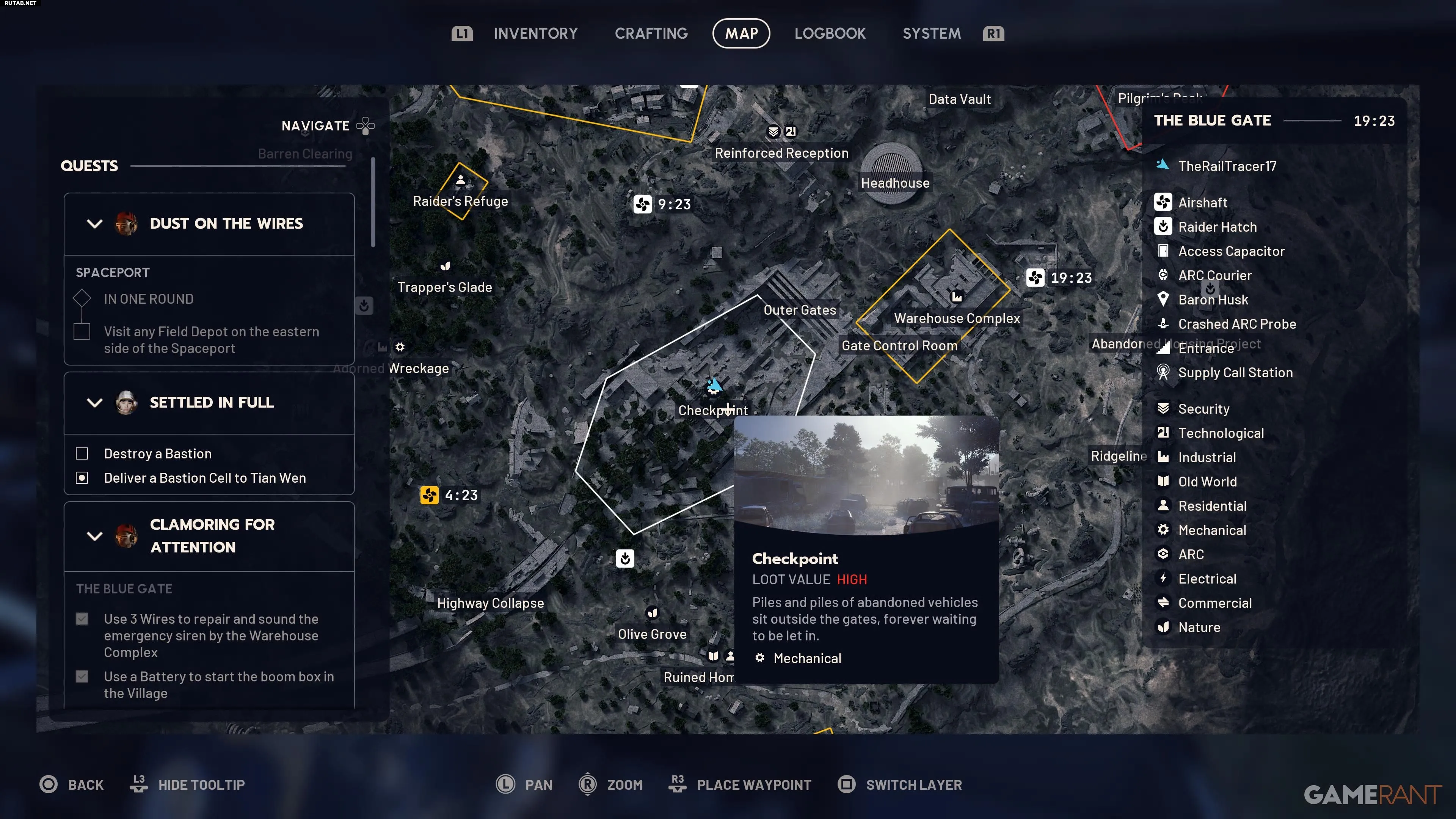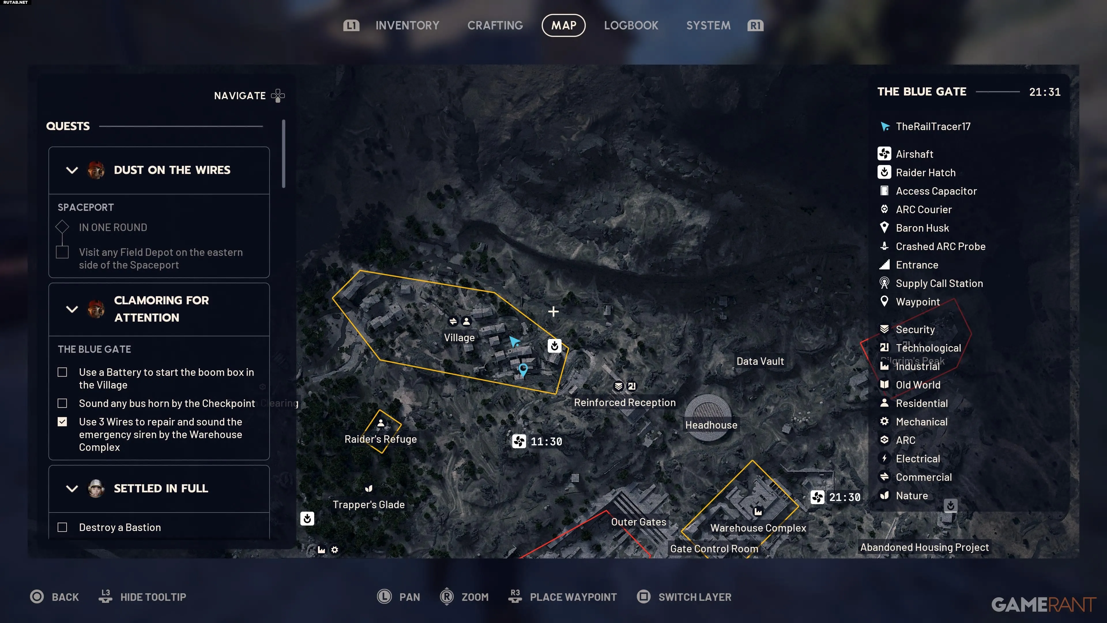 После загрузки на карту Blue Gate направляйтесь в Warehouse Complex (Комплекс складов). В северной части этой локации, на крыше главного здания, находится антенна с небольшой сиреной у основания. Взаимодействуйте с ней и используйте 3 провода для починки.
