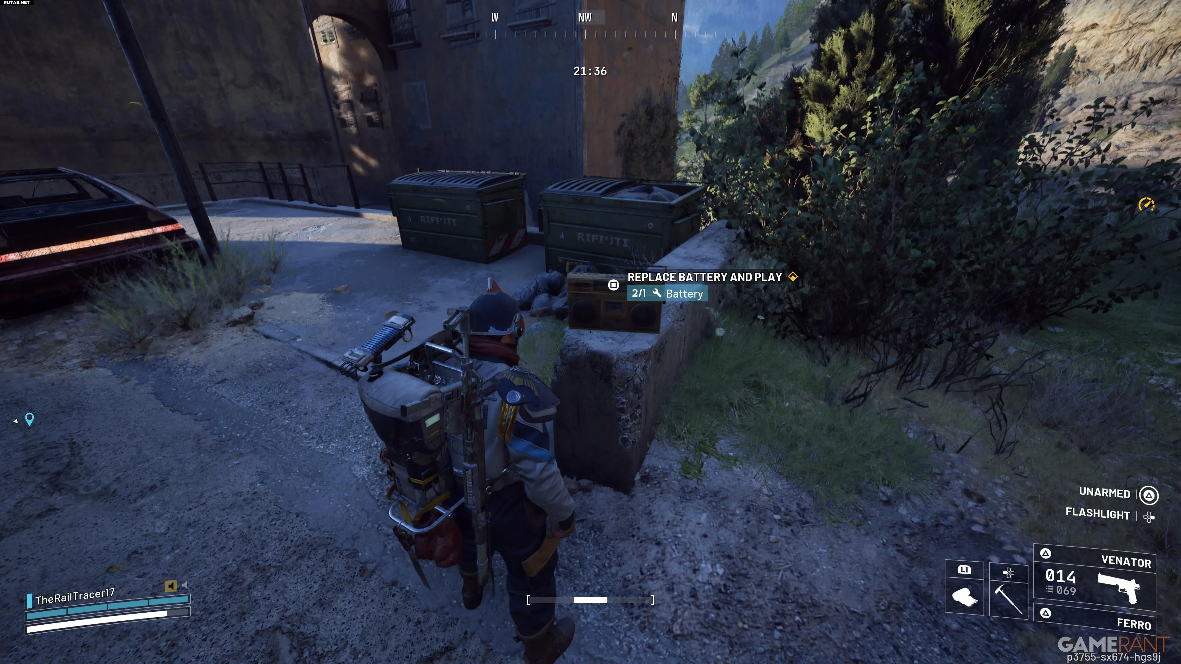 Следующая точка — Деревня (Village). Нужно добраться до её восточной стороны, чуть выше самых нижних домов на карте. Рядом с машиной, на каменной стене, вы найдёте бумбокс. Используйте на нём батарейку, чтобы выполнить второе задание.