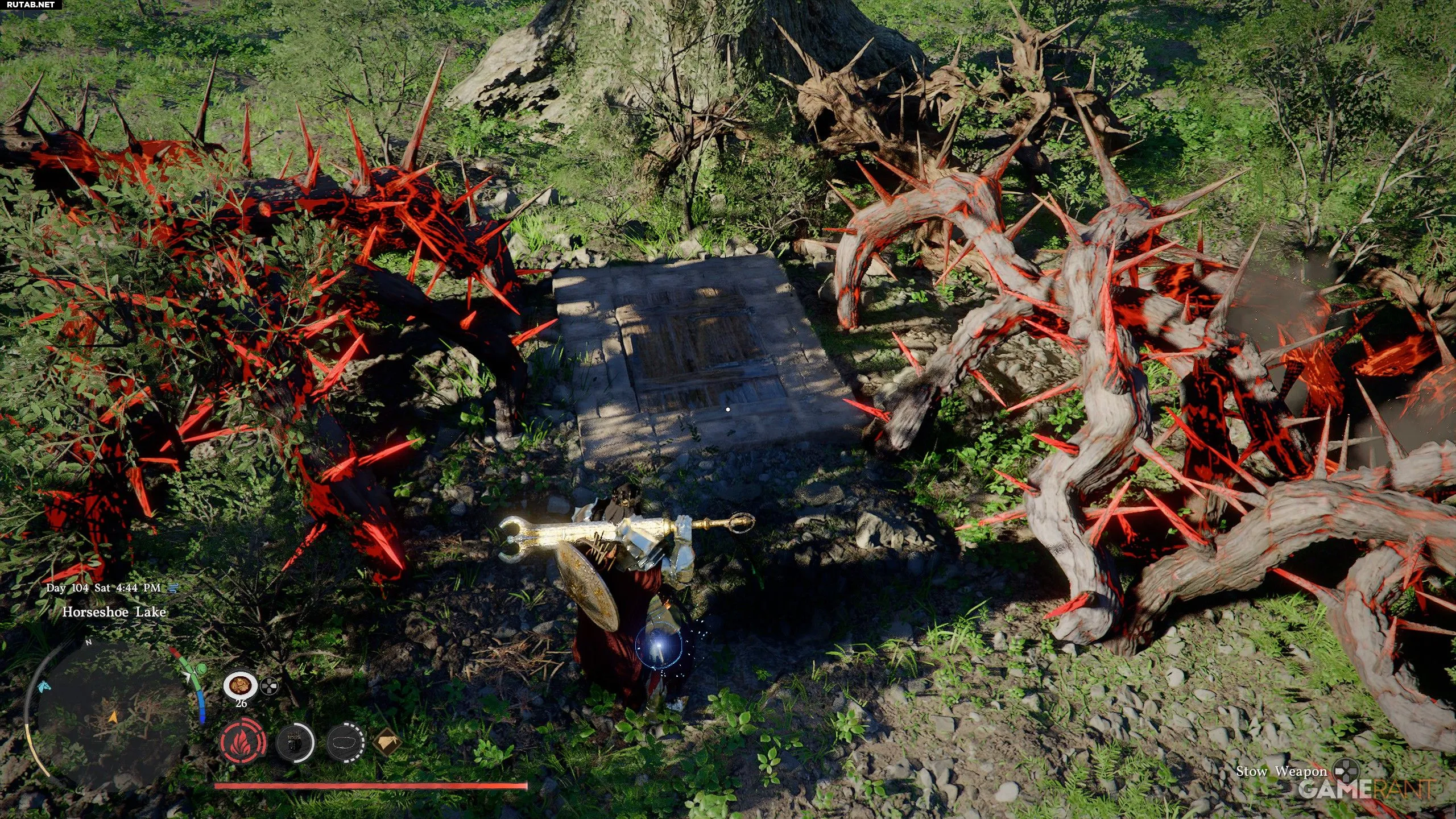 - Добравшись до Озера Подковы, вы увидите в центре дерева густые заросли лиан.
