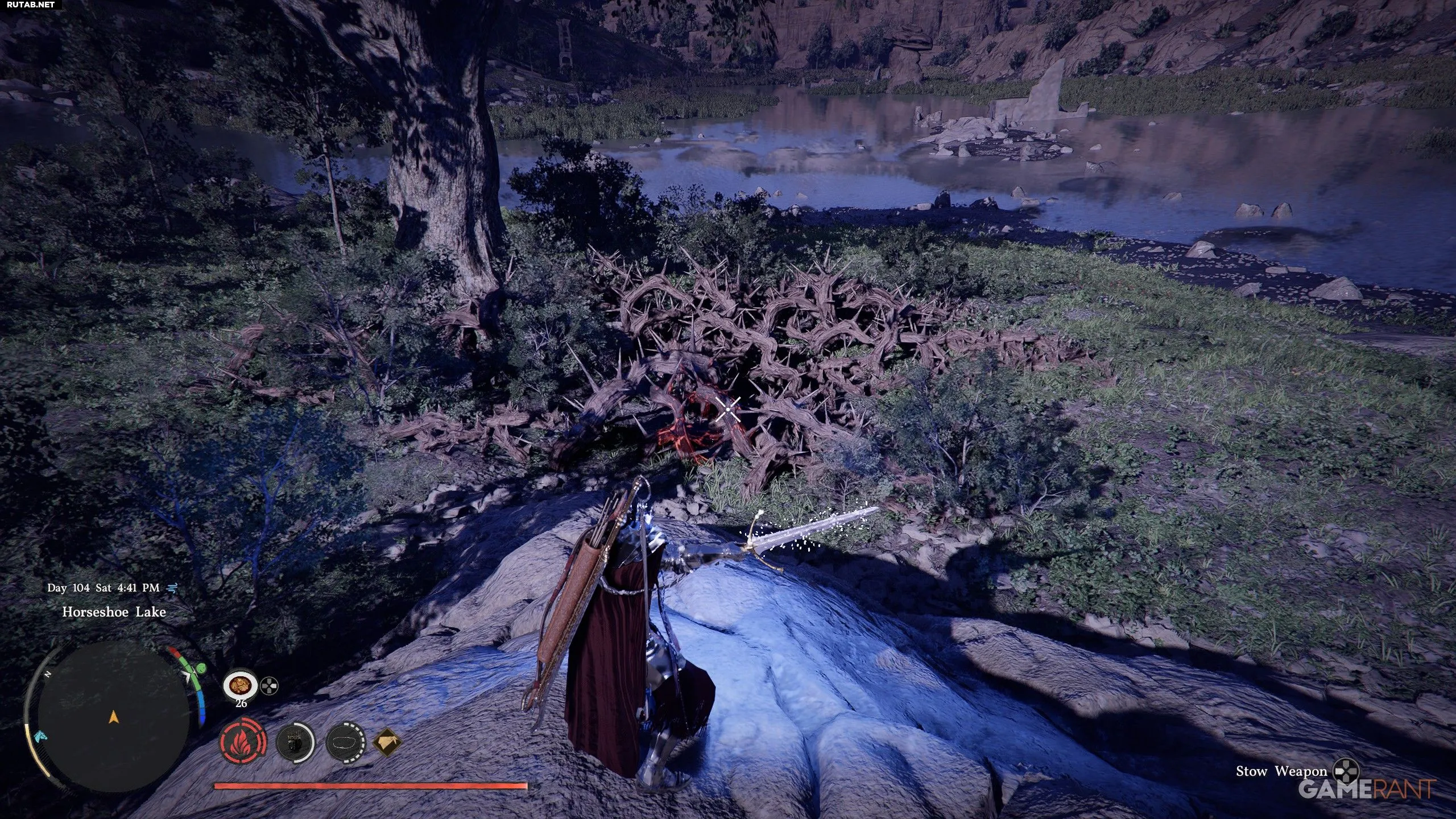 Вы можете получить двуручный меч Арбен у Озера Подковы, которое находится на небольшом острове между Демениссом и Делсией. Ниже мы покажем точное место на карте, а также характеристики оружия, чтобы вы могли решить, стоит ли его брать.