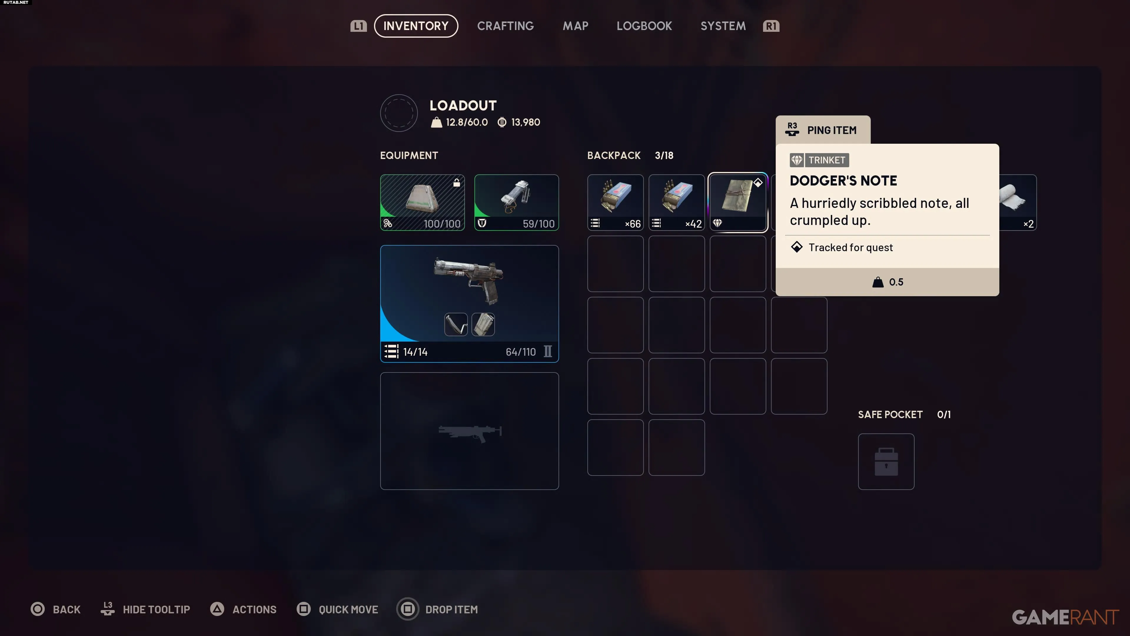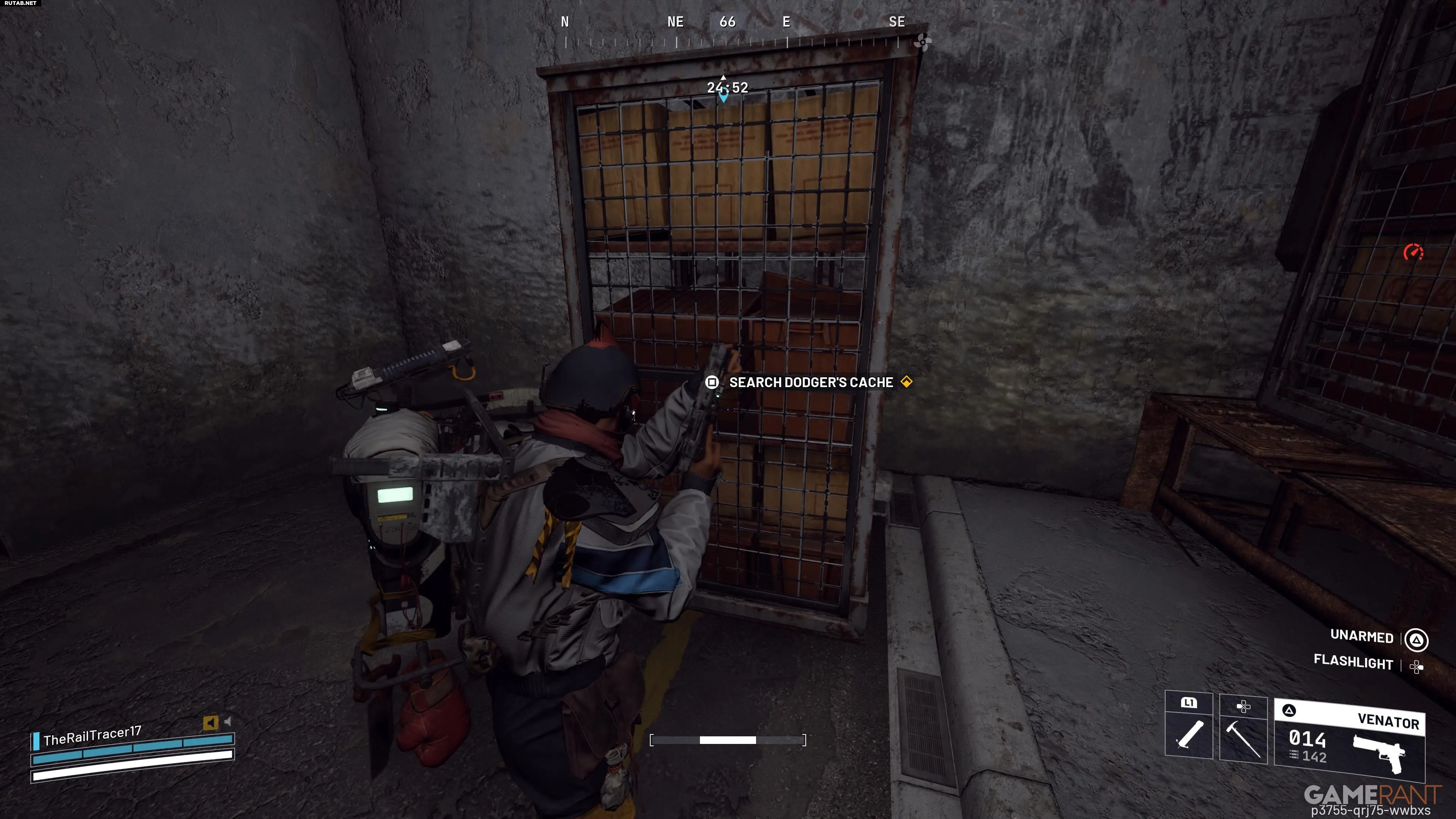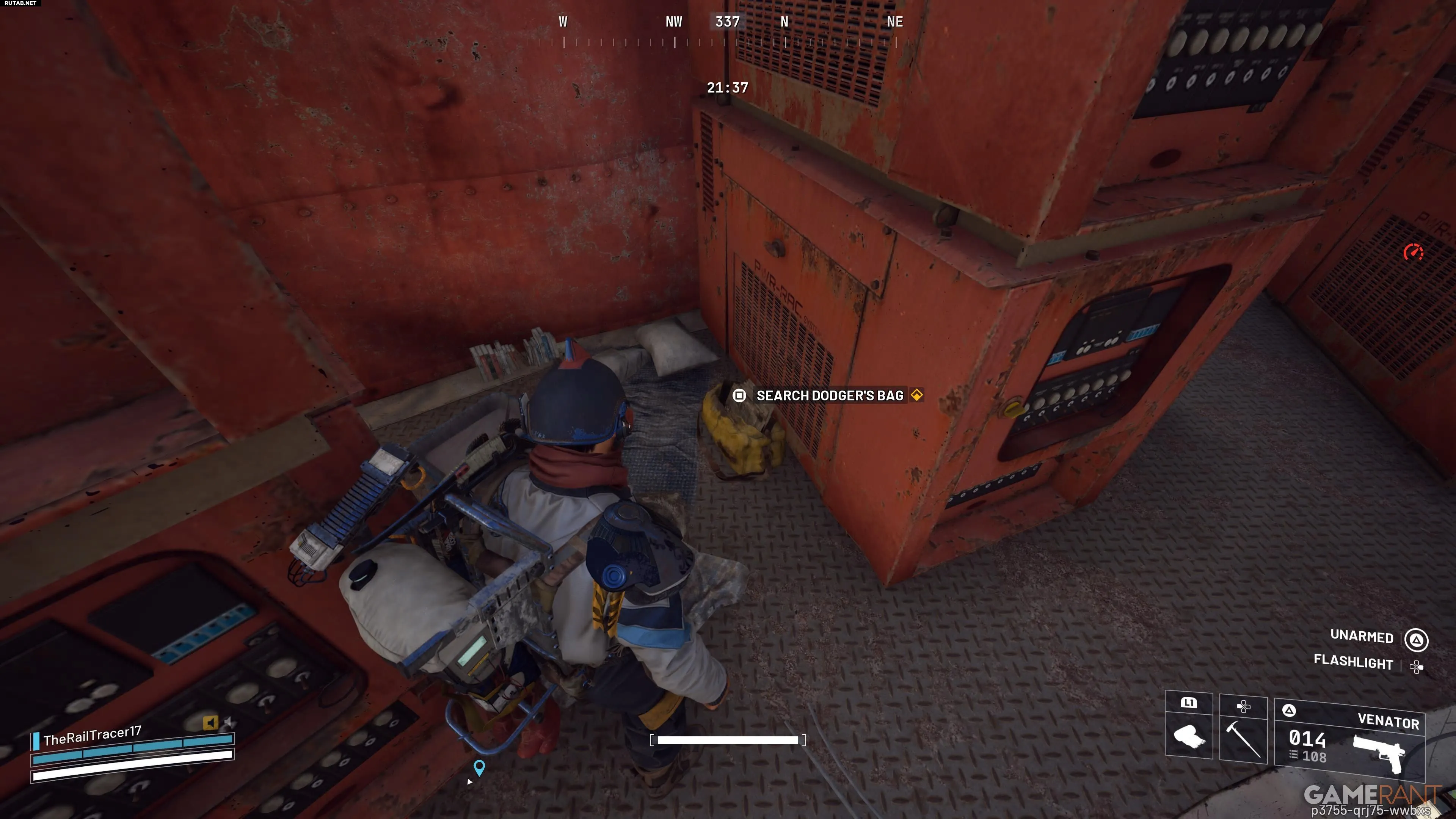 Поднимаясь по зиплайну, спрыгните до достижения крыши, чтобы приземлиться на этаж с красными коробками, похожими на генераторы. Между двумя такими коробками лежит жёлтый рюкзак. Обыскав его, вы найдёте «Записку Доджера».