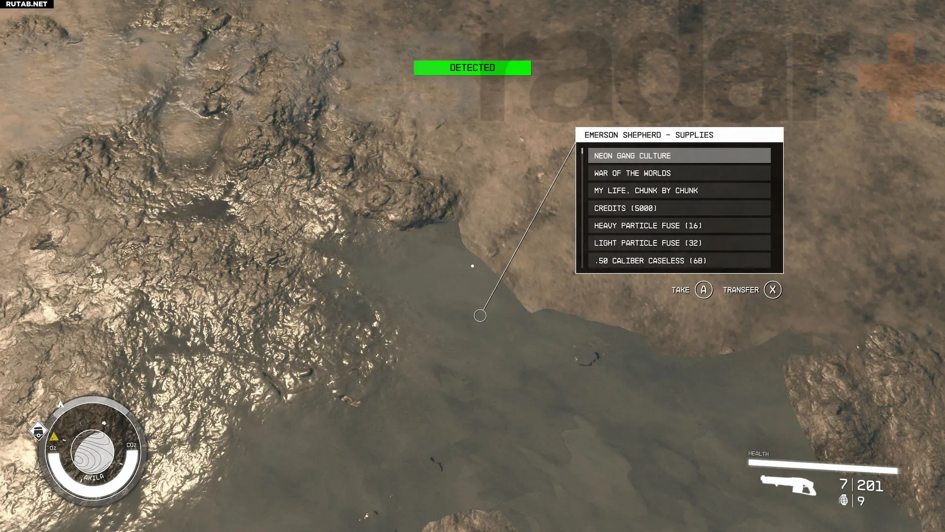 Первый из таких сундуков находится слева от вас при входе в город со стартовой площадки, снаружи магазина «Универсам Шепарда». Присядьте и подойдите к отмеченной луже перед магазином, чтобы открыть сундук с припасами Эмерсона Шепарда. В нём содержится 5000 кредитов (выберите «Передать», затем найдите их в разделе «Разное», если не хотите пролистывать весь список), а также широкий выбор боеприпасов, медикаментов, ресурсов и других предметов, которые можно забрать без фактического совершения кражи.