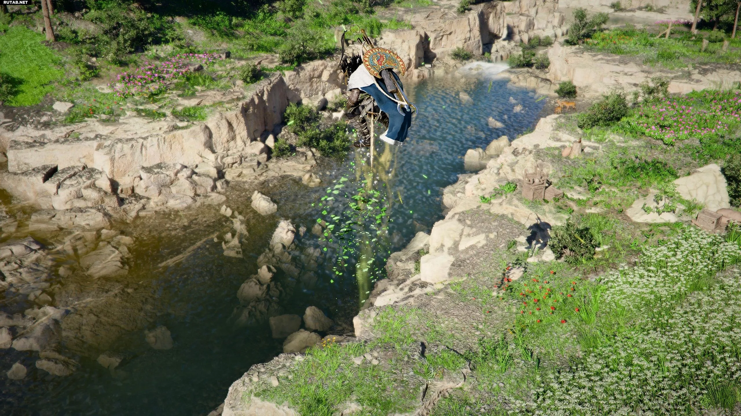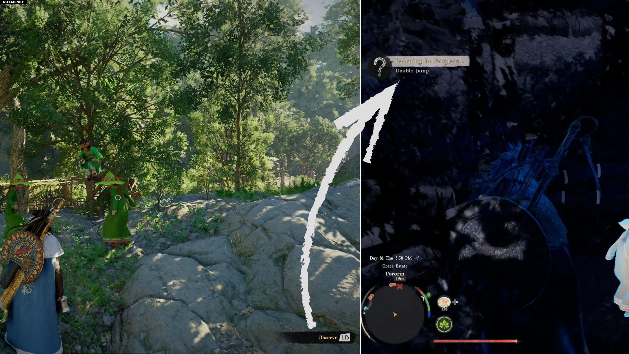Добравшись до места, вы увидите троих детей шаи, выполняющих двойной прыжок на валуне. Подойдите к ним и нажмите LB/L1/CTRL, чтобы понаблюдать за ними и бесплатно выучить двойной прыжок.