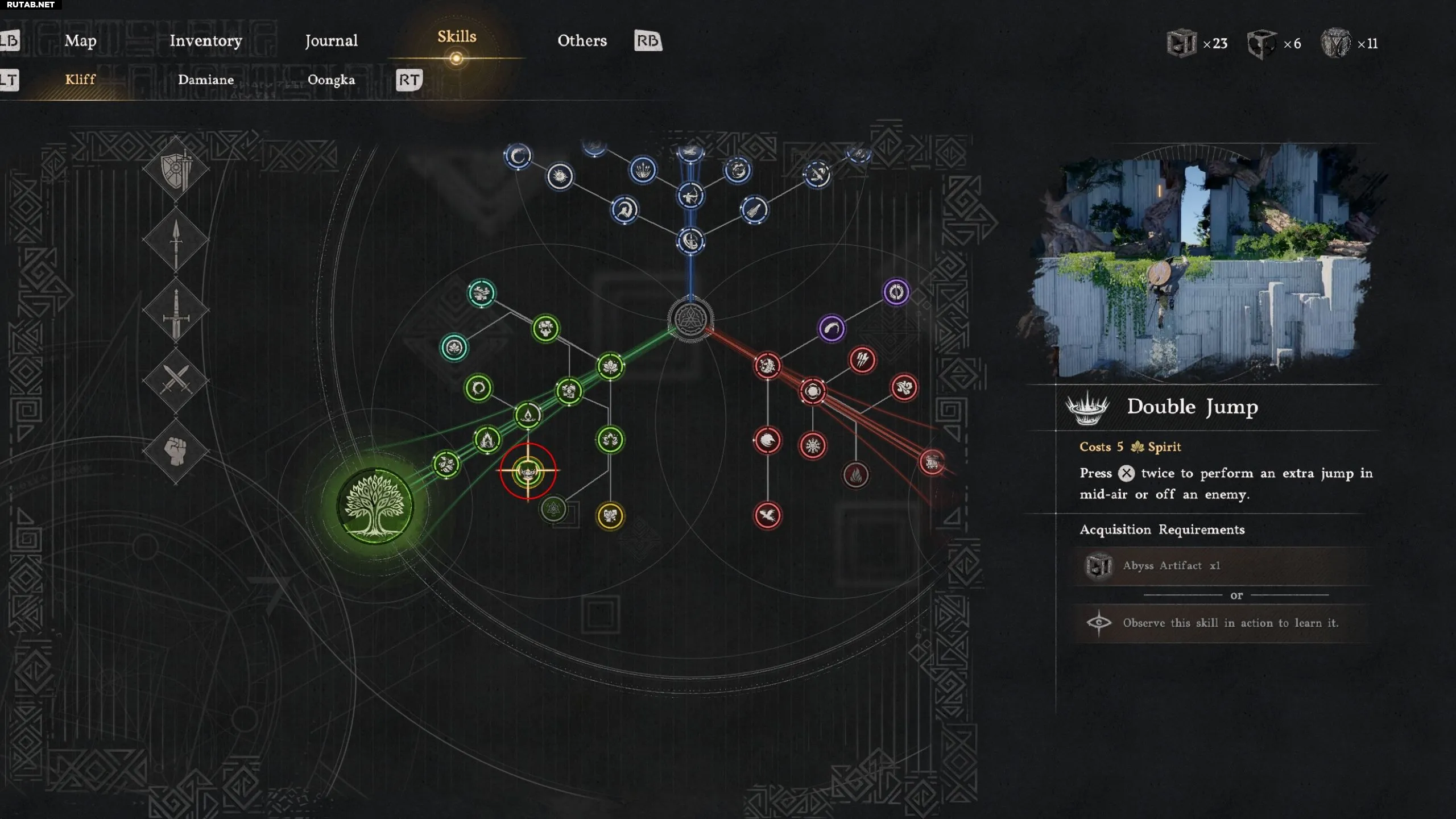 Основной способ — потратить один Артефакт Бездны на соответствующий узел в древе навыков. После разблокировки вы сможете выполнять двойной прыжок, нажимая кнопку прыжка несколько раз.