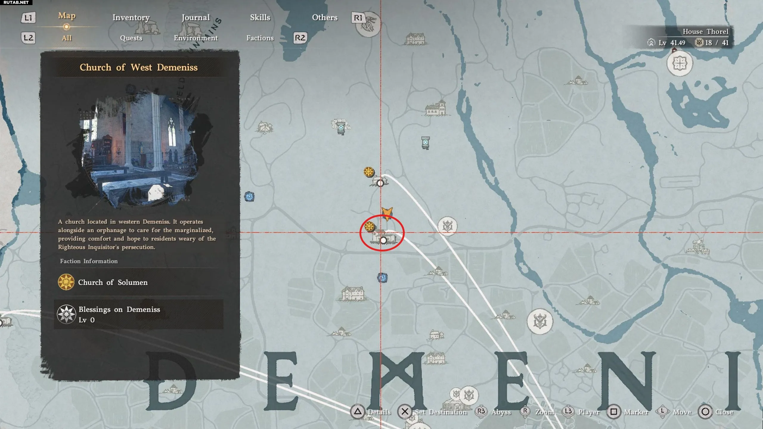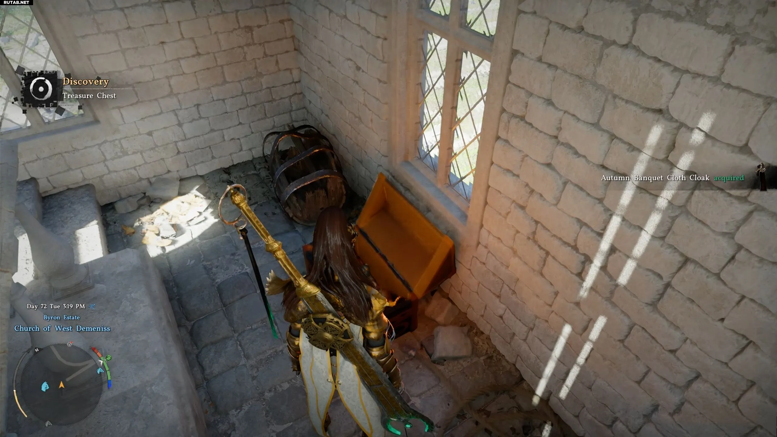 Направляйтесь к Церкви Западного Деменисса, расположенной к юго-востоку от Королевских Щитовых гор, над буквой «M» на карте Деменисса. Вместо того чтобы заходить внутрь, поднимитесь на крыши и отодвиньте стену, чтобы найти потайную комнату. Откройте сундук внутри, чтобы получить Плащ из ткани «Осенний пир».
