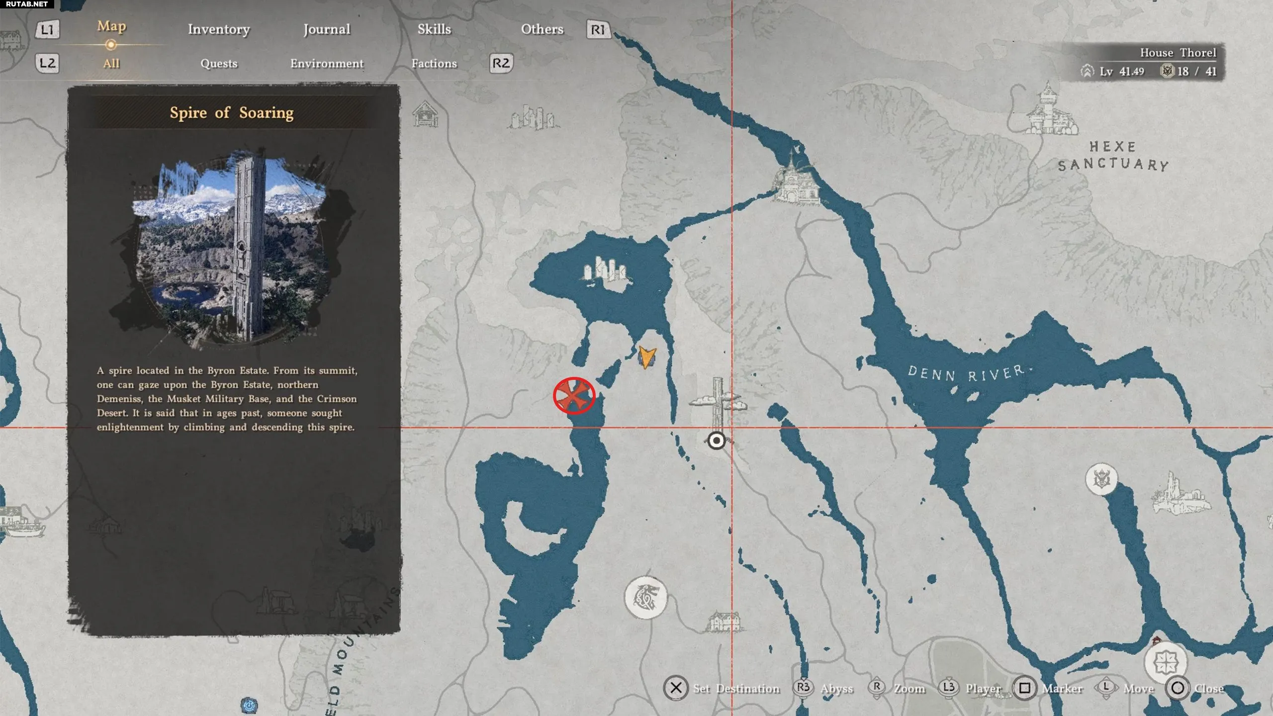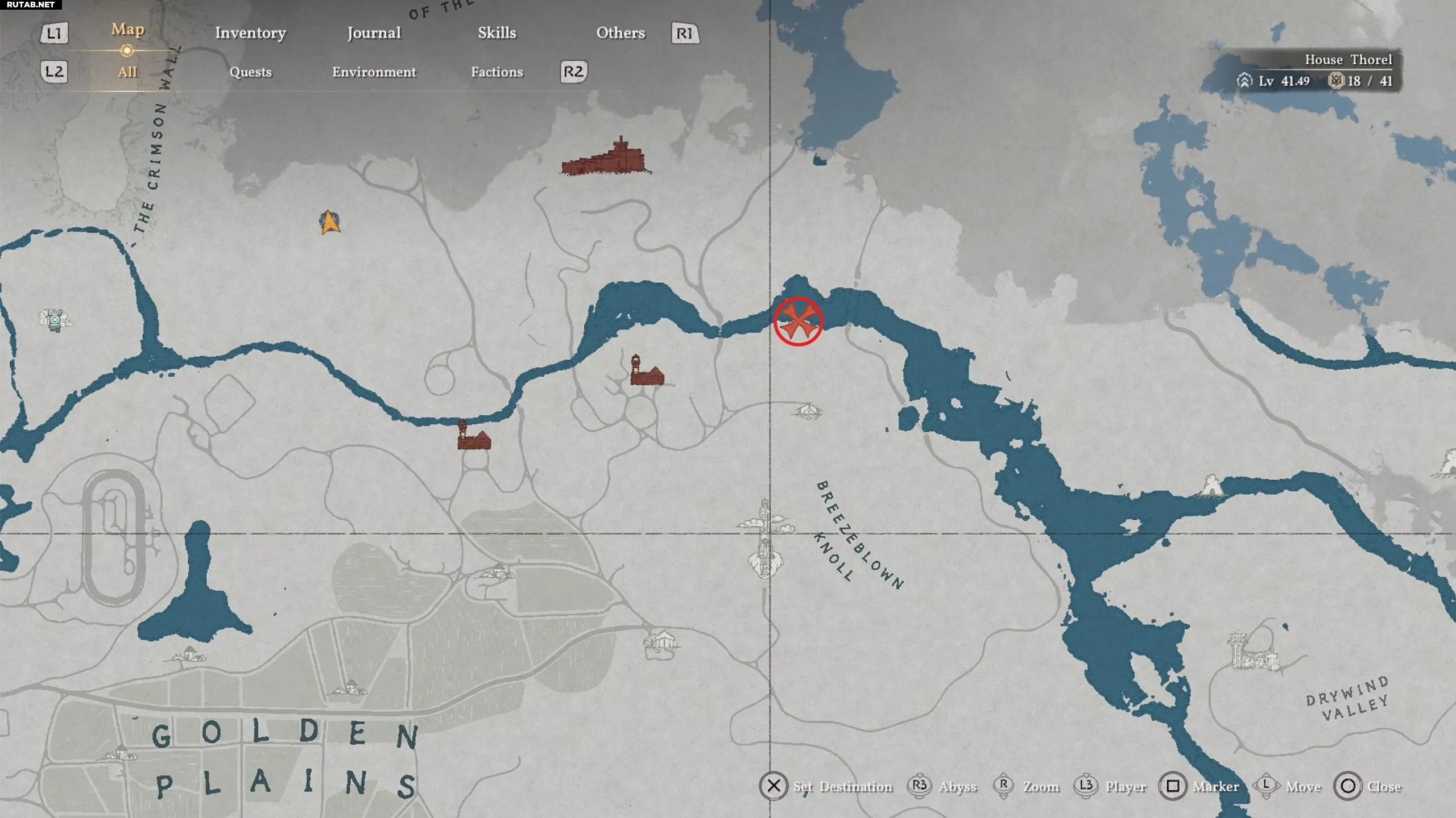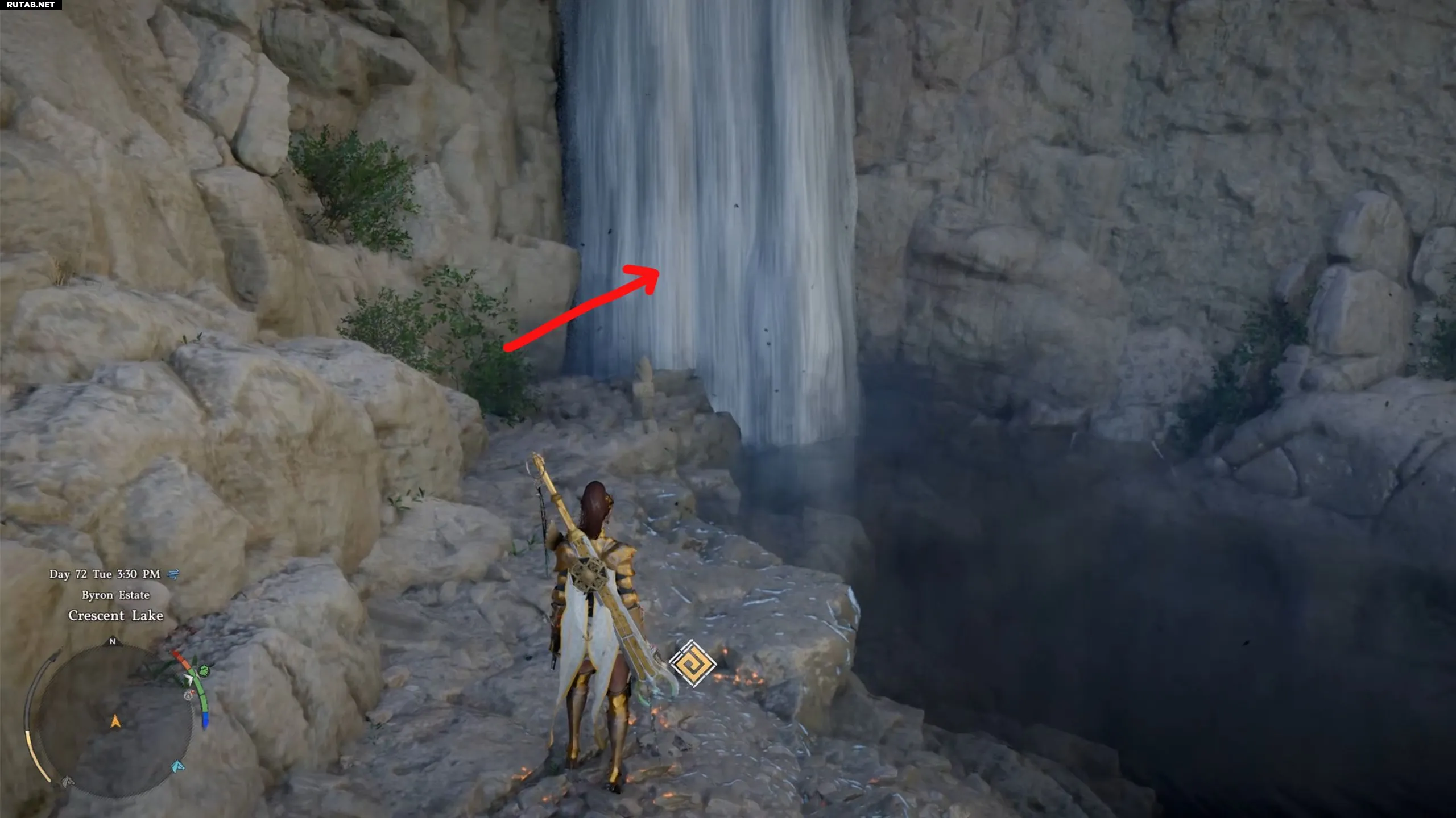 Следующая часть доспеха находится к западу от Шпиля Парения, недалеко от реки Денн. Подойдите к воде и повернитесь на север, чтобы найти водопад, за которым, скорее всего, скрывается пещера.
