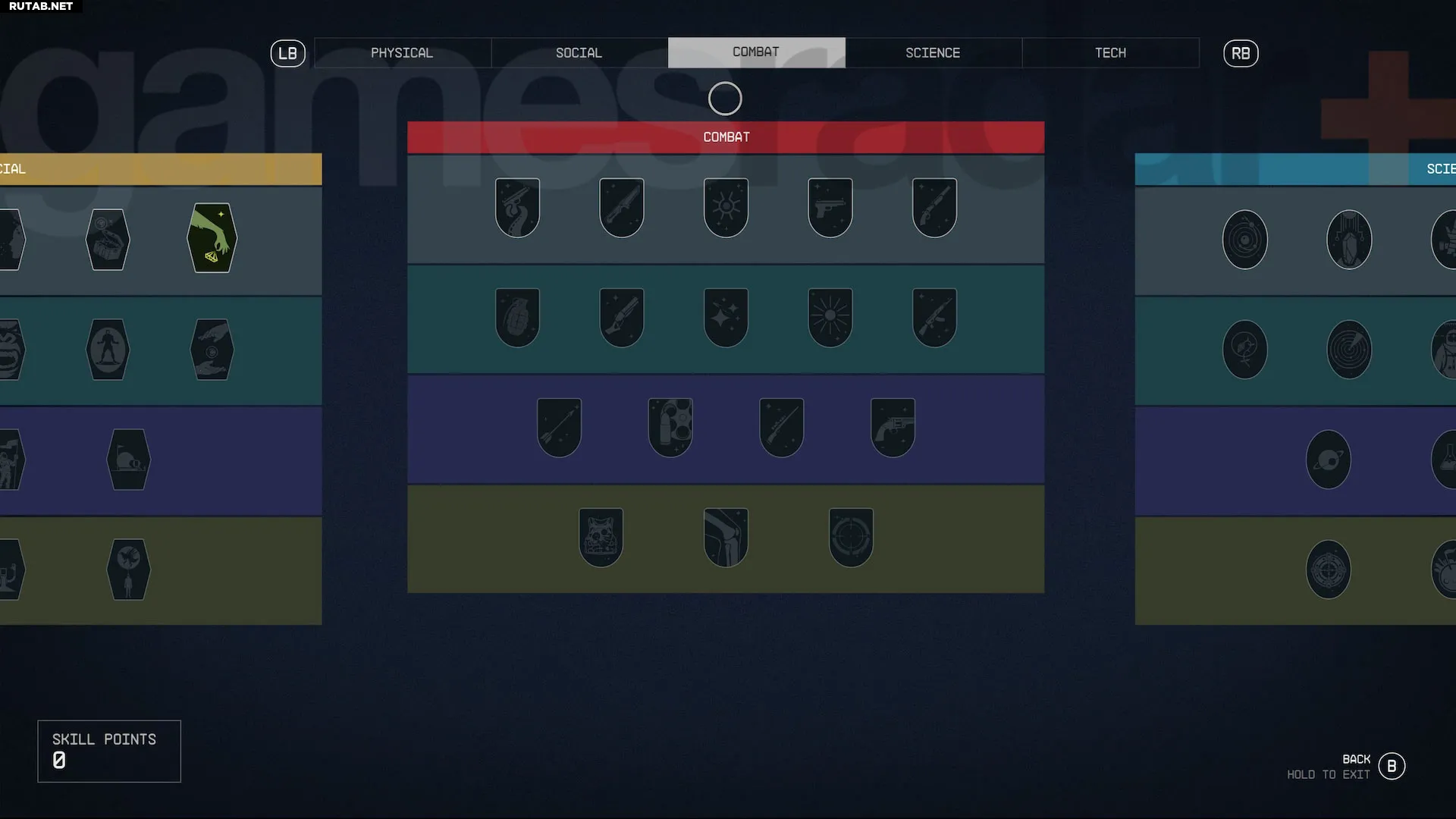 Навыки в Starfield разделены на пять категорий: