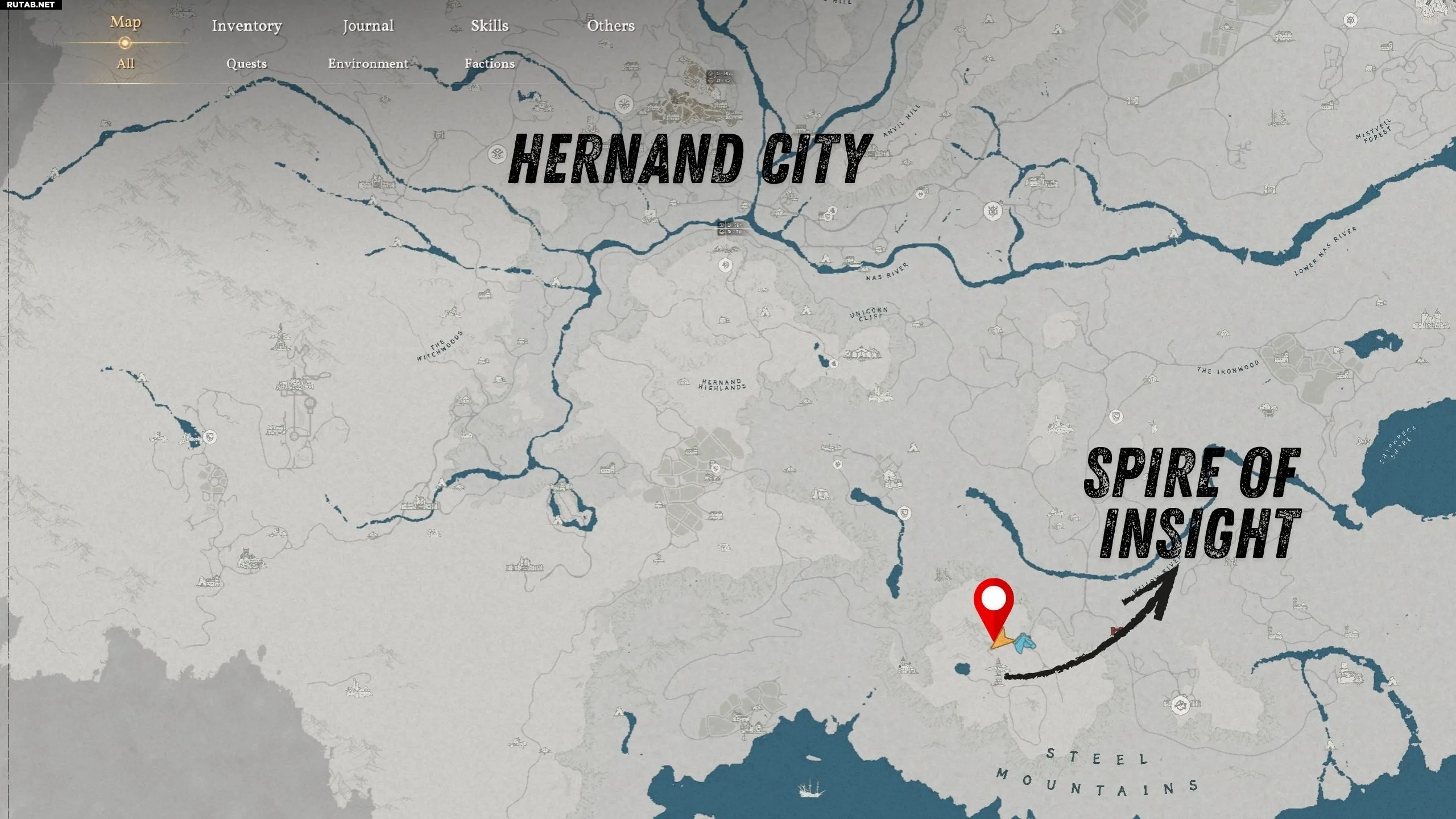 Головоломка расположена к юго-востоку от города Хернанд, рядом с «Шпилем Прозрения». На месте вы найдете цветочную поляну, доску объявлений и стойку с восемью колоколами, отмеченными различными символами.