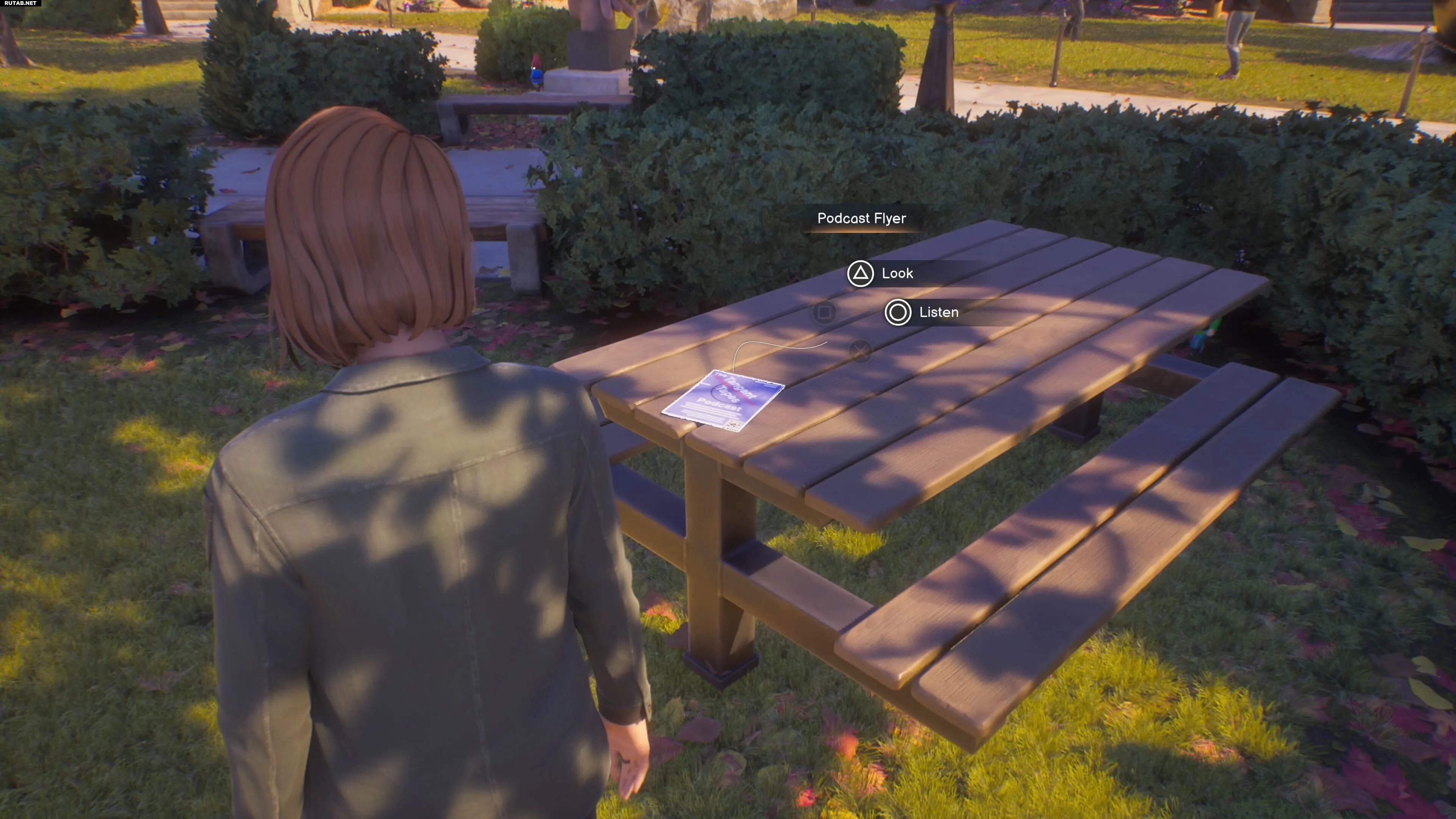 Где найти: Во время урока Макс. Листовка подкаста лежит на скамейке в центре двора, прямо справа от Лоретты. Это интервью с Мозесом.