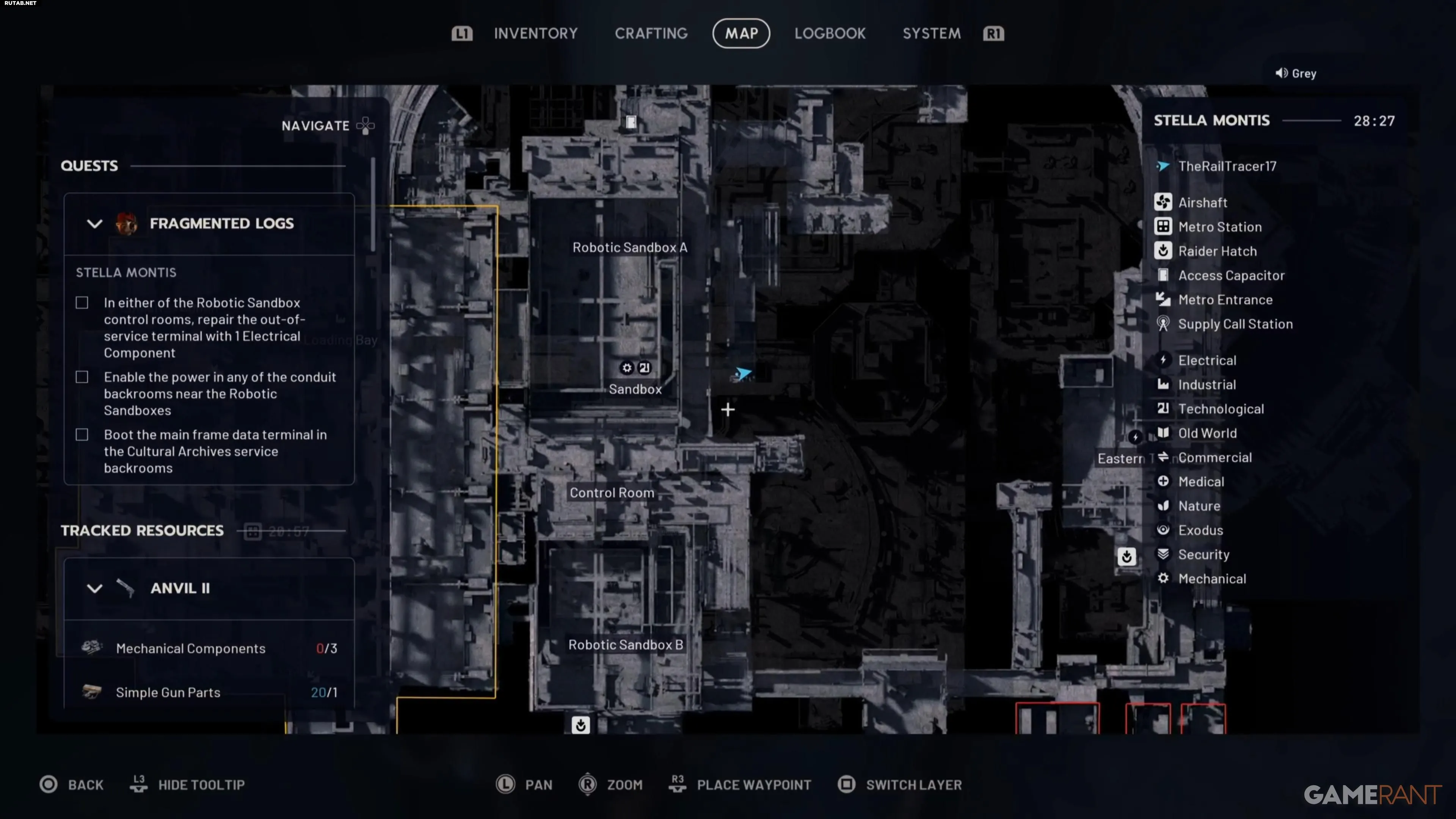 Перед началом вылазки на Stella Montis обязательно возьмите с собой один Электрический компонент — он понадобится для ремонта терминала. Также рекомендуется захватить Фотоэлектрический плащ, так как большая часть карты кишит Шредерами, и вступать с ними в бой — не лучшая идея.