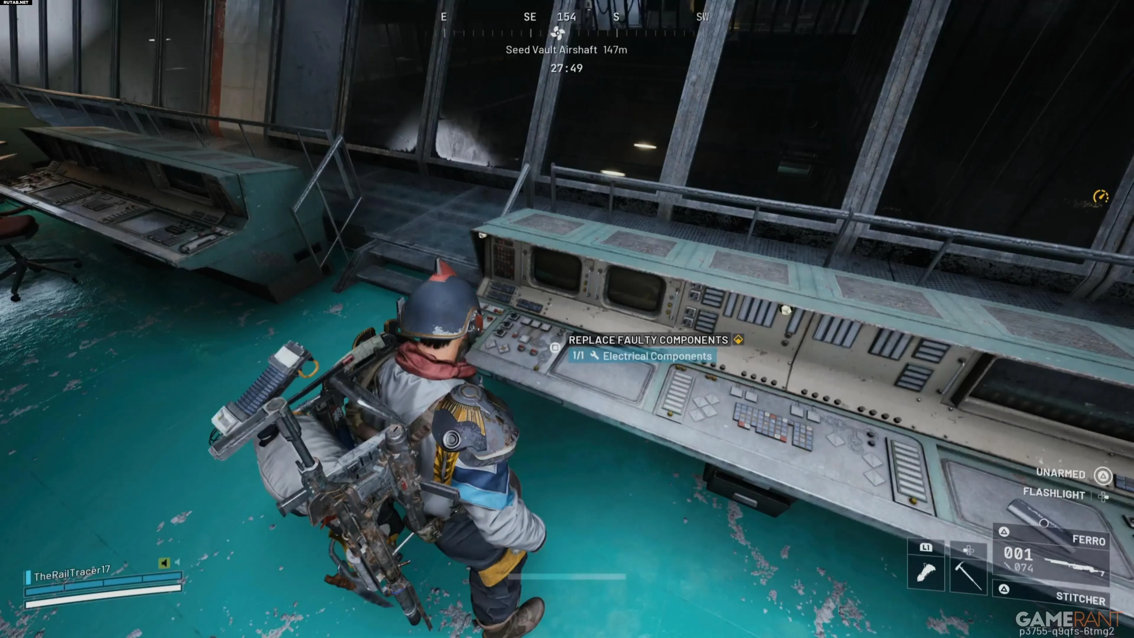 После этого поверните налево, поднимитесь по лестнице, выйдите из комнаты и следуйте по коридору направо. Затем сверните налево и пройдите через Контрольную комнату A2. В дальнем конце комнаты вы обнаружите неработающий терминал, который нужно починить, используя принесённый Электрический компонент.