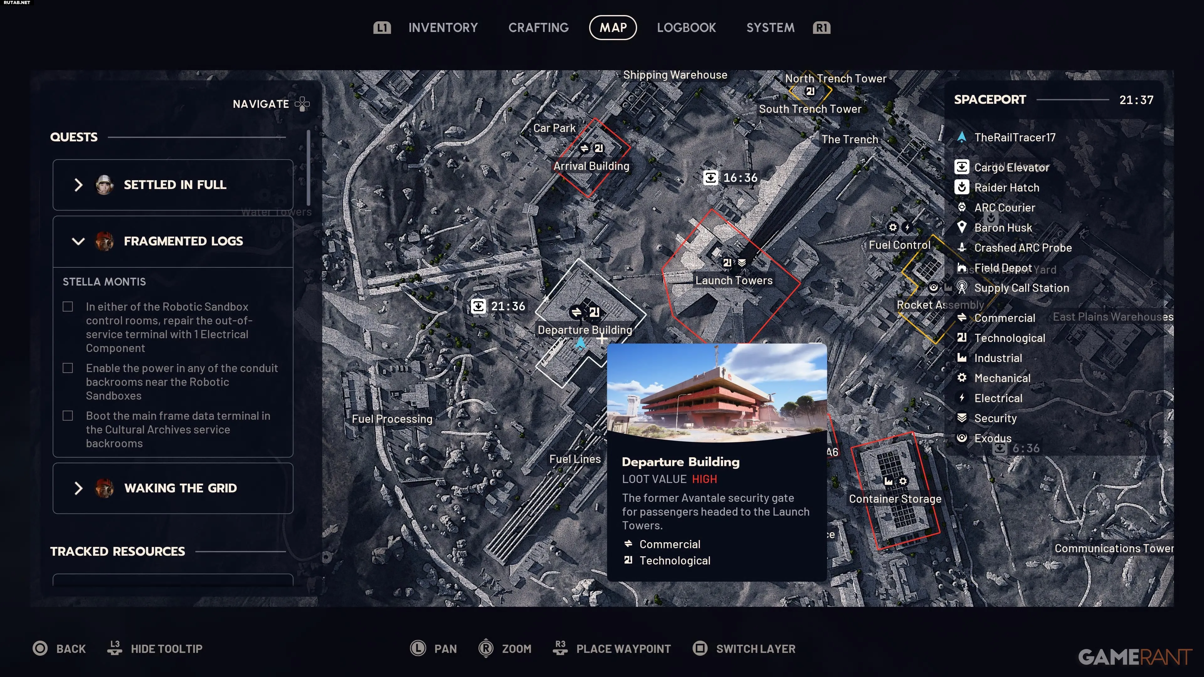 Доберитесь до Здания вылета и оставайтесь на первом этаже. Немного ниже буквы «у» в слове «Departure» на карте находится комната с металлическими шкафами, которые можно взломать. Справа расположен центр управления — взаимодействуйте с ним, чтобы запустить систему. После этого отправляйтесь в Здание прилёта.