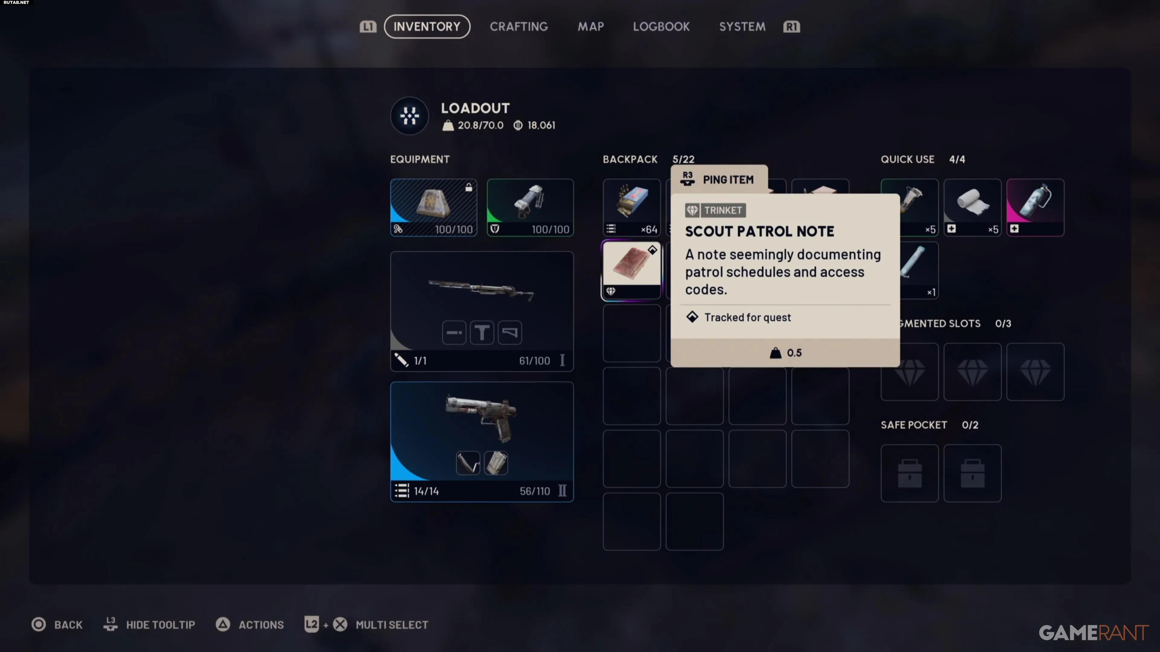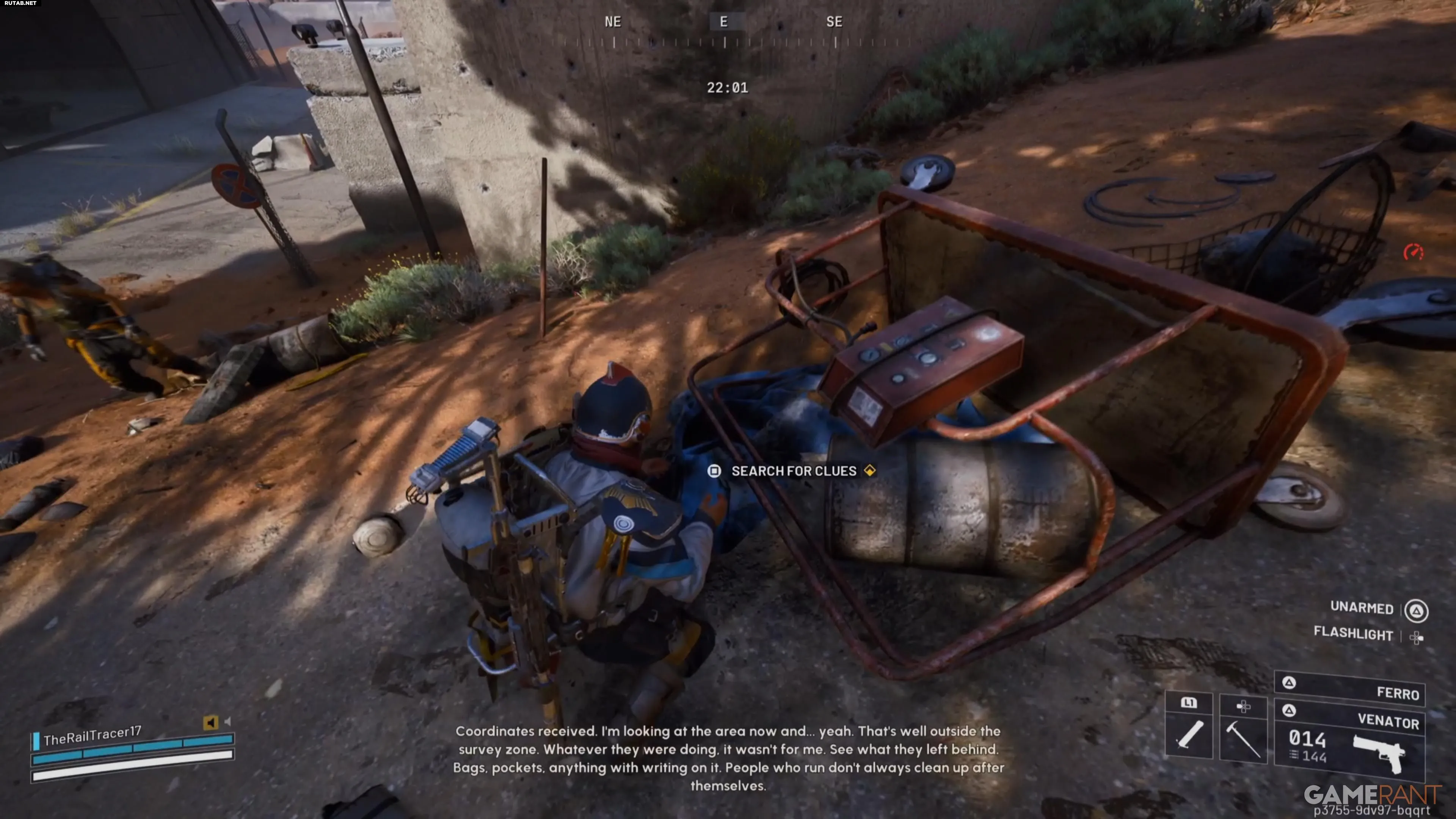 Направляйтесь на юго-запад от ангара на карте, чтобы найти на земле тележки. Здесь у вас появится возможность передать местоположение. Затем осмотрите красную тележку впереди. Вы получите Записку разведывательного патруля (Scout Patrol Note), которую необходимо поместить в «Безопасный карман» и эвакуироваться в Эсперансу.