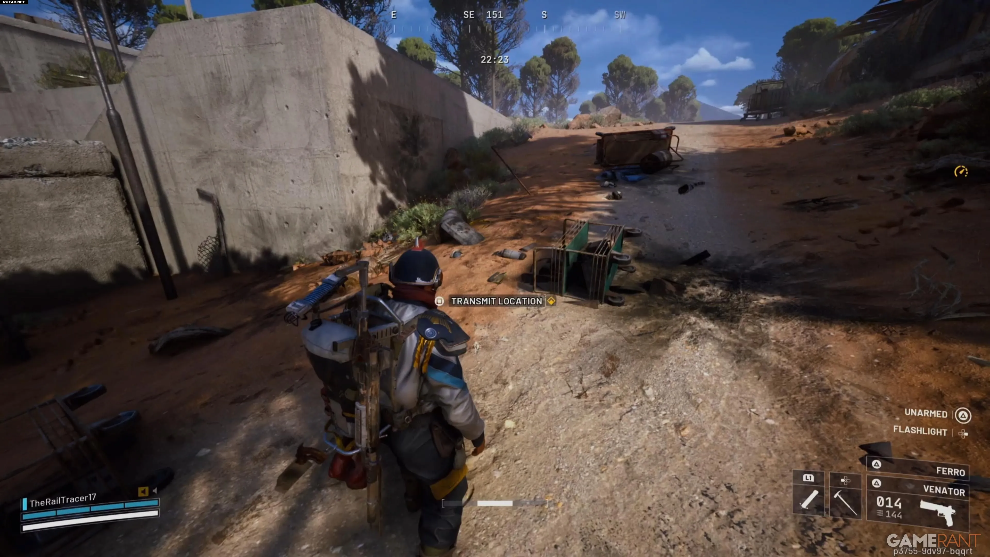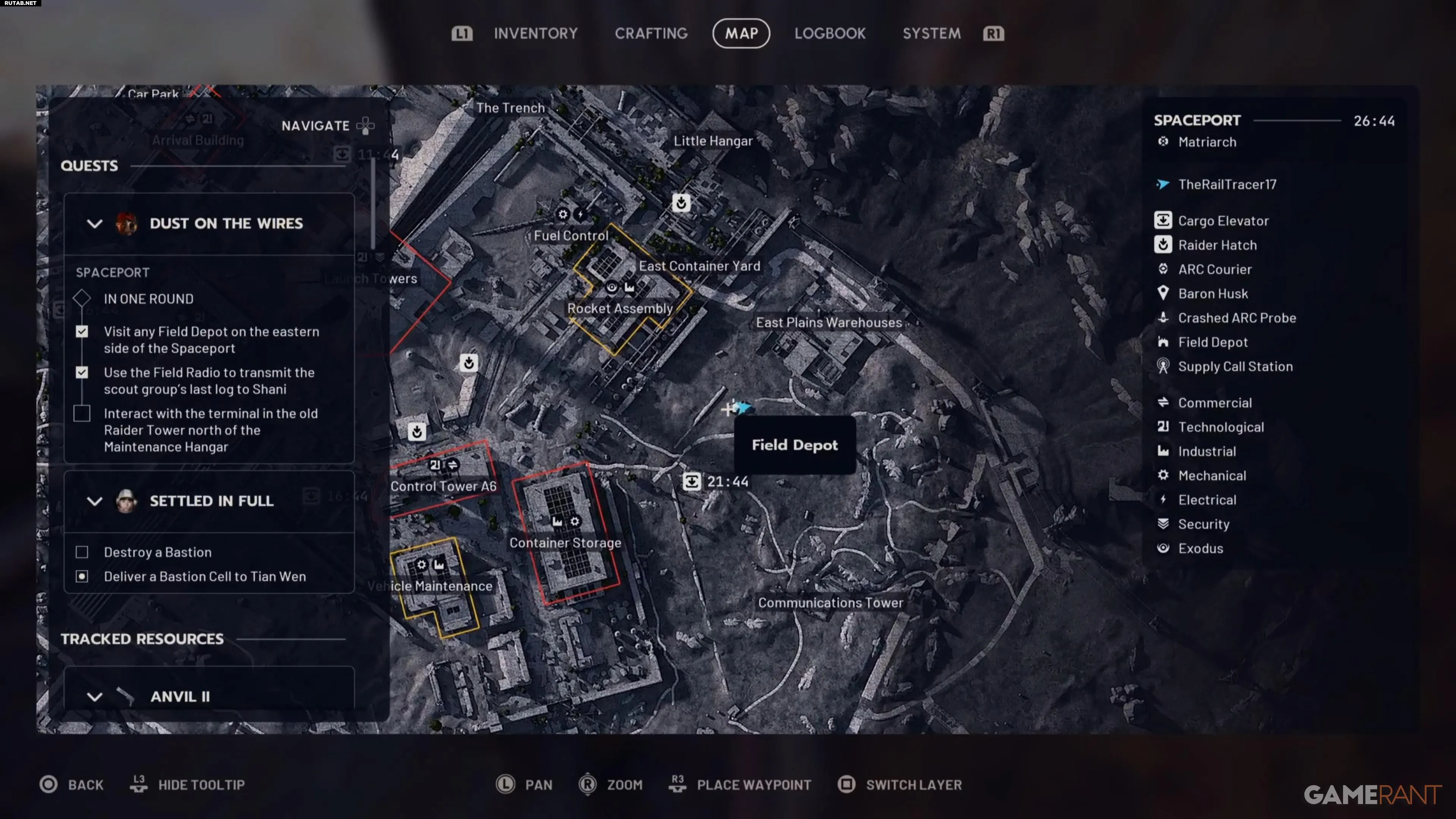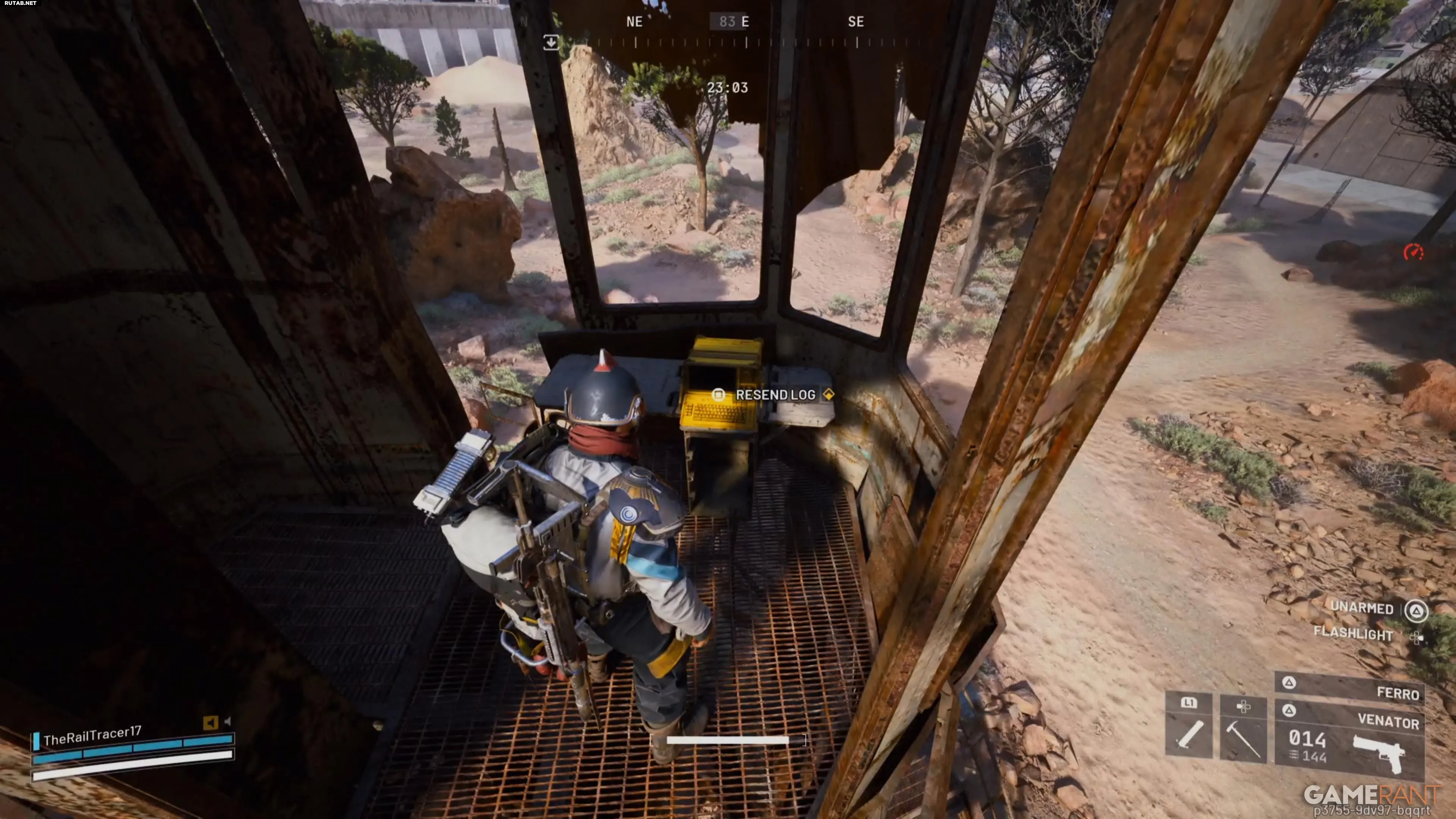 После начала захода для первой части задания вам нужно добраться до восточной стороны карты, чтобы найти полевой склад (Field Depot), который должен быть виден издалека. Зайдите внутрь и взаимодействуйте с терминалом, чтобы переотправить журнал. Это выполнит два этапа, после чего нужно отправиться в западную часть карты.