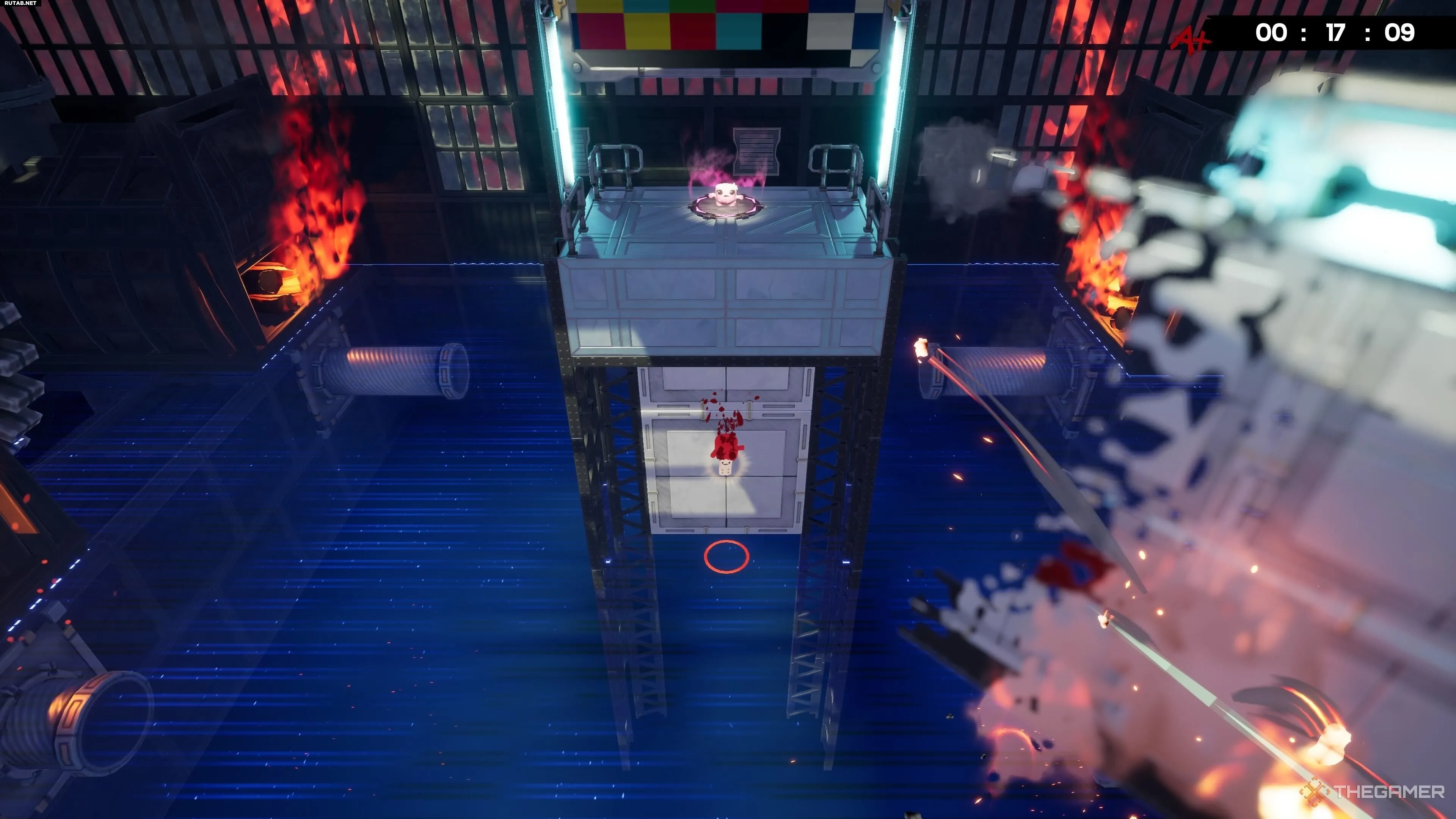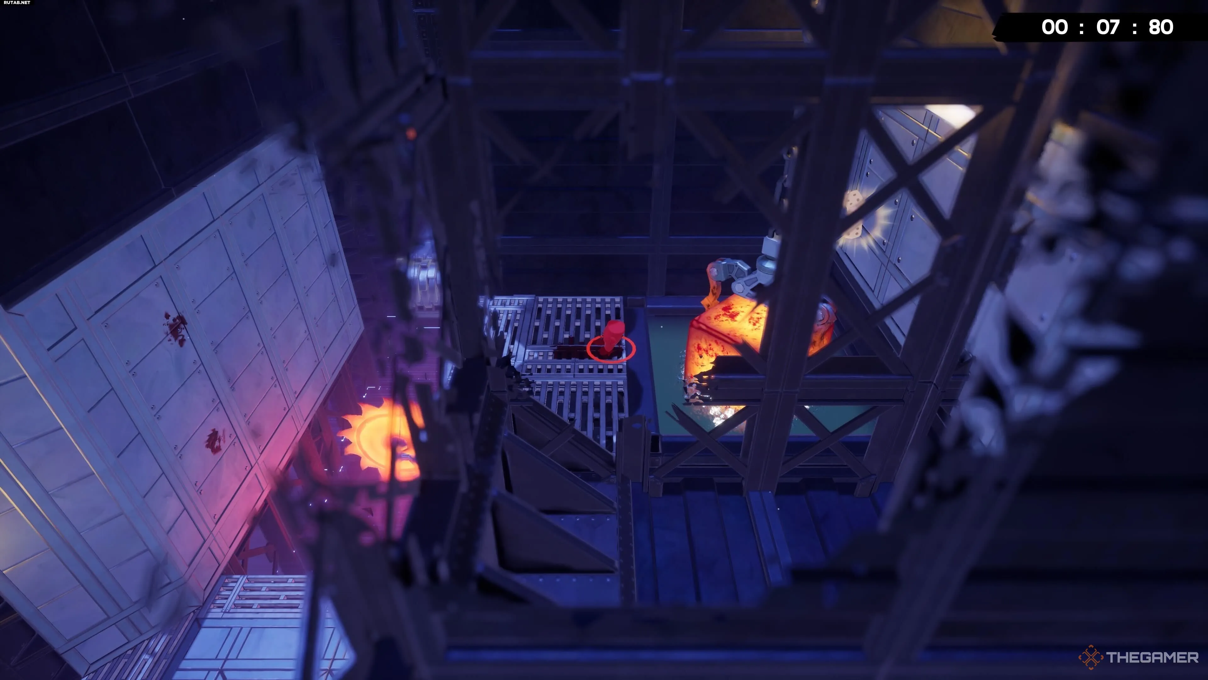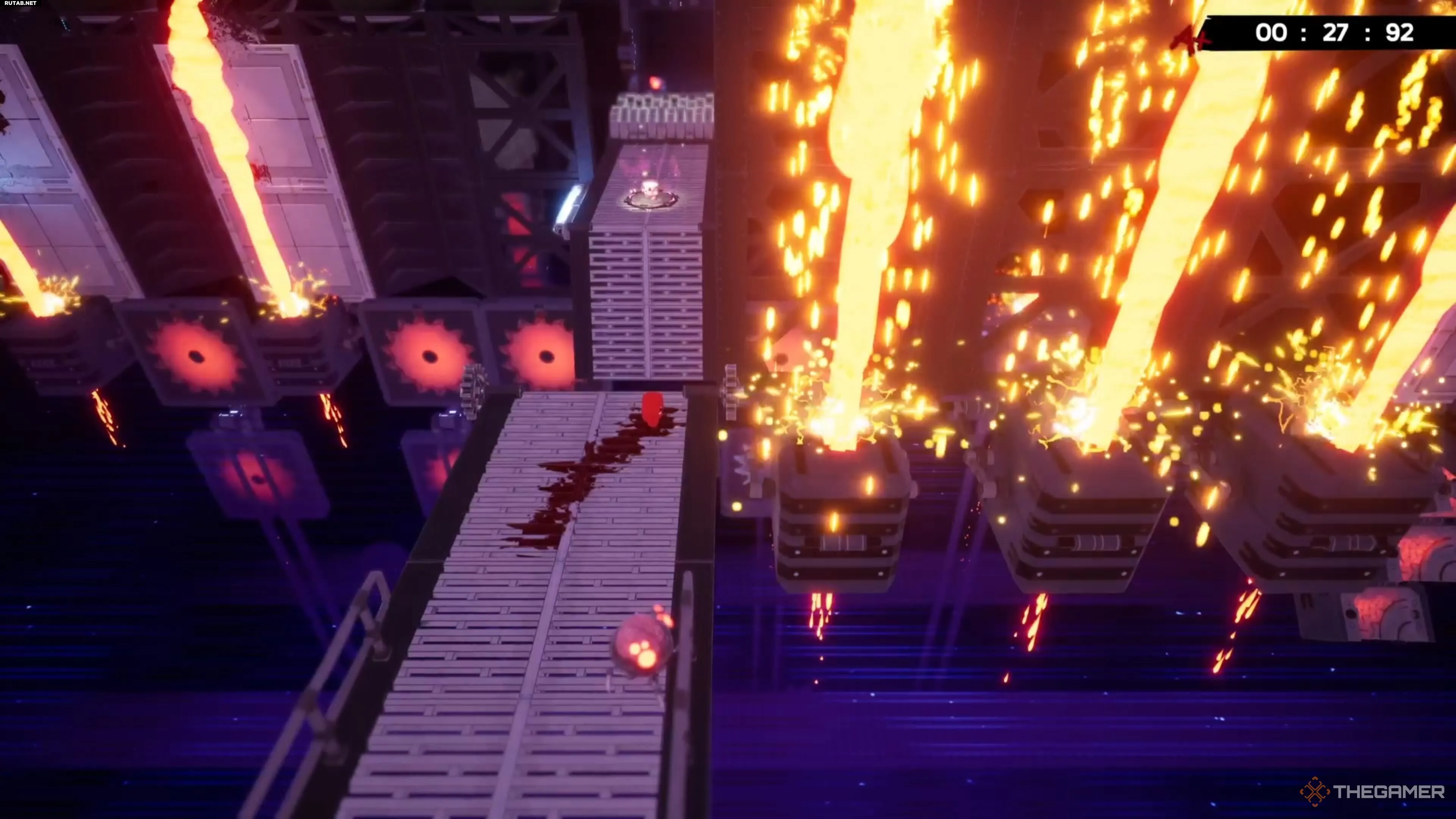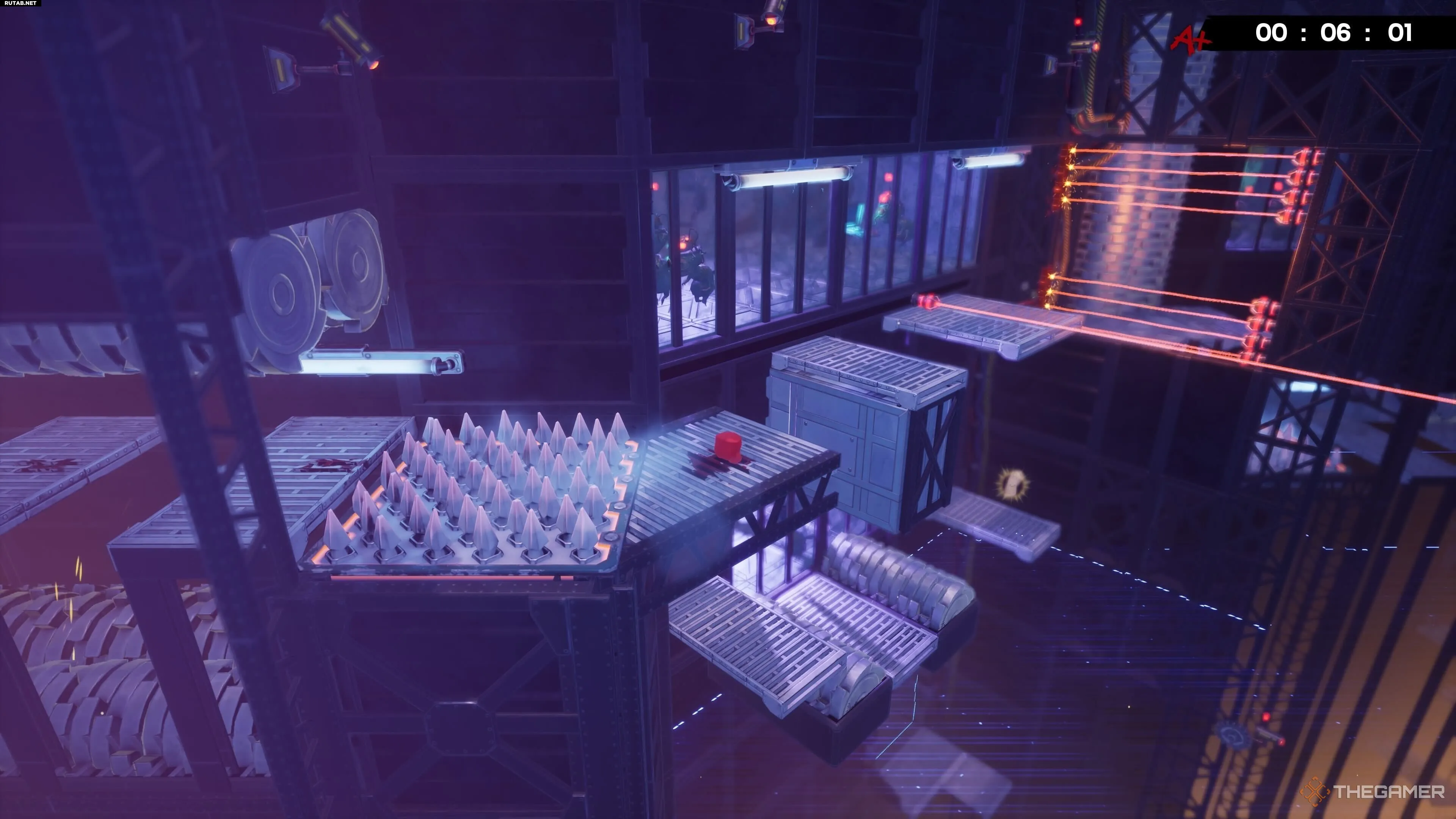 На уровне Hot Blocks найти бинт тоже довольно просто, хотя добраться с ним до конца уровня — это уже раздражающая часть. После вашего первого подъёма по конвейеру вы увидите другой конвейер, который ведёт вас дальше вверх.
