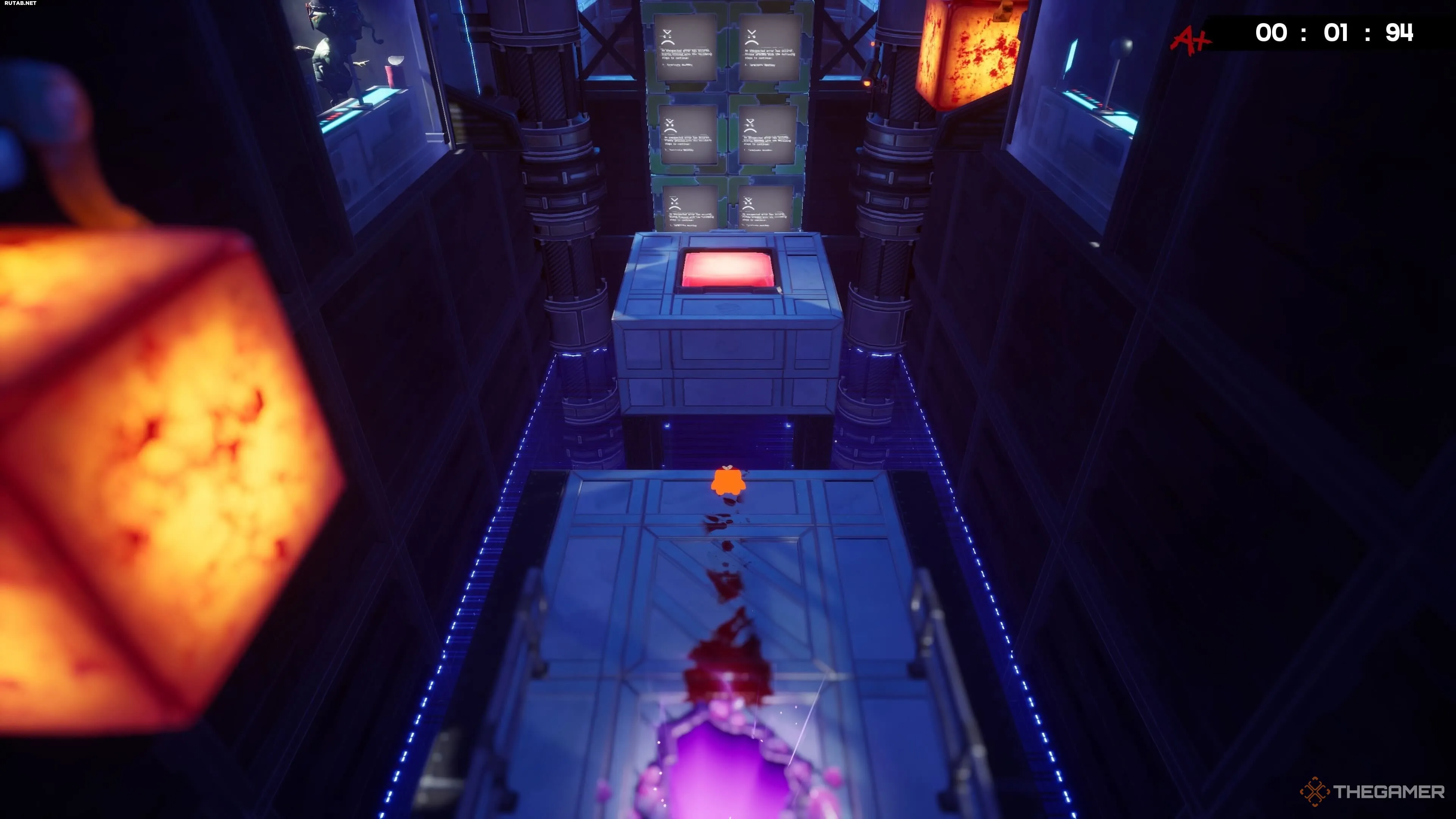Бинт-лента на уровне Test Chamber находится почти в самом конце. Когда вы доберётесь до большой красной кнопки, которая открывает путь к Бинт-девушке, перепрыгните направо, чтобы схватить бинт. Тайминг здесь немного сложный, поэтому постарайтесь как можно быстрее вернуться на центральную платформу.