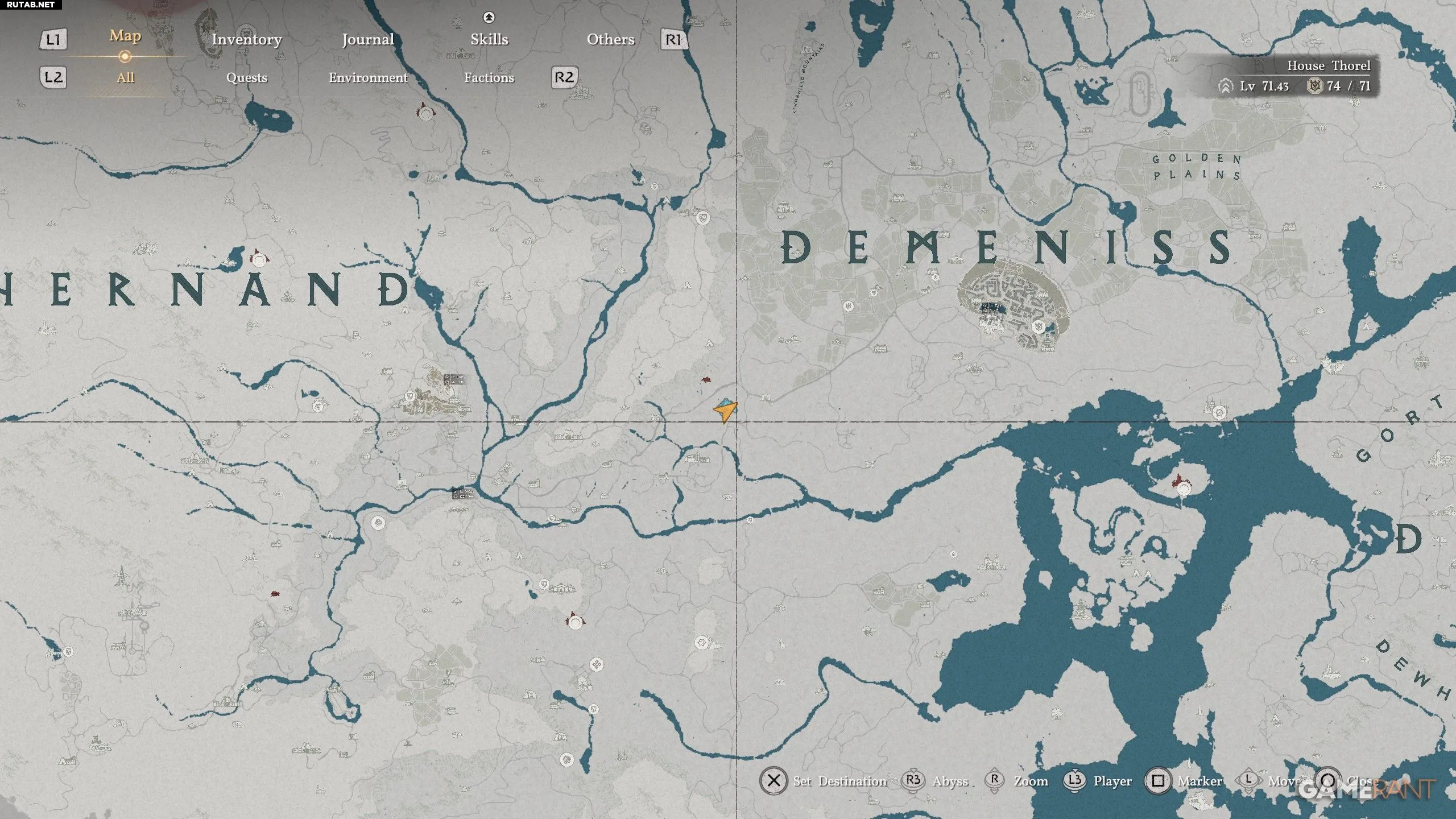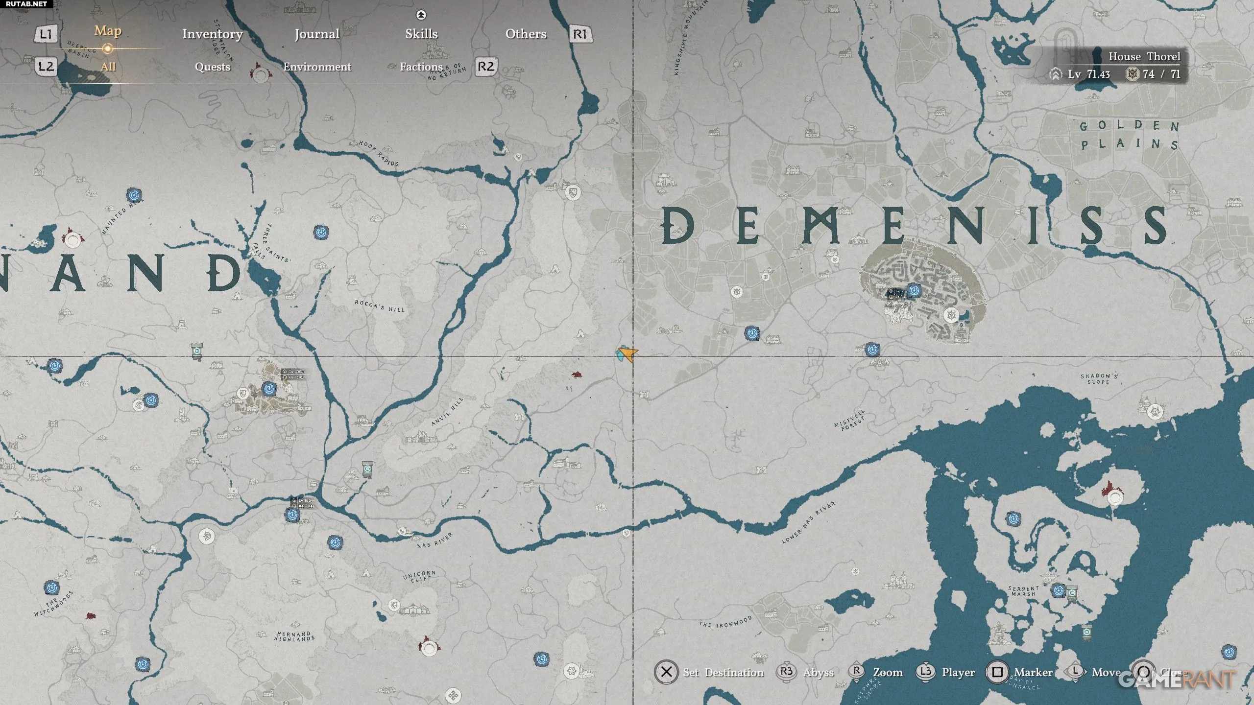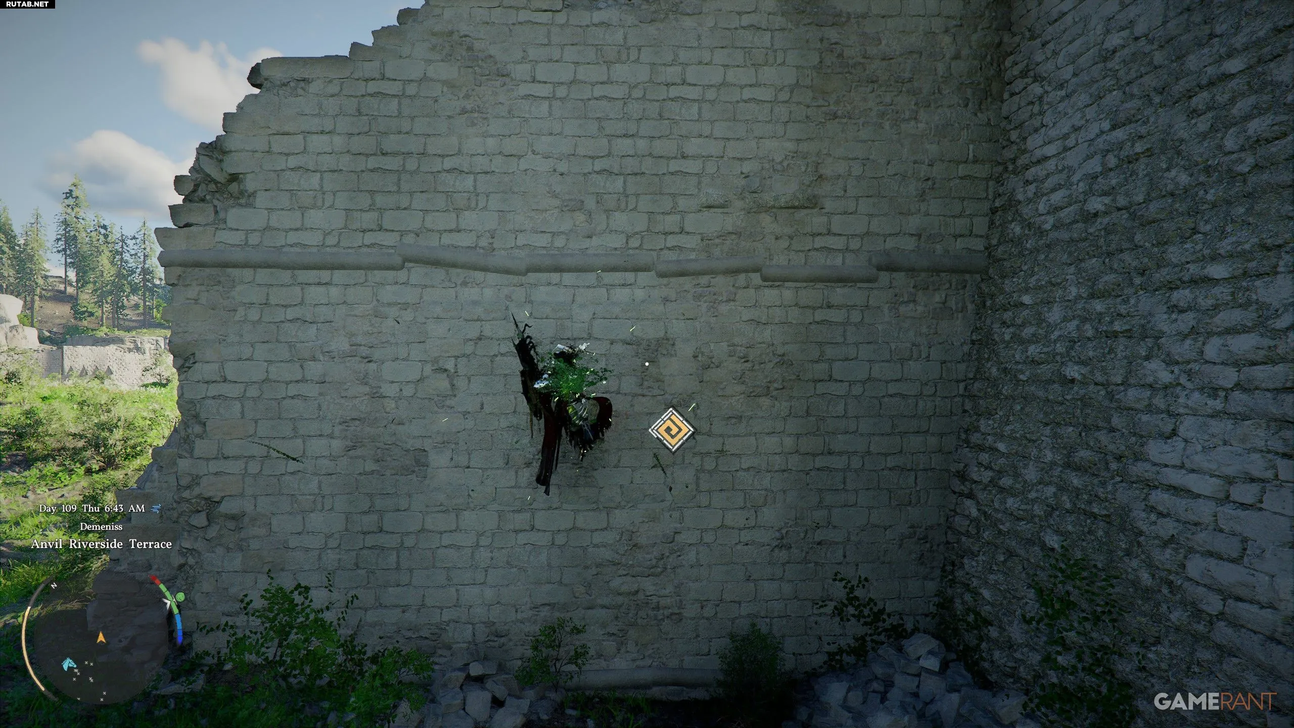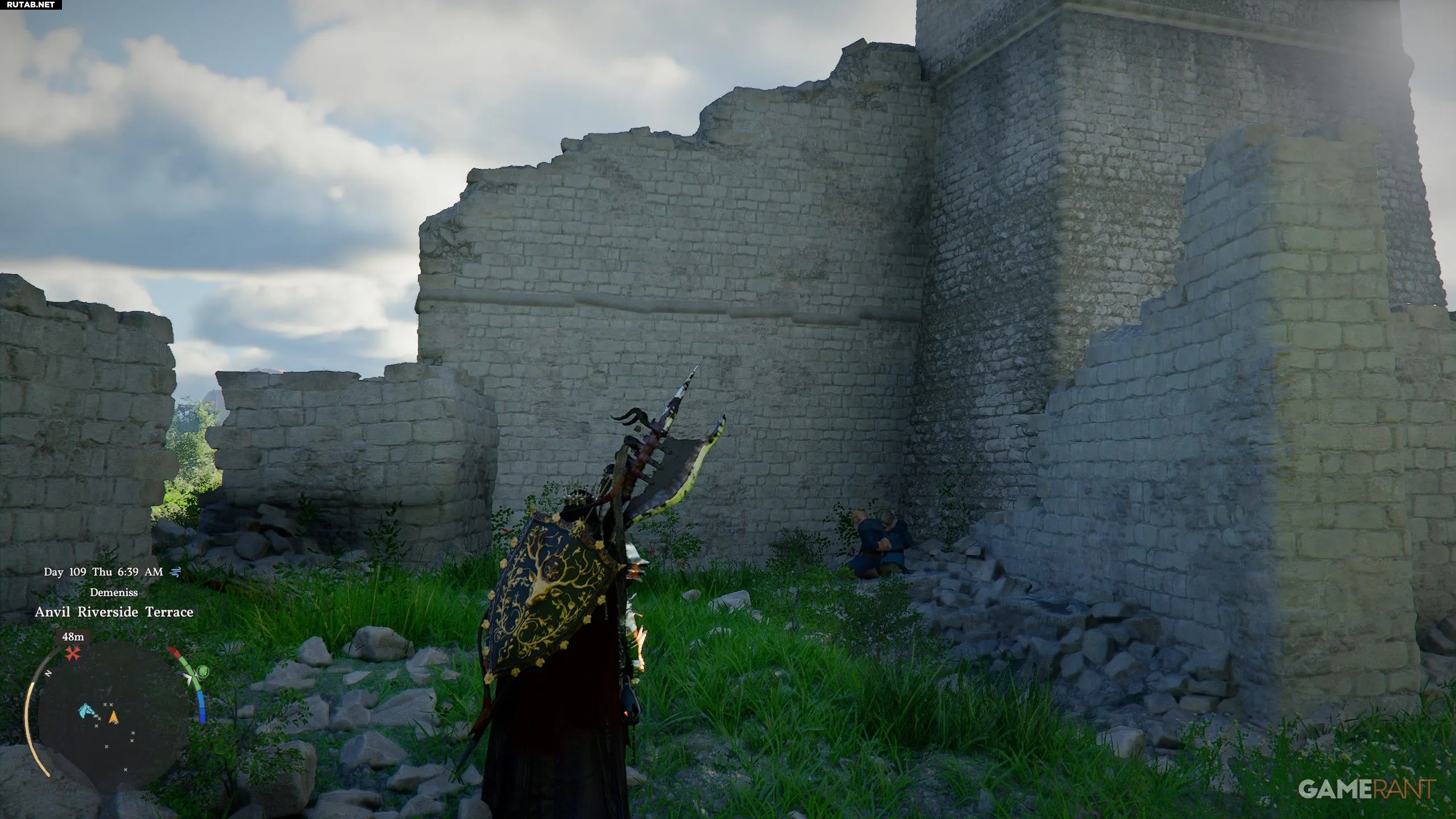 - Двигайтесь на юг от буквы «D» в названии «Demeniss», чтобы найти Террасу Русла Реки. Это руины, где обитает множество бандитов — их придётся устранить, чтобы очистить территорию и обезопасить себя.