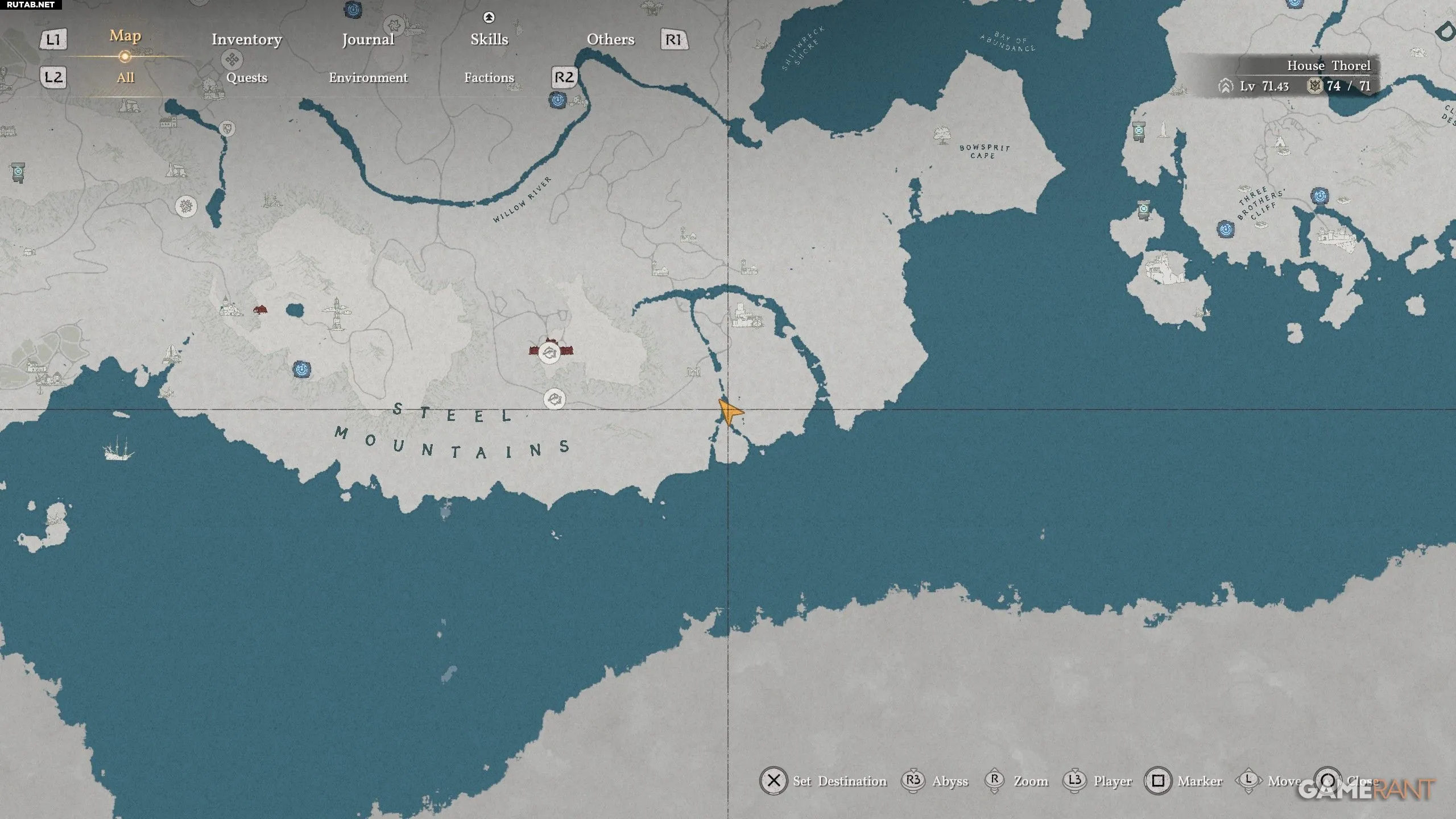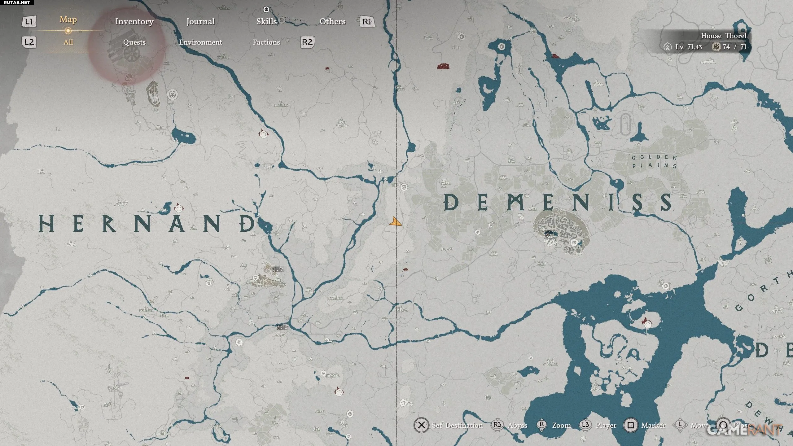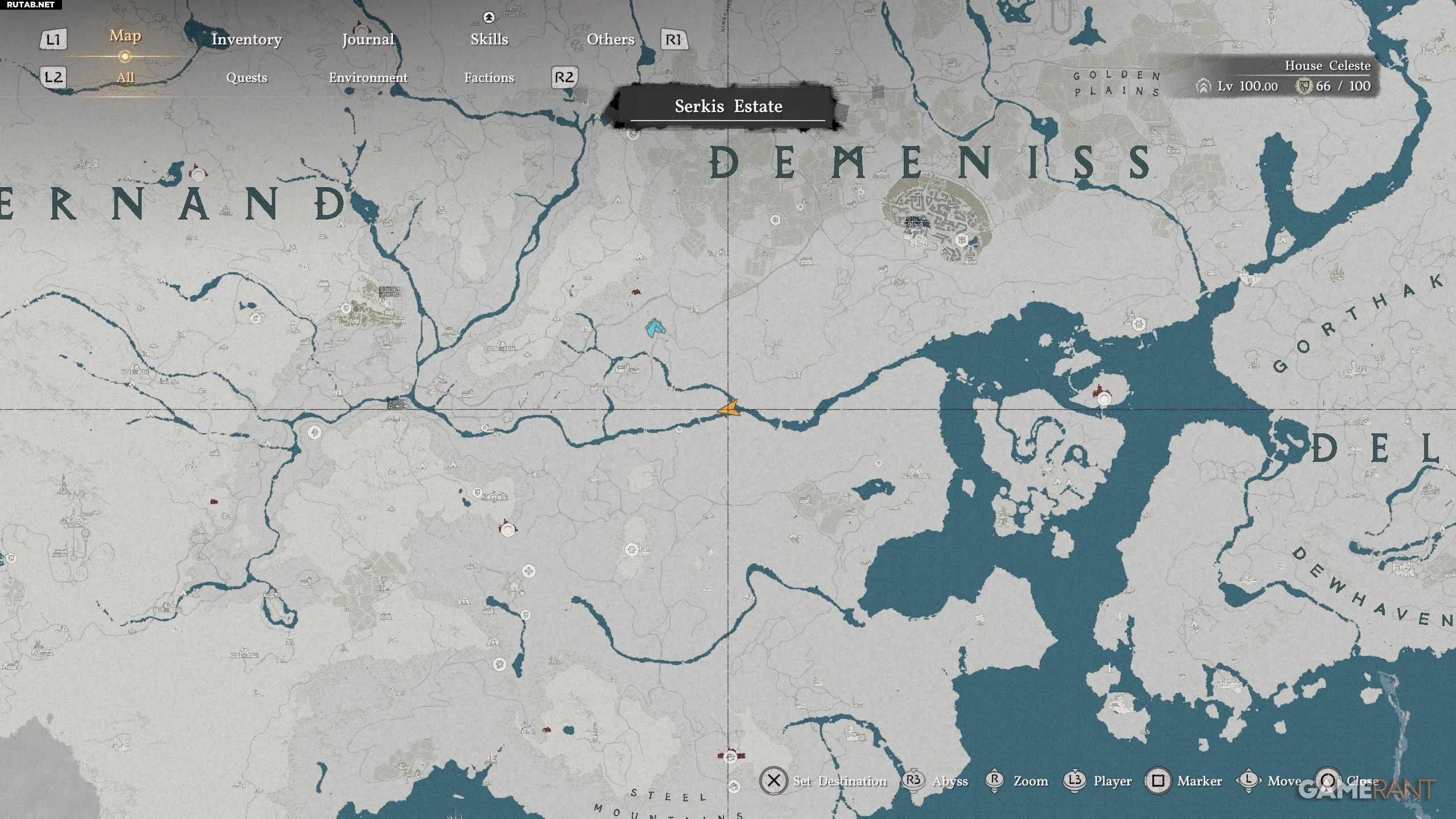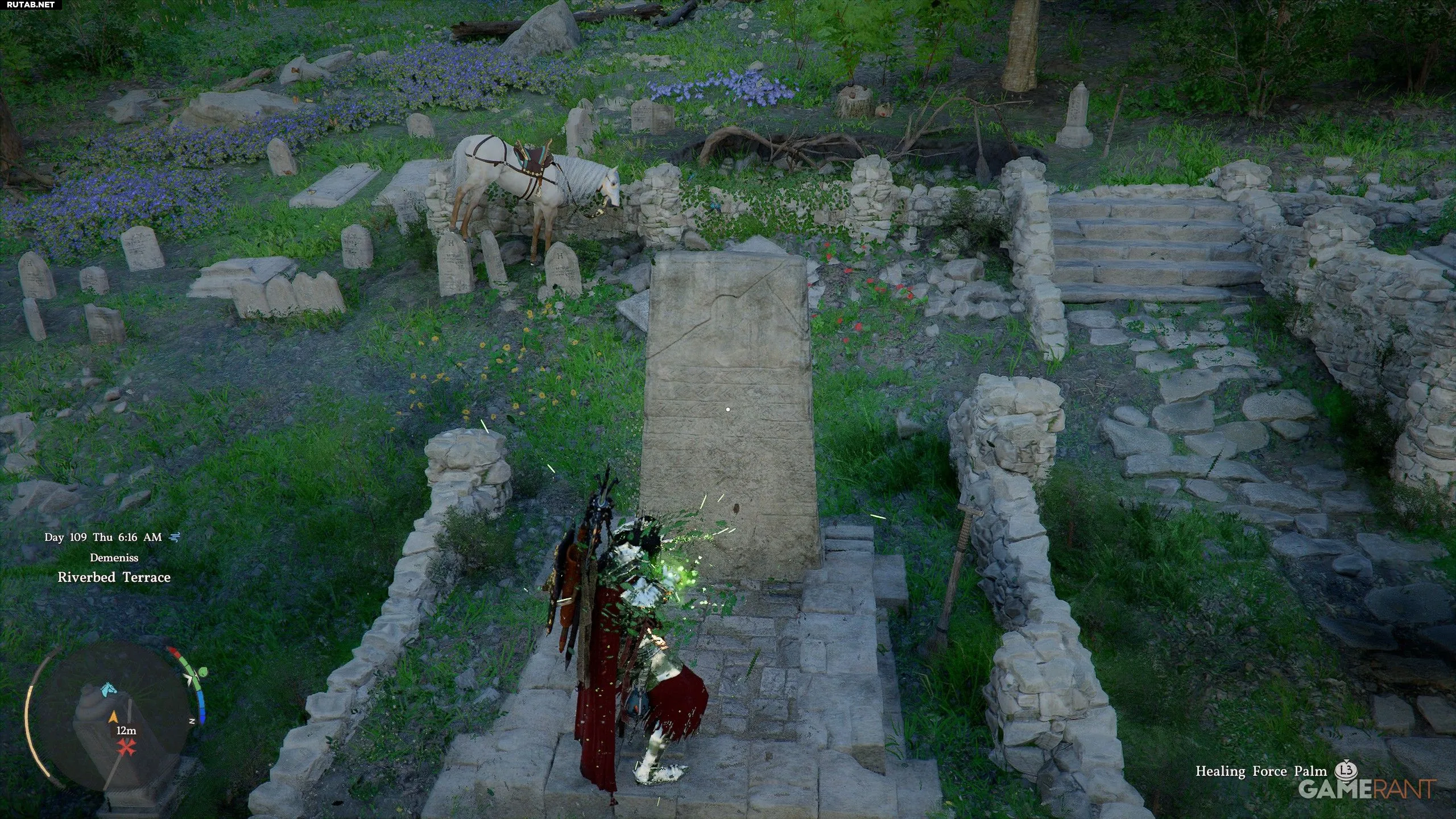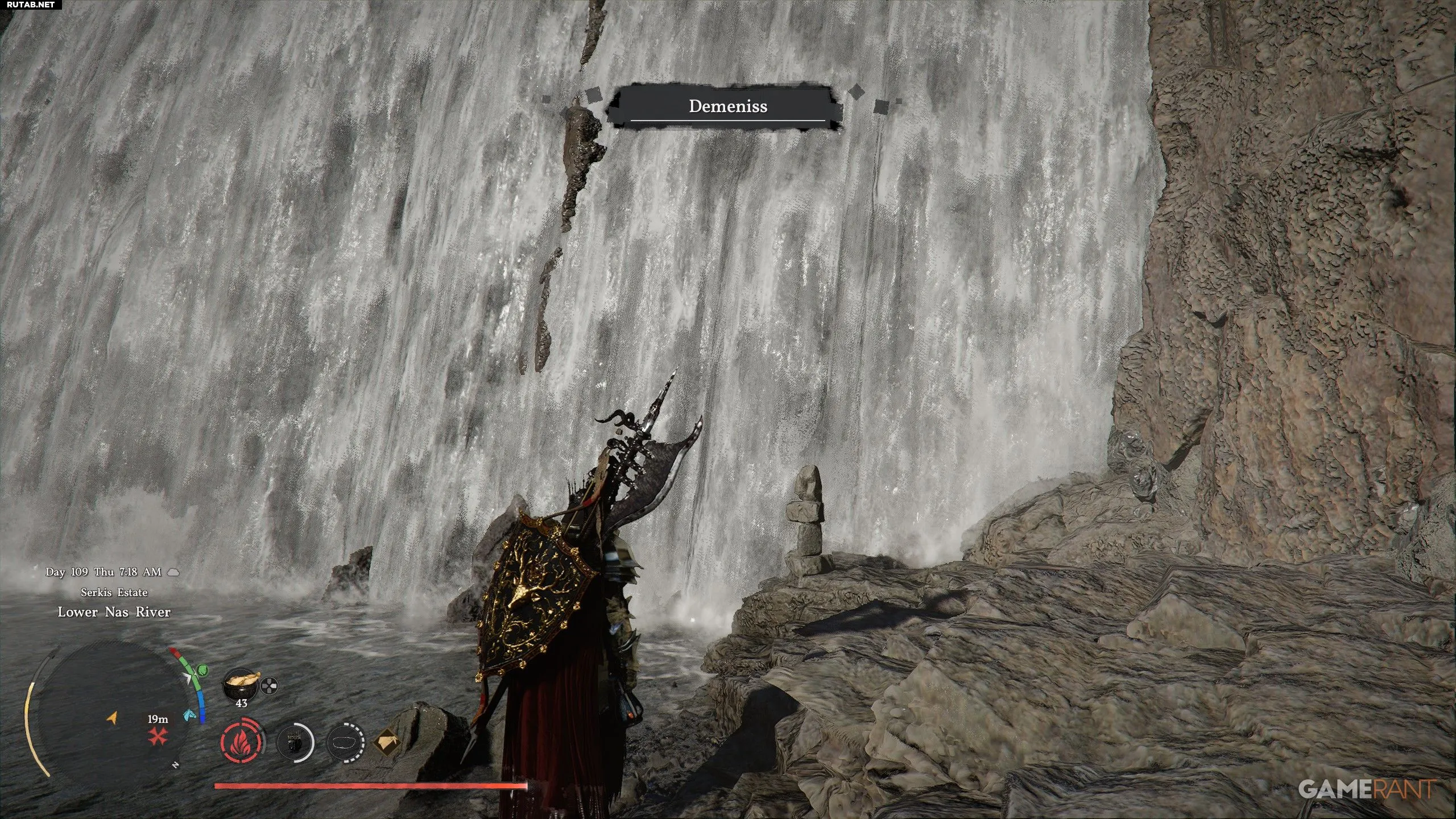 - Двигайтесь на юг от буквы «D» в названии «Demeniss», чтобы найти Террасу Русла Реки — место с множеством могил и надгробий.