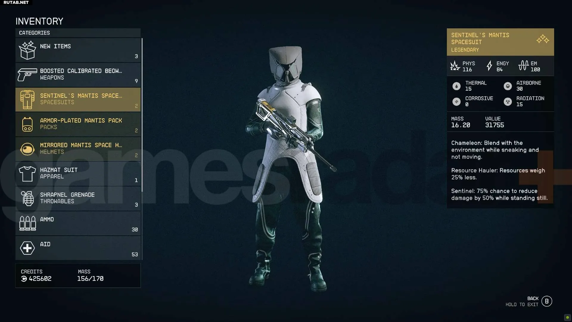 – Рюкзак «Бронированный Мантис» (легендарный)