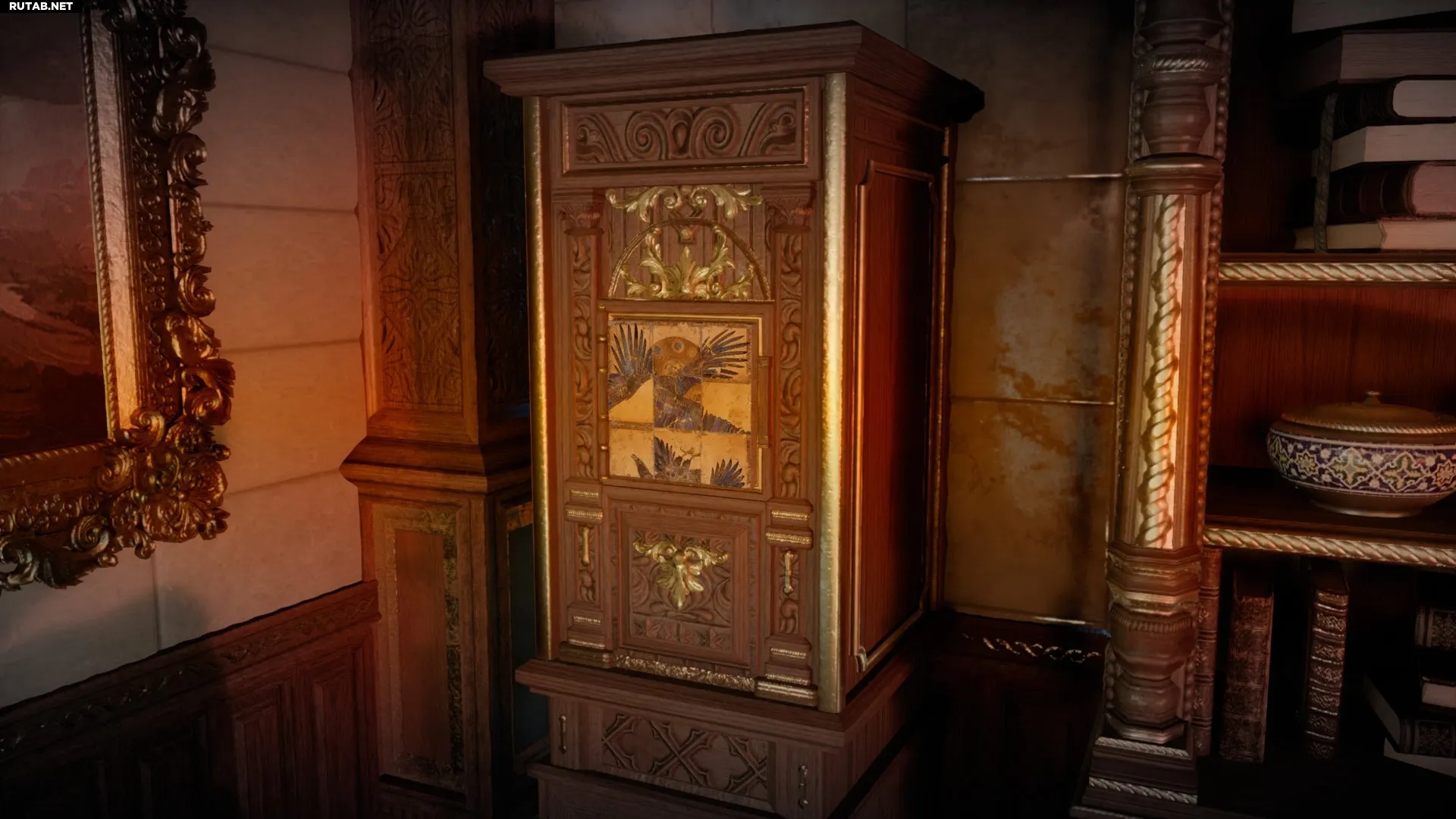 Чтобы открыть сундук, вам нужно сдвигать панели, чтобы собрать изображение орла. Сделать это сложнее, чем сказать, потому что не существует единственного верного способа. Расположение панелей меняется каждый раз, когда вы заходите в локацию, пока головоломка не решена. Это ситуация, где нужно действовать методом проб и ошибок.