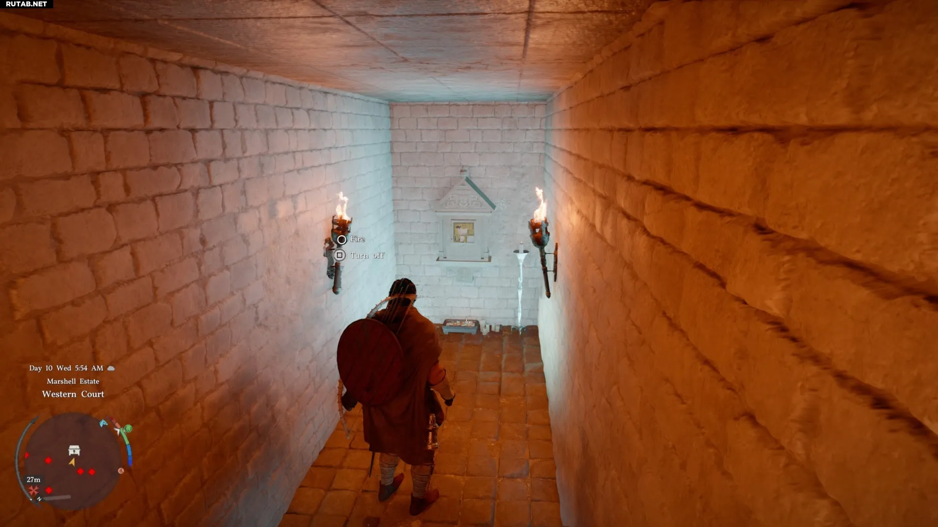 Пройдите за него, поверните направо и осторожно спуститесь в отверстие в камеру ниже. Пройдите по туннелю до конца, и вы найдёте сундук на стене.