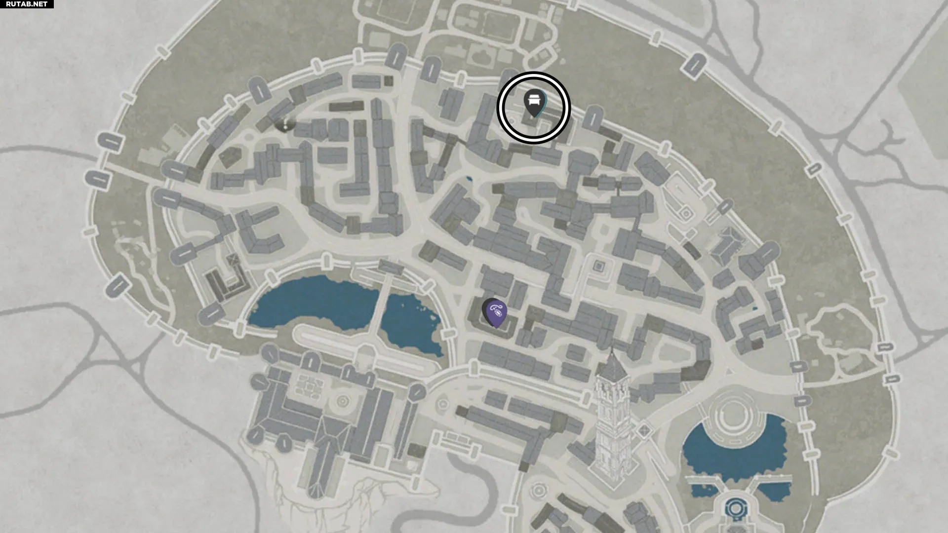 Сундук спрятан в южной части города, также за книжным шкафом в одном из зданий.