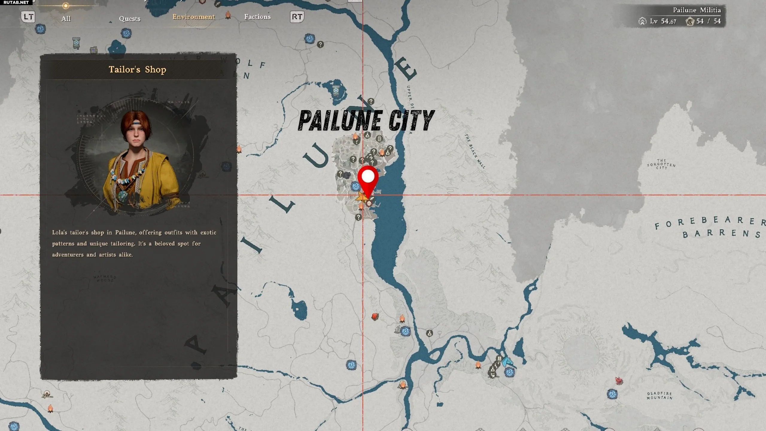Магазин портнихи Лолы находится на южной окраине города Пайлун. У неё можно купить различные комплекты брони и одежды, включая сапоги и плащ «Серый Волк». Однако нагрудник этого комплекта вы сможете приобрести у неё только после того, как поднимете её уровень доверия до 100%.