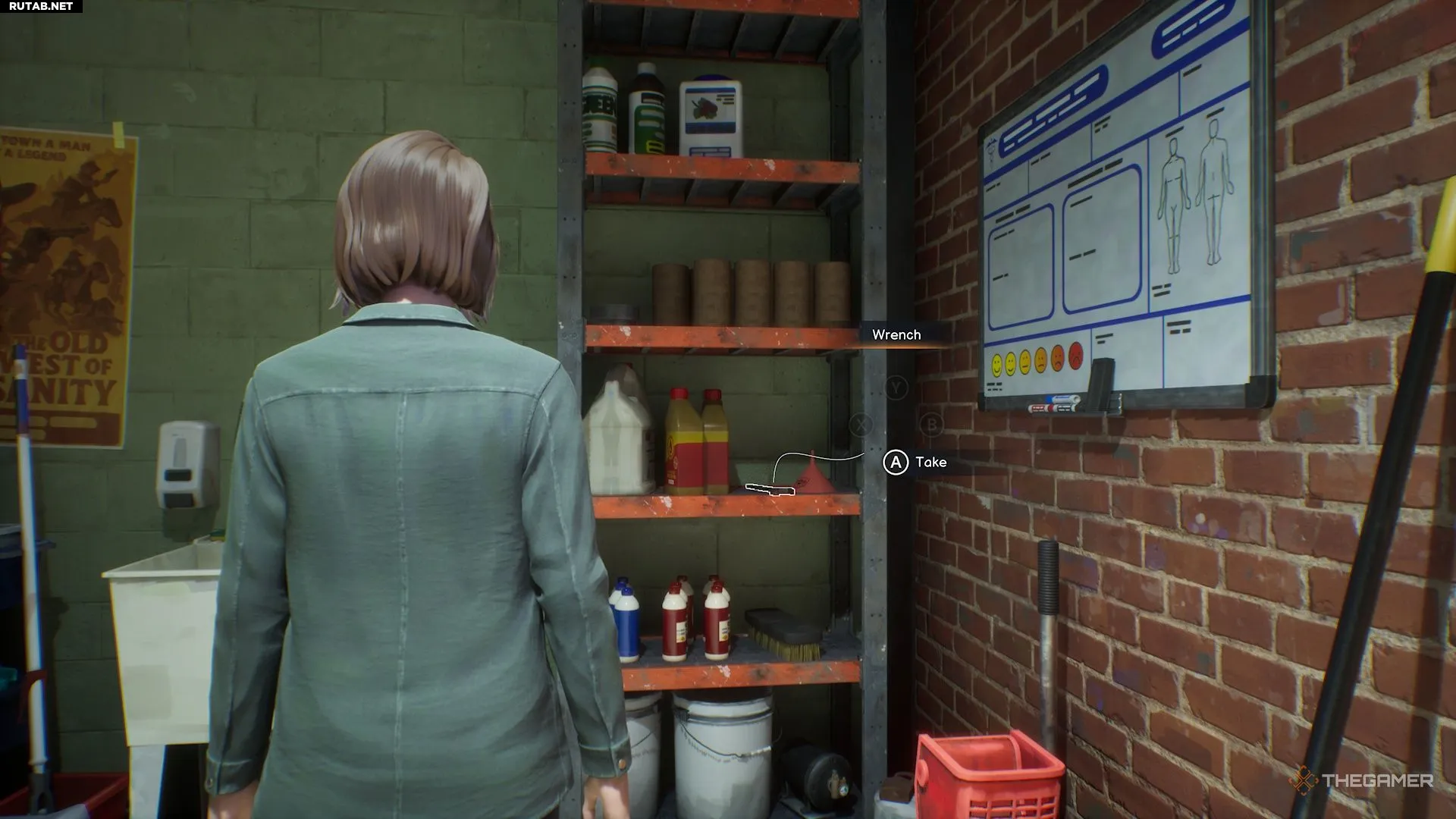 - Возьмите гаечный ключ с полки.