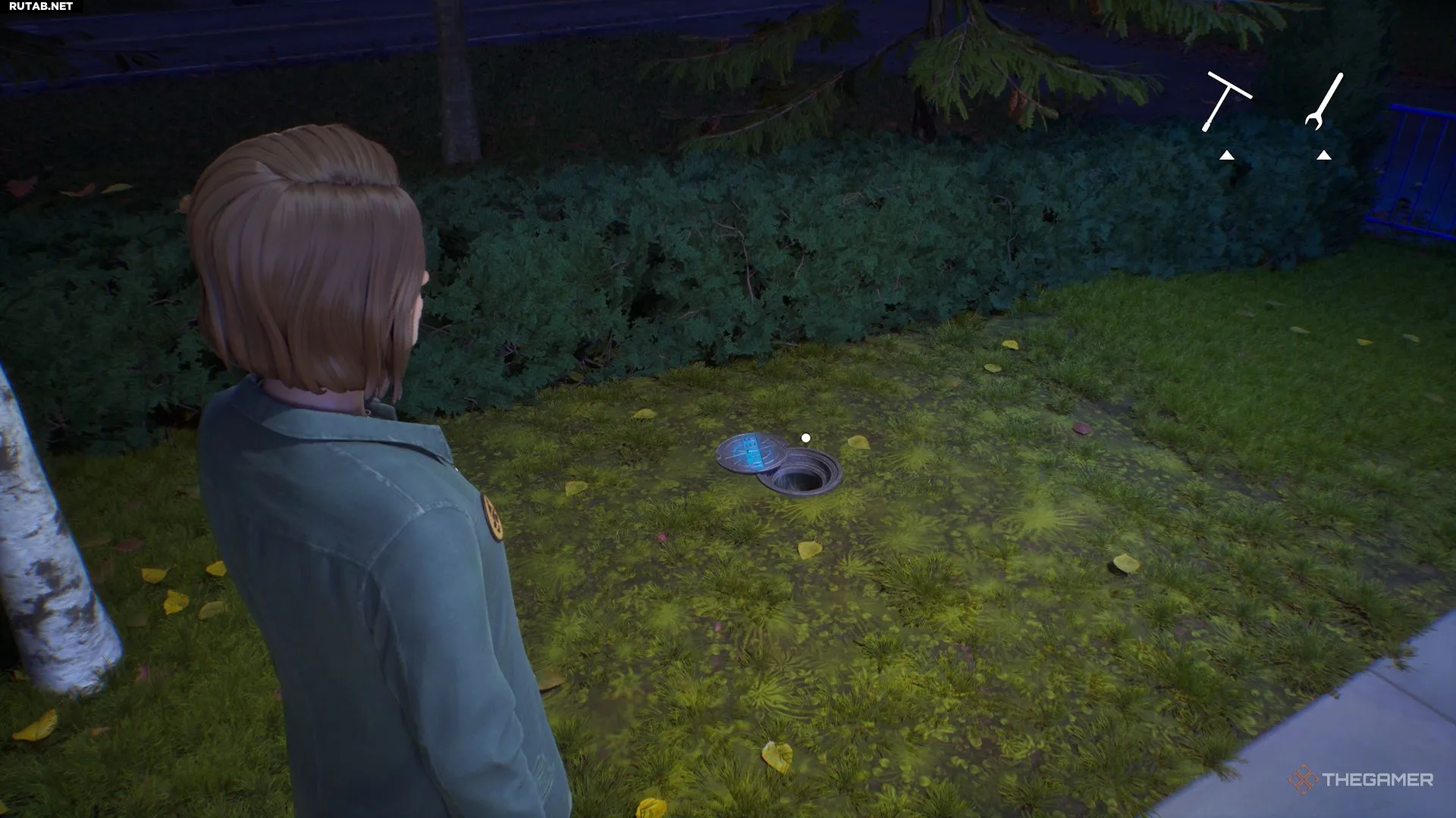 Пройдите немного вперёд, чтобы найти фонтан слева. Подойдите к фонтану и поверните направо, направляясь к полицейской машине. Не доходя до неё, вы обнаружите отверстие в земле, которое отмечает следующий запорный вентиль. Поверните его с помощью Т-образного ключа.