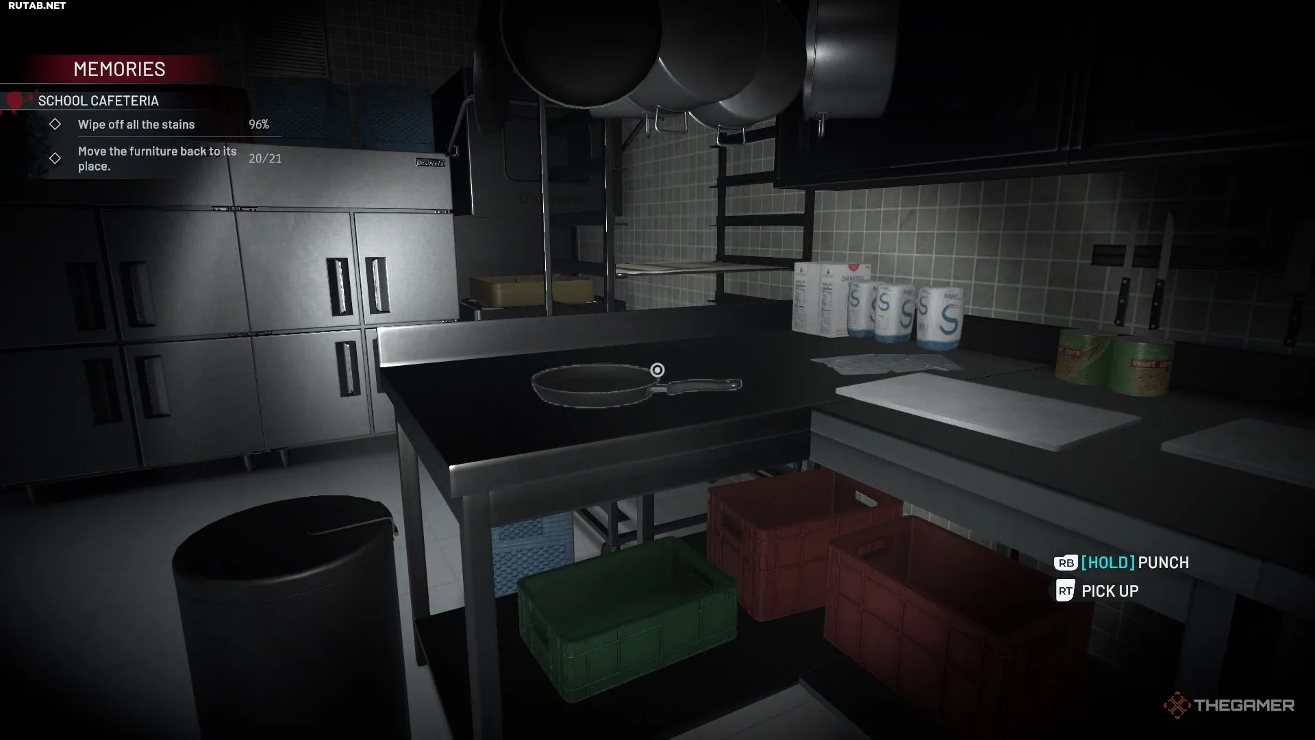 Найдите объявление «Amber Alert» (доказательство) на доске объявлений, прежде чем отправиться в кухонную зону. Верните на место кастрюли и сковороды: