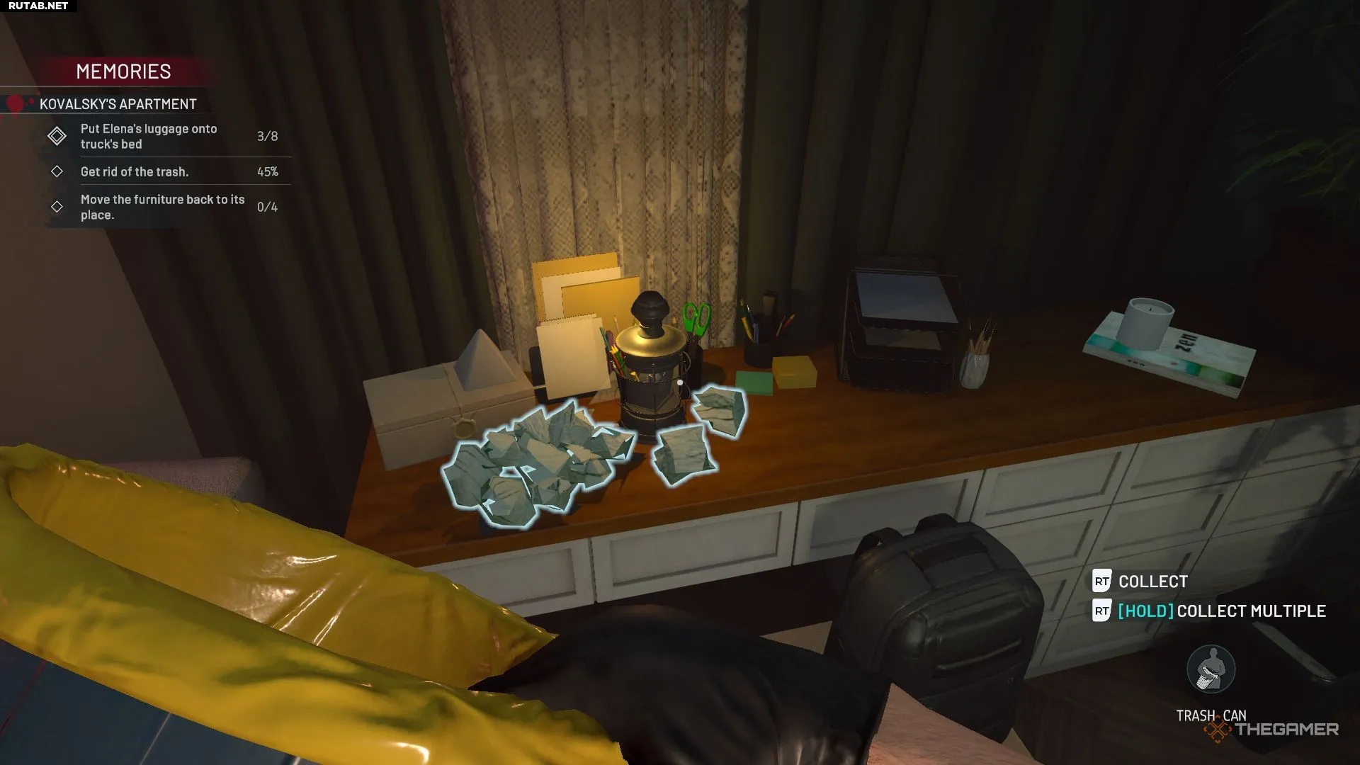 Вернувшись в квартиру Ковальски, вы увидите, что Елена собирается переезжать. Положите чемодан и четыре коробки (две на столе за диваном) из гостиной в грузовик и пройдите в комнату Елены. Отнесите сумку и коробку из её комнаты в грузовик и уберите бумажный мусор. Верните подушки и зайца на её кровать и поправьте стул у письменного стола. Ещё одну сумку нужно забрать на кухне. Ответьте на звонок телефона, чтобы завершить миссию.