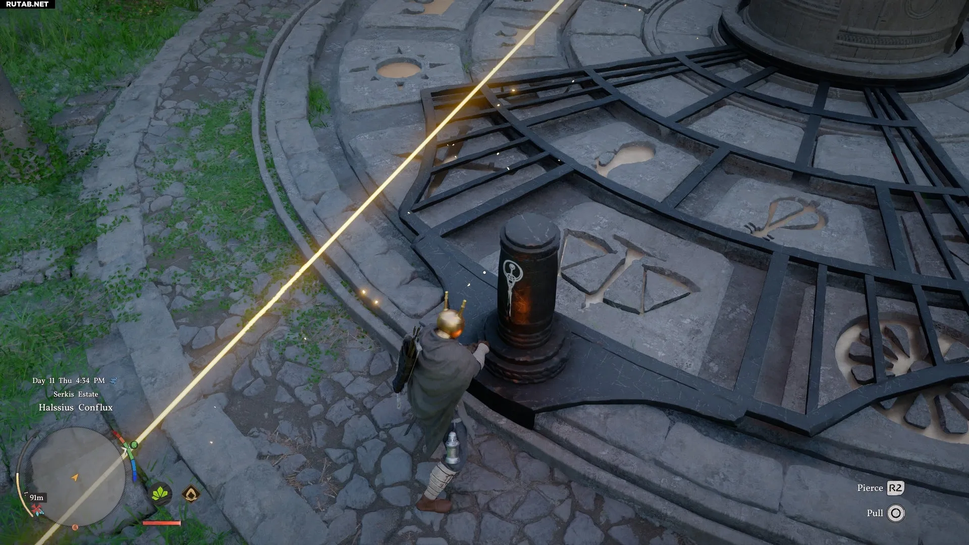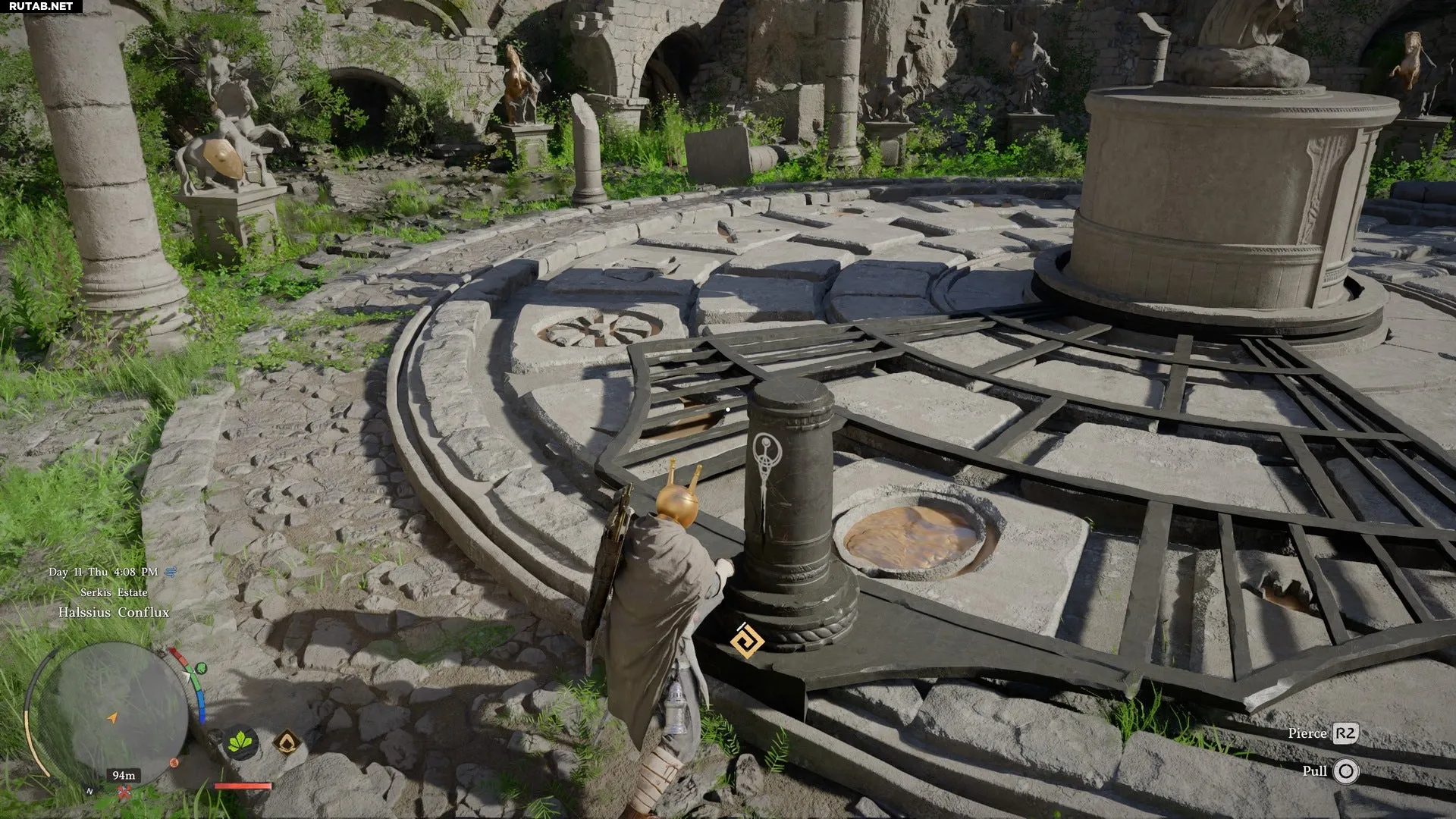 - «Хватка природы» (Nature's Grasp): нажмите «Треугольник + Круг» на PlayStation или «Y + B» на Xbox, чтобы переместить сломанные каменные колонны, лежащие на площадке. Они блокируют путь решетки.