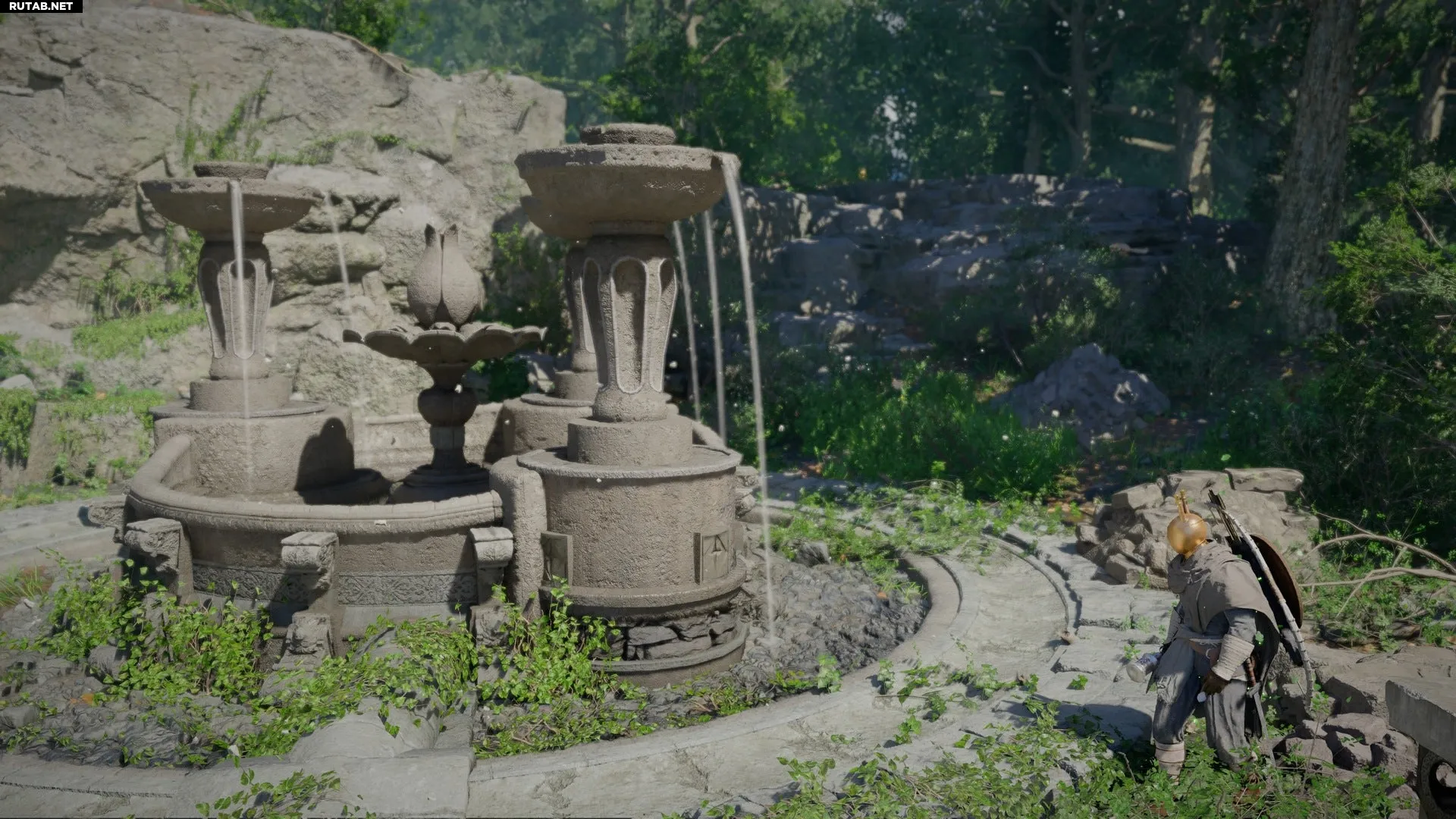 Подойдя к руинам, вы увидите фонтан с несколькими струями и водяное колесо под ним. Перед вами появится голограмма, подсказывающая, что струи фонтана можно «проткнуть».