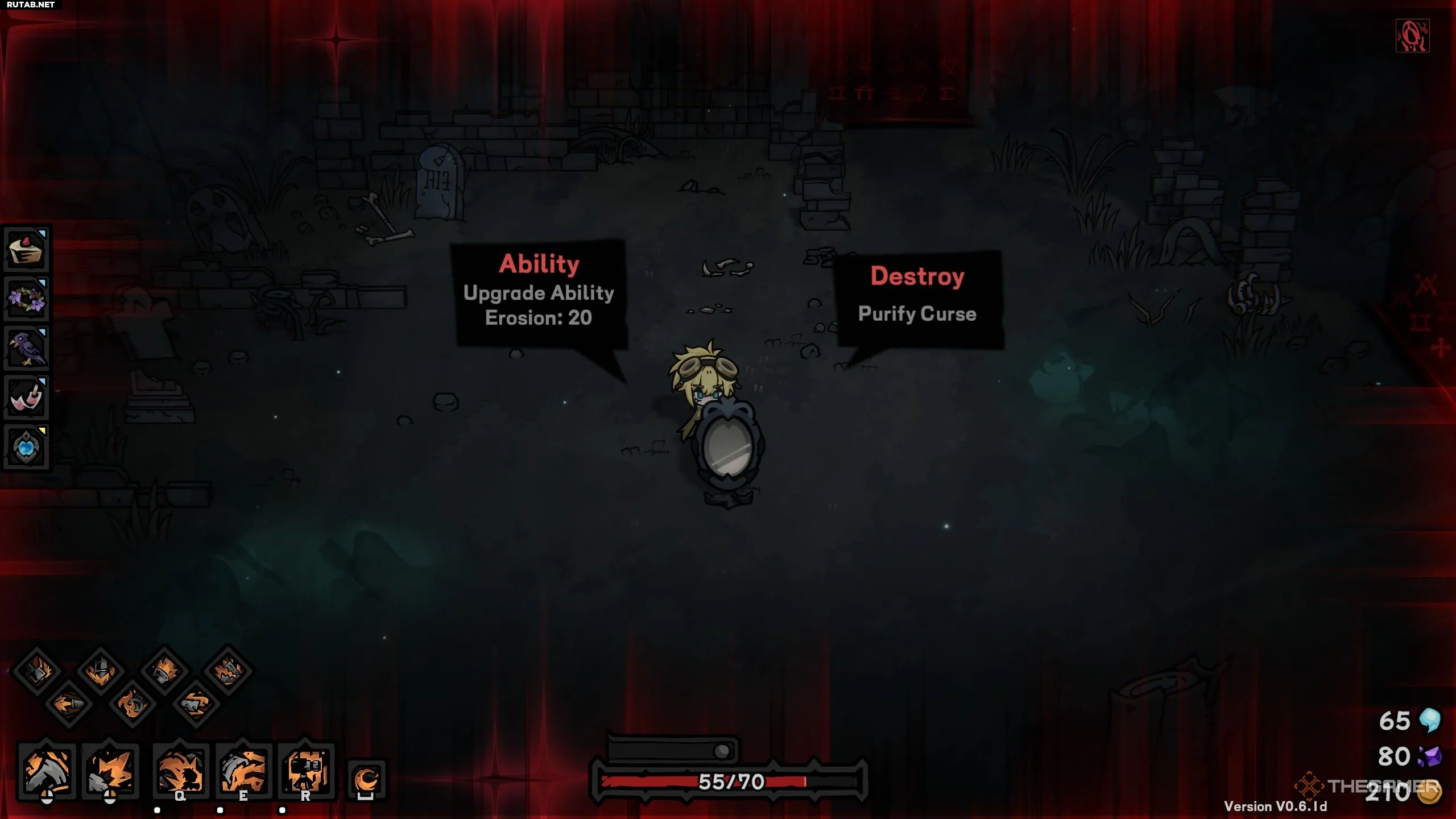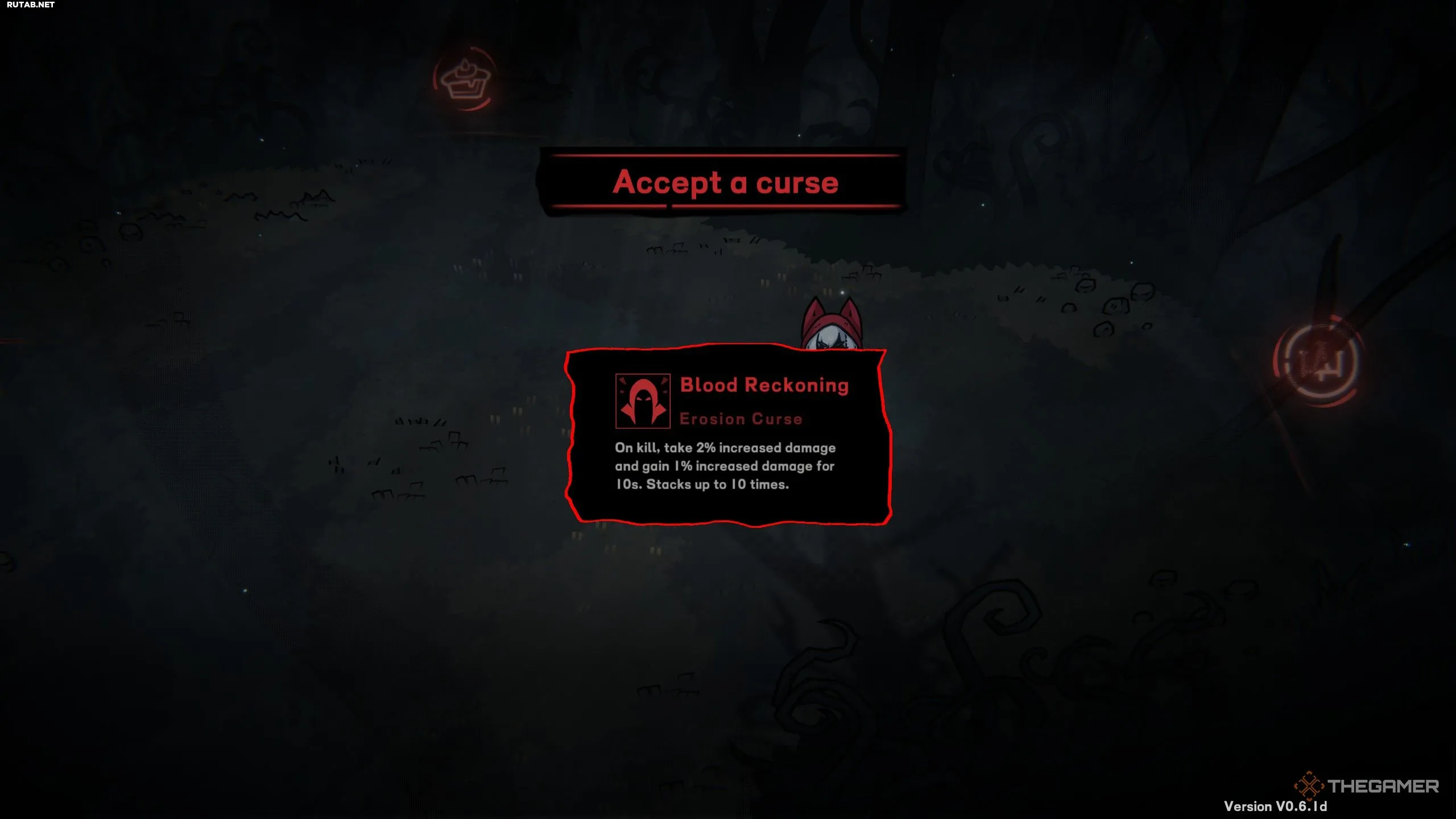 После достижения 100 единиц Эрозии на вас накладывается случайное проклятие, которое действует до конца забега. Все они исключительно негативны: например, вы становитесь слабее после получения урона, получаете больше урона при низком здоровье и так далее.