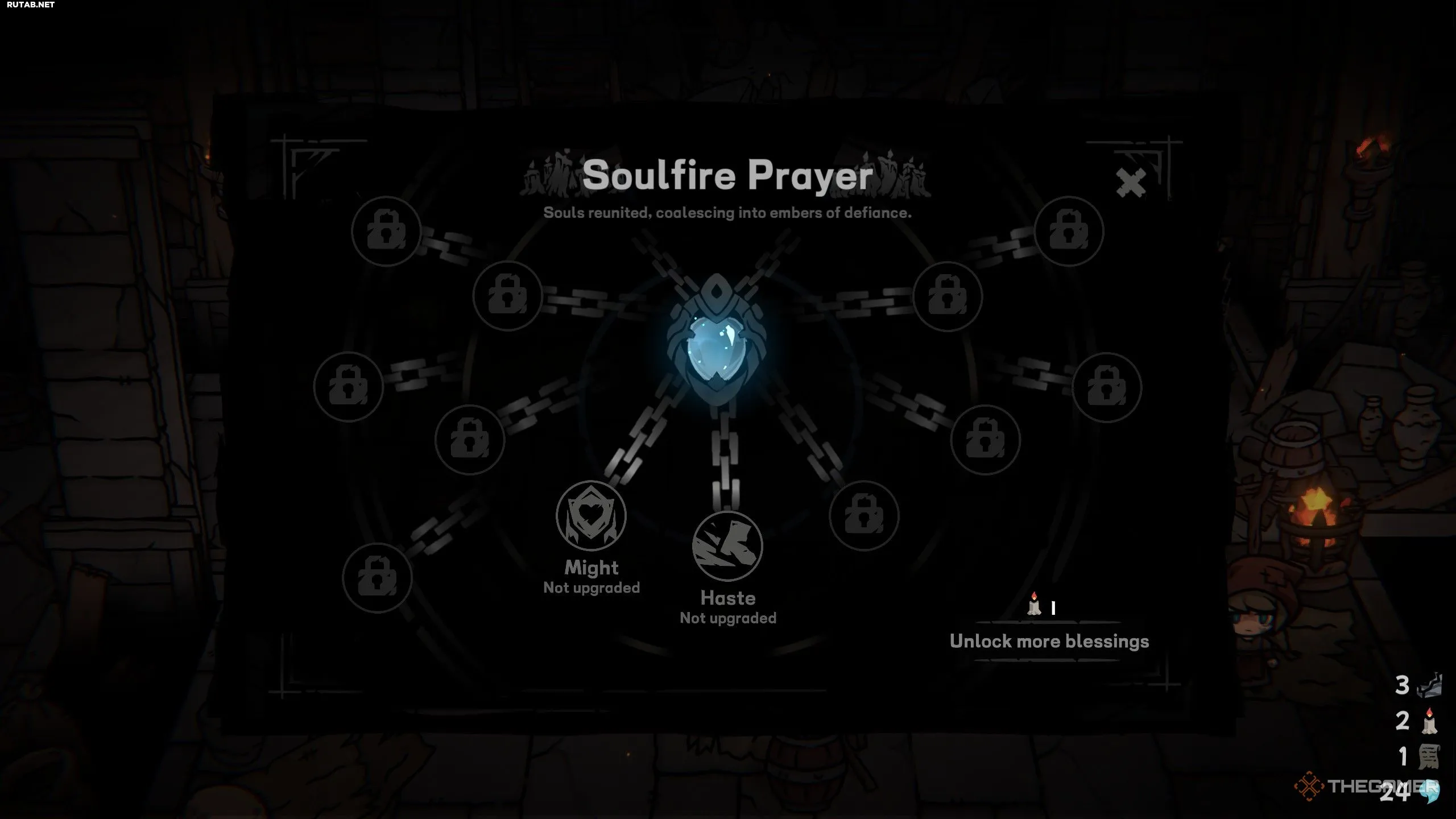Впервые вернувшись в Убежище, поговорите с Эллой. Это монахиня с синим камнем над головой. Она открывает доступ к молитве «Душевное пламя», которая даёт различные постоянные улучшения.
