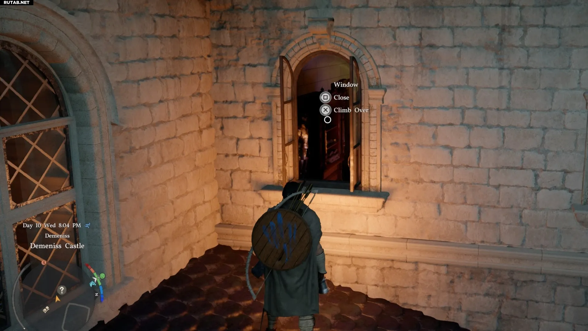 Проще всего проникнуть в замок, забравшись на крышу и залезть в окно с западной стороны. Пройдя через него, выйдите в дверь и спуститесь прямо по лестнице вниз.