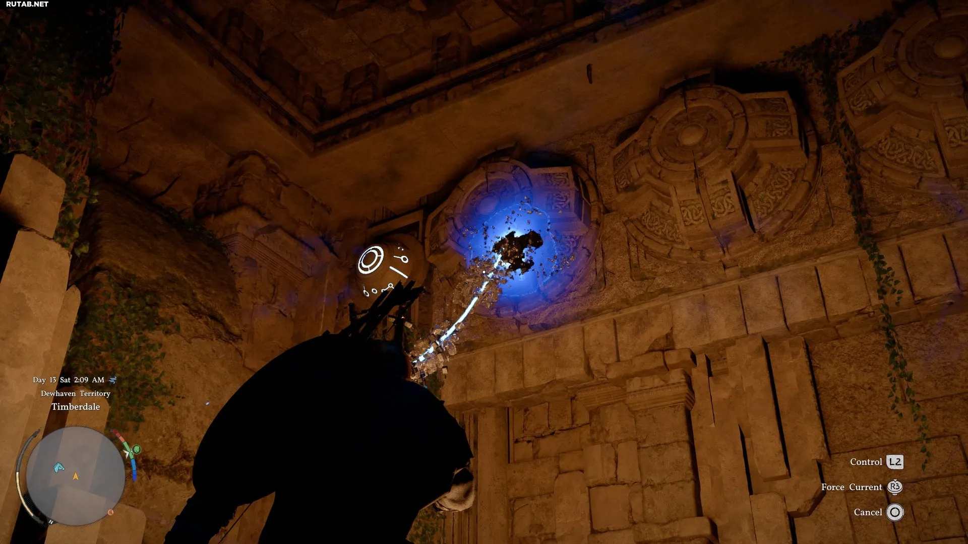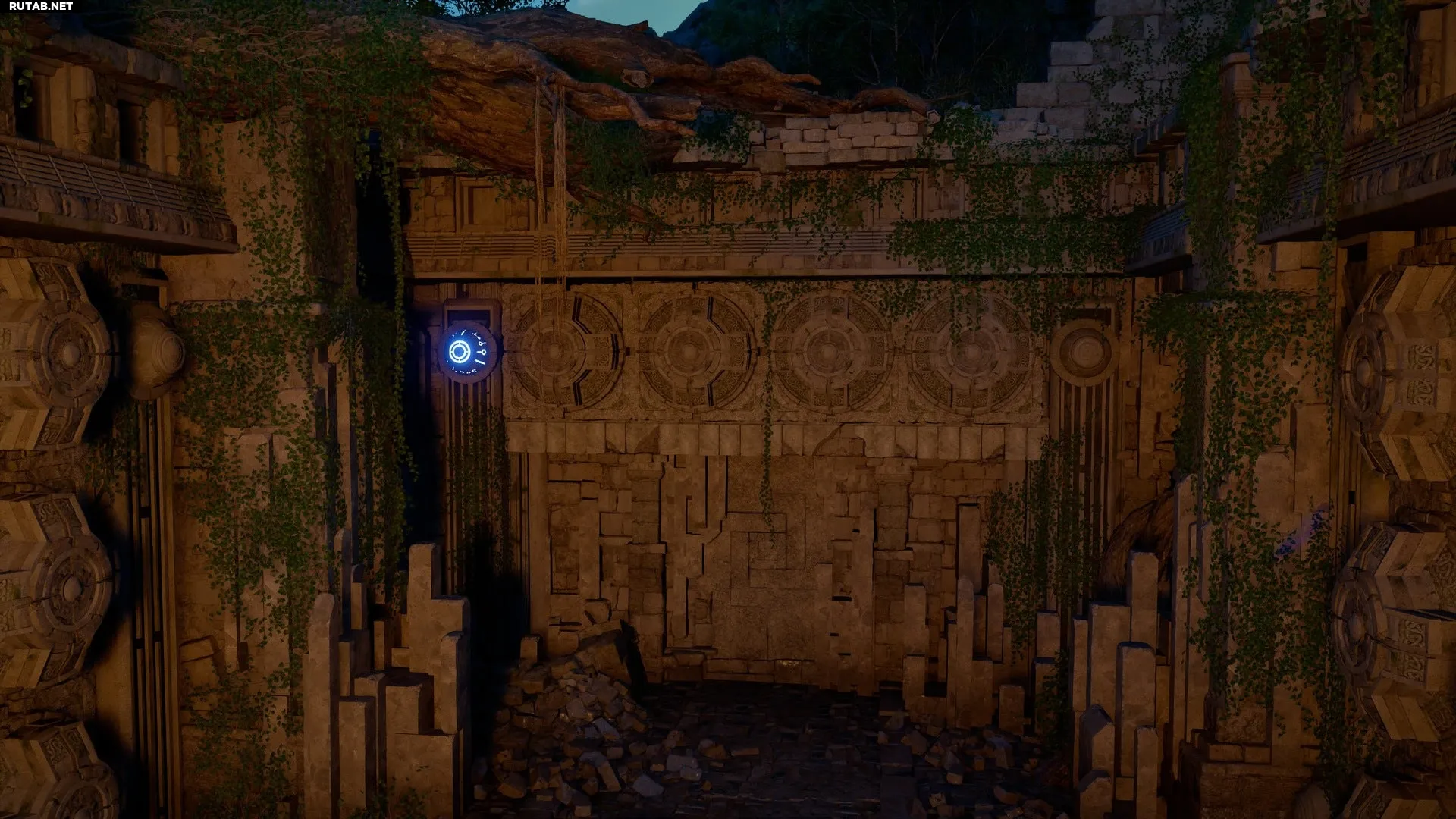 Теперь можно приступать к решению головоломки руин Ущелья Тимбердейл! Вернитесь внутрь осушенных руин и посмотрите на циферблаты на стене рядом с источником энергии. Ваша цель — ударить по циферблатам так, чтобы энергия прошла через них все.