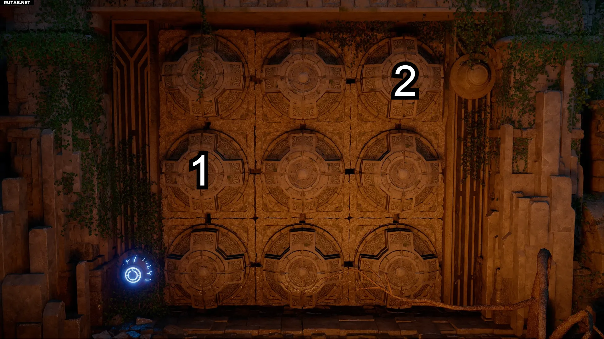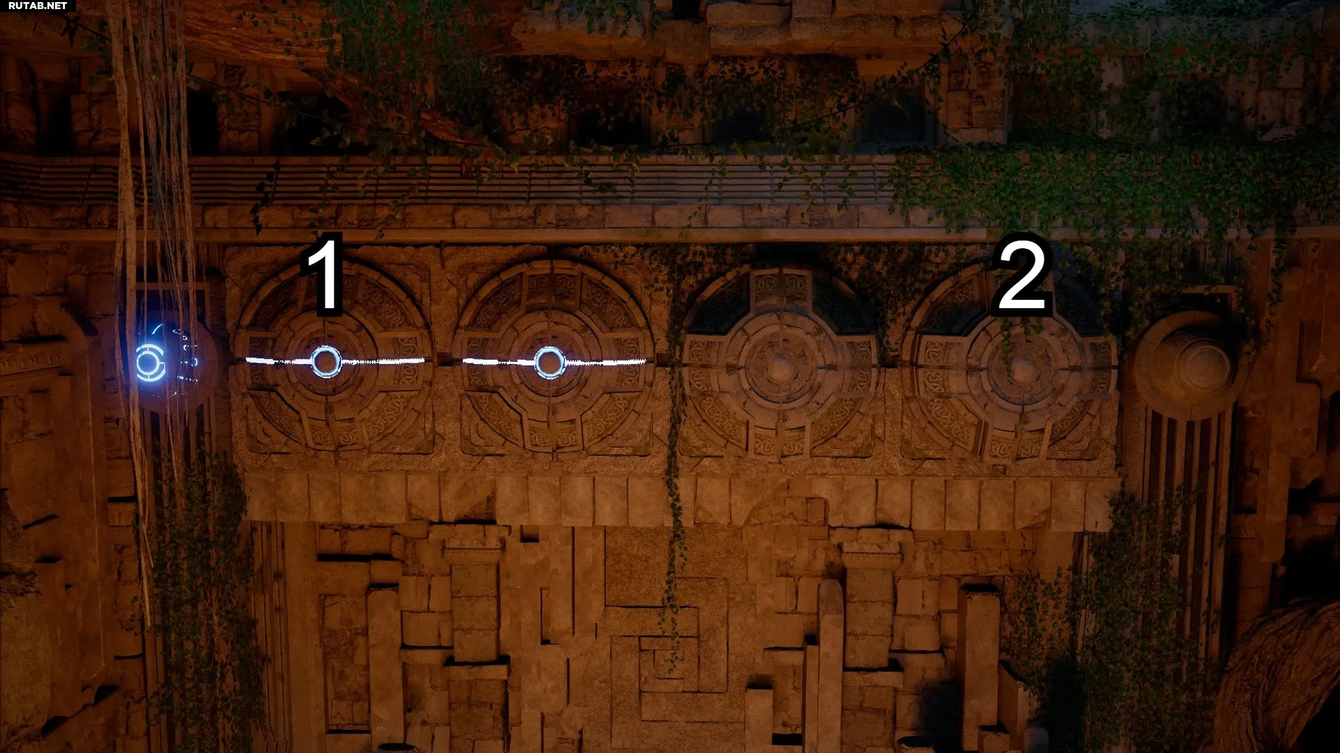 Если нажать «L1» и посмотреть на циферблаты, вы увидите точный путь, который нужно создать, чтобы энергия перетекала с одной стороны на другую. Однако удар по одному циферблату может сбросить состояние соседних, и в этом заключается сложность головоломки в этих руинах. Также старайтесь точно нацеливаться на нужный циферблат, чтобы случайно не задеть несколько сразу и не испортить прогресс.