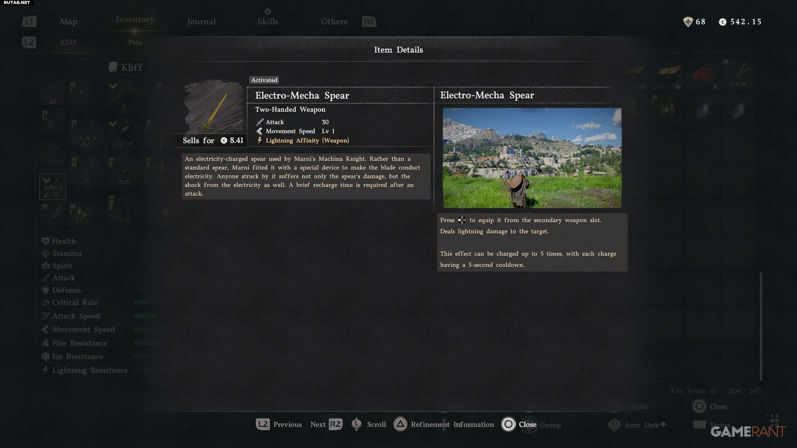 - Электро-Механическое Копье можно получить в любое время, и оружие с базовой атакой 30 — отличная находка. Однако вам придется добраться до самой восточной области карты, что может занять время.