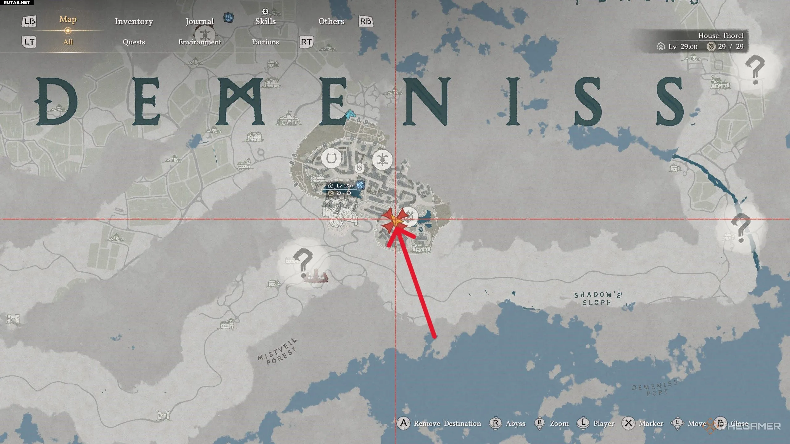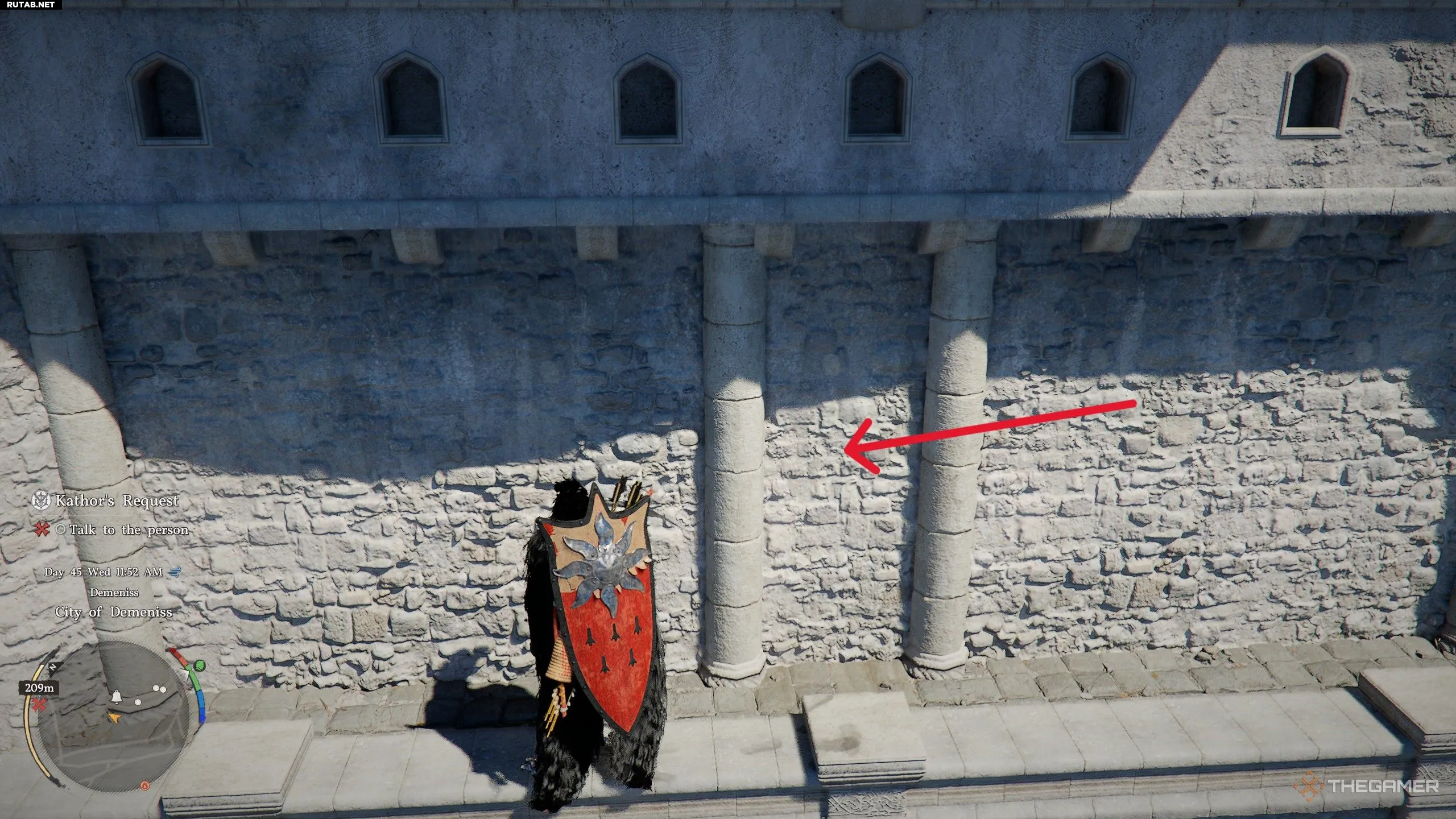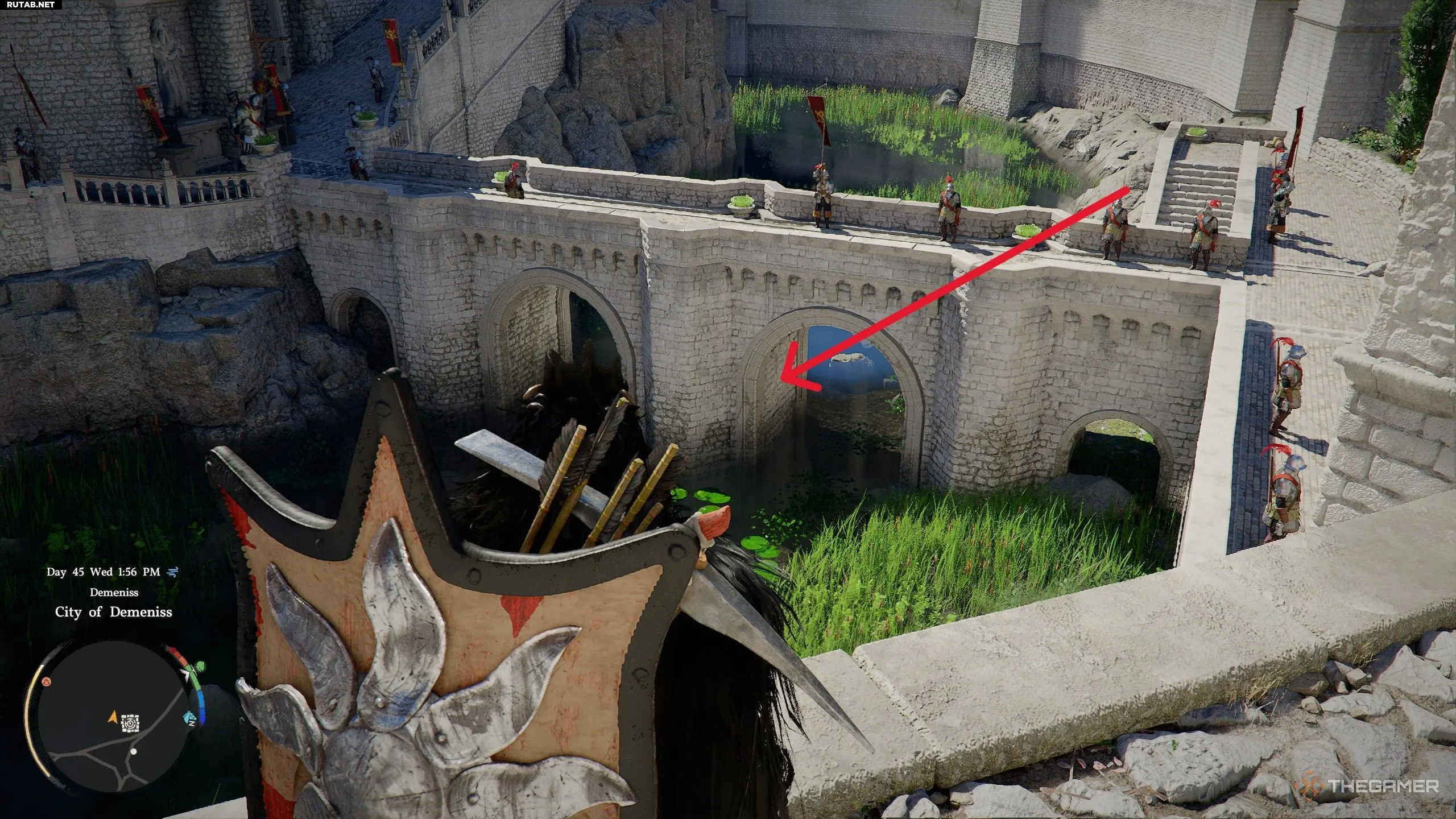 Если у вас не получается забрать снаряжение в городе Деменисса, рекомендуется вернуться сюда после прохождения 8-й главы. Это сделает город невраждебным по отношению к вам, что позволит свободно исследовать его и собрать все предметы.