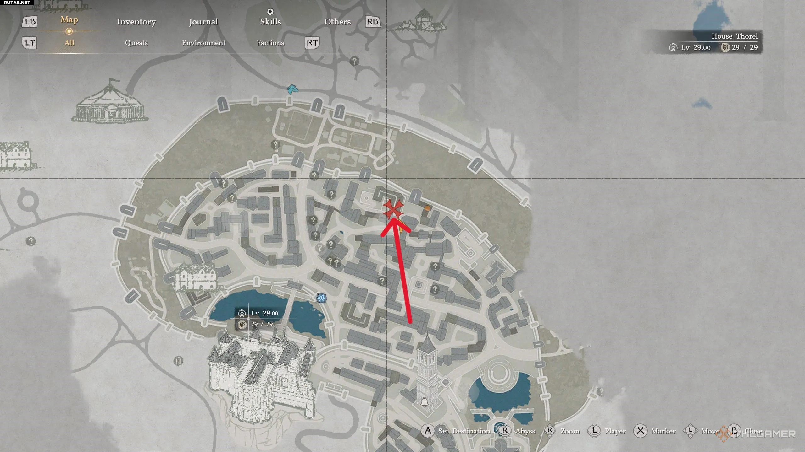Что касается доспехов, начнём с сапог. Вам нужно добраться до главного замка на южной стороне столицы. Выйдите наружу и осмотрите главные ворота, ведущие в город.