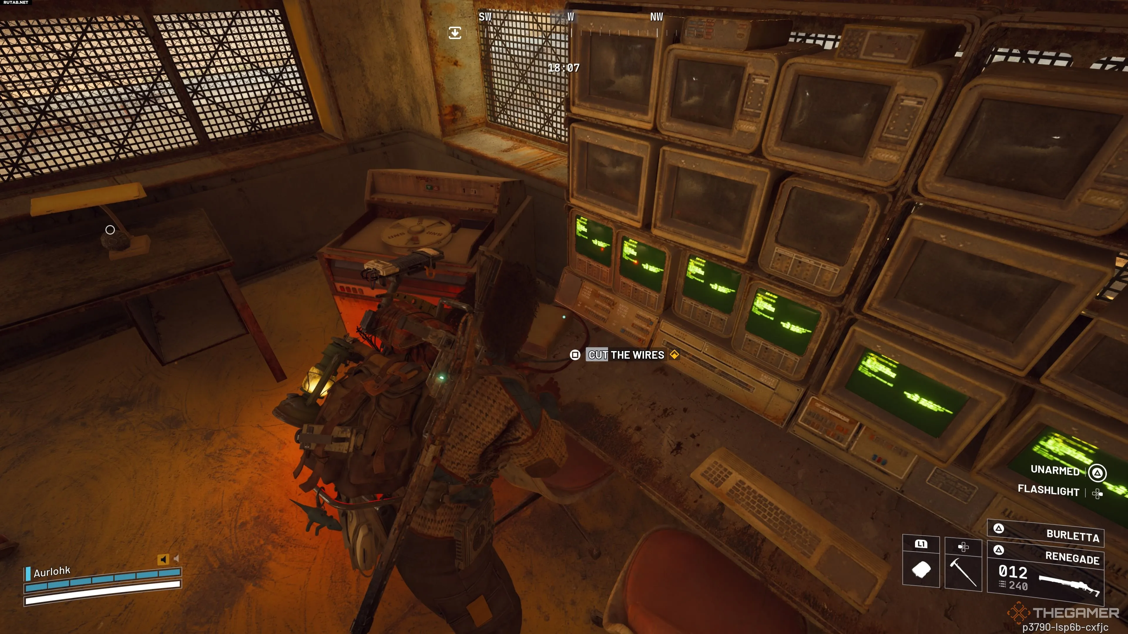 Внутри найдите стол со стеной из консолей и не подлежащий обыску медицинский чемодан с красной подсветкой. Взаимодействуйте с консолями ближе всего к чемодану, чтобы перерезать провода и завершить финальную цель задания.
