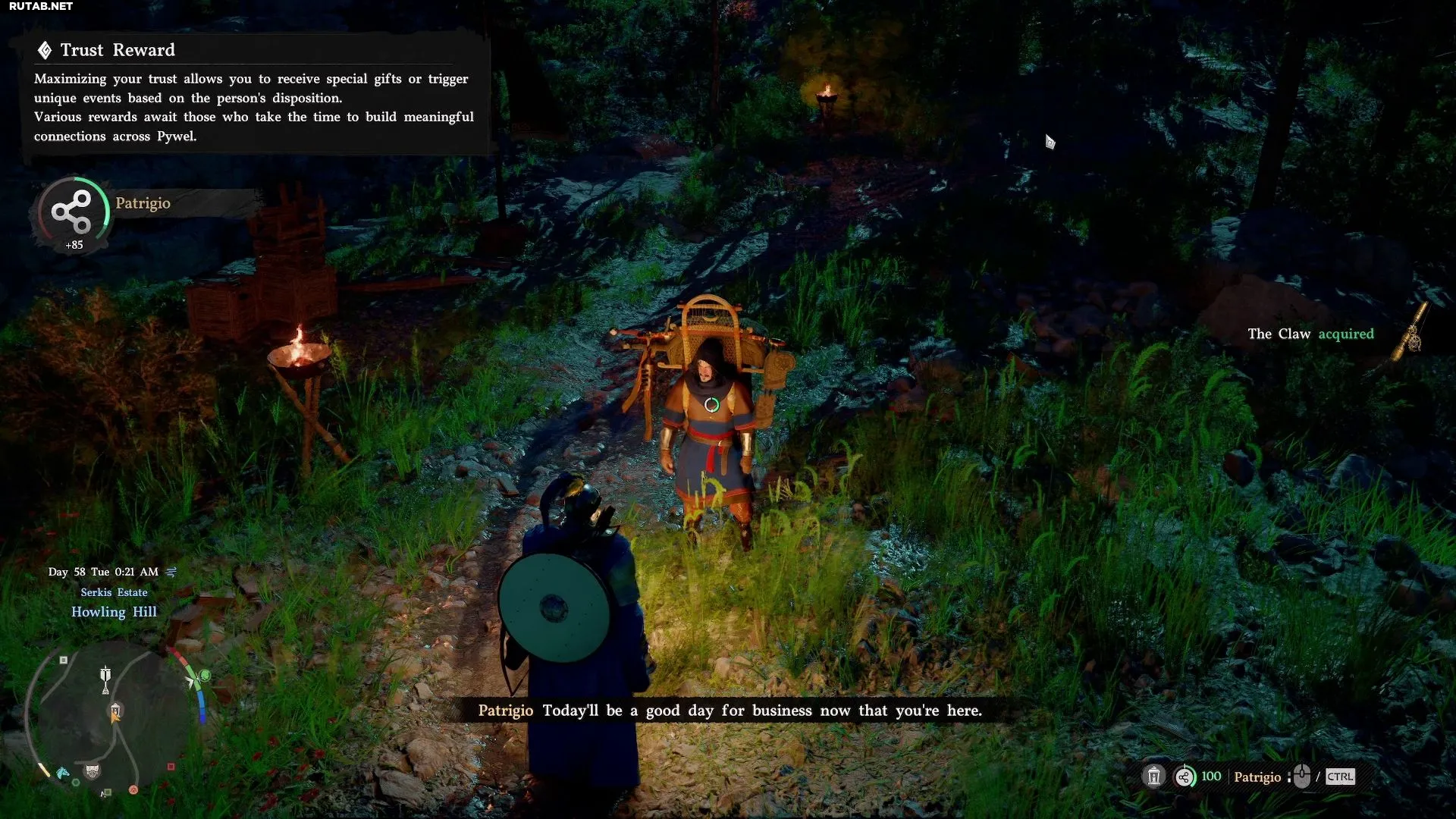 - Найти тайного торговца Патриджио и повысить его доверие до 100 единиц, чтобы получить «Коготь» в подарок.