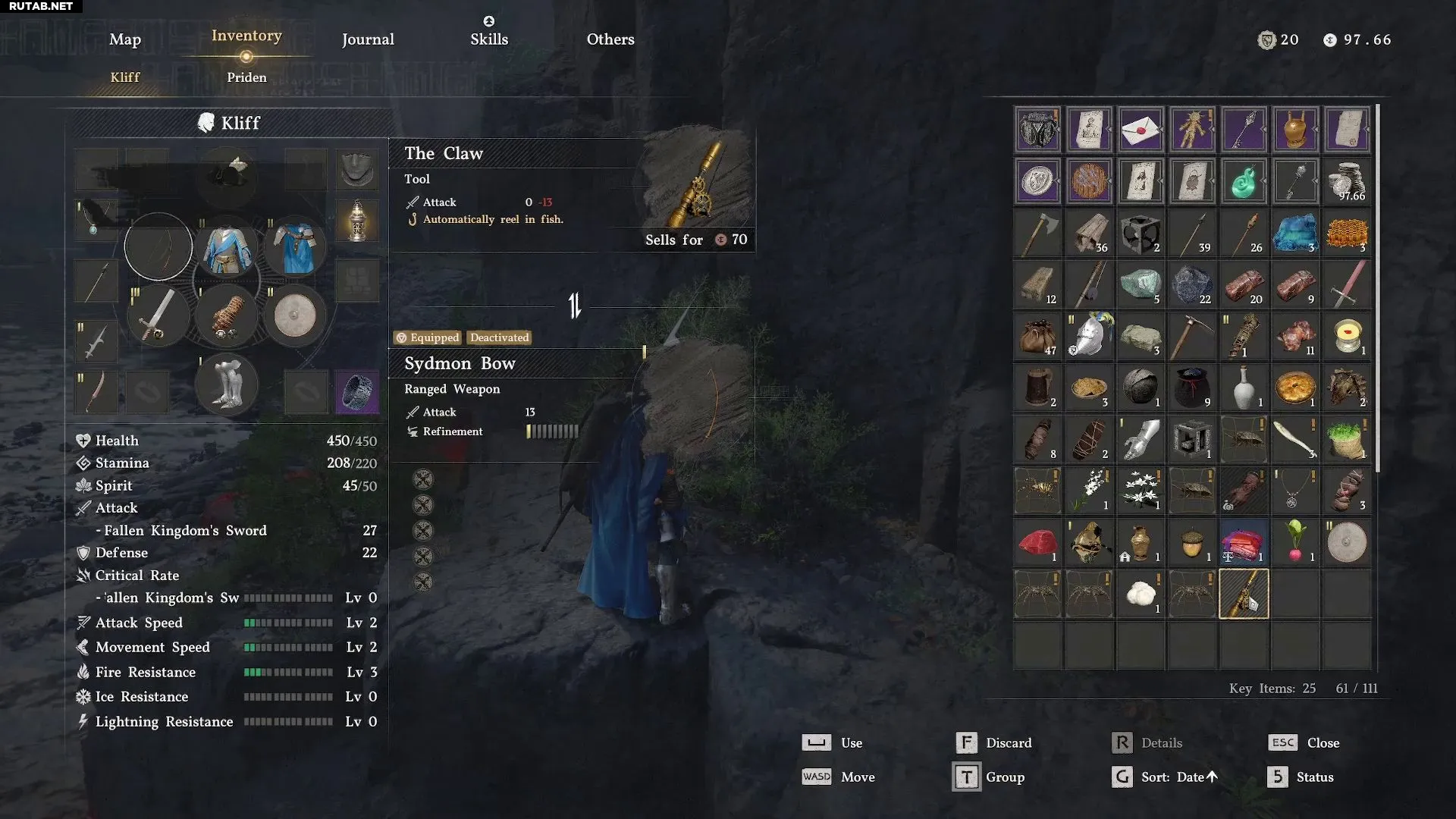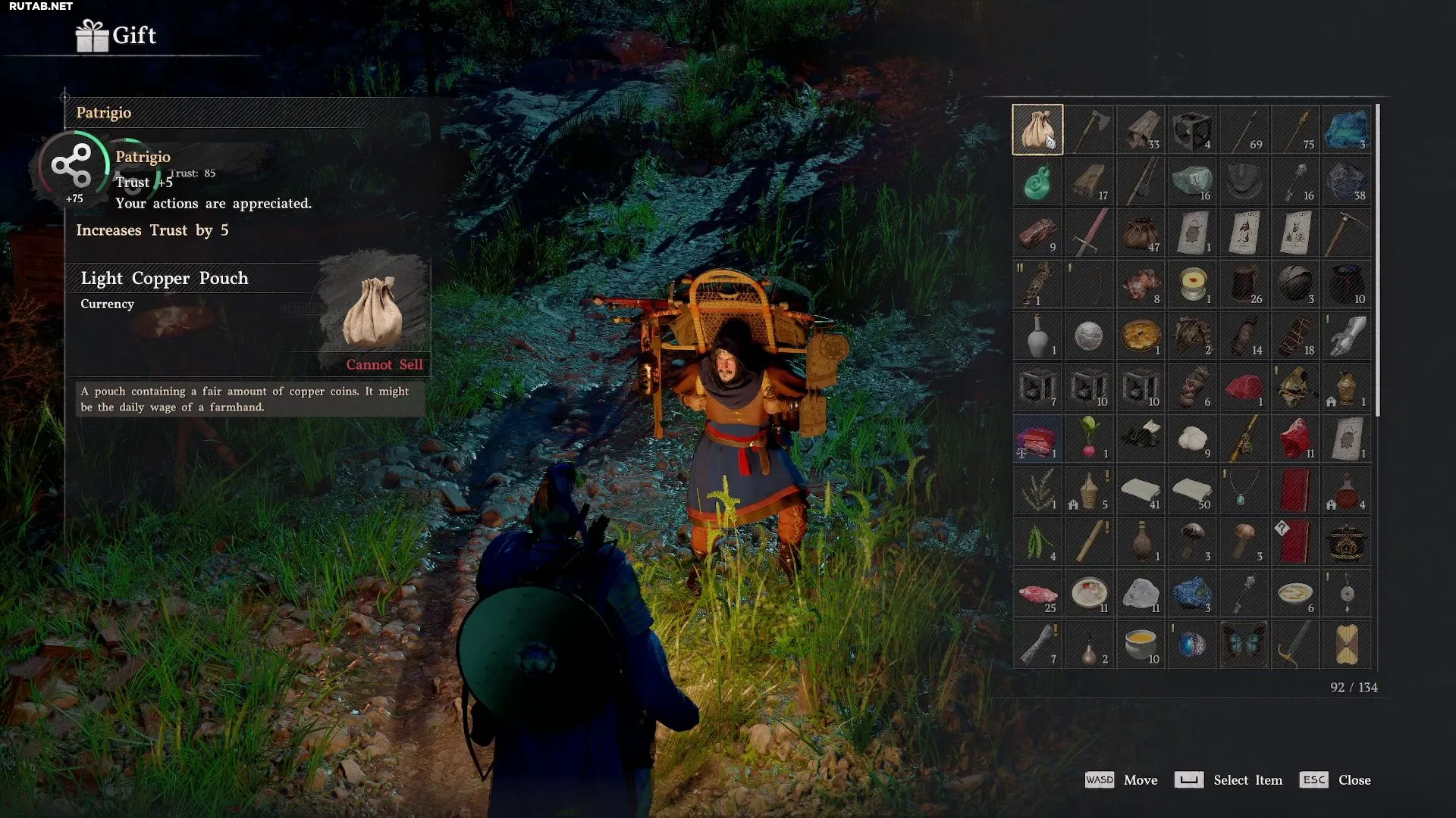 После того как вы нашли Патриджио, вы можете максимально повысить его доверие, подарив ему 20 медных кошельков (их стоимость не имеет значения). Медные кошельки можно обыскать с тел побеждённых врагов. Как только уровень доверия Патриджио достигнет 100, он вручит вам удочку «Коготь» в качестве награды.