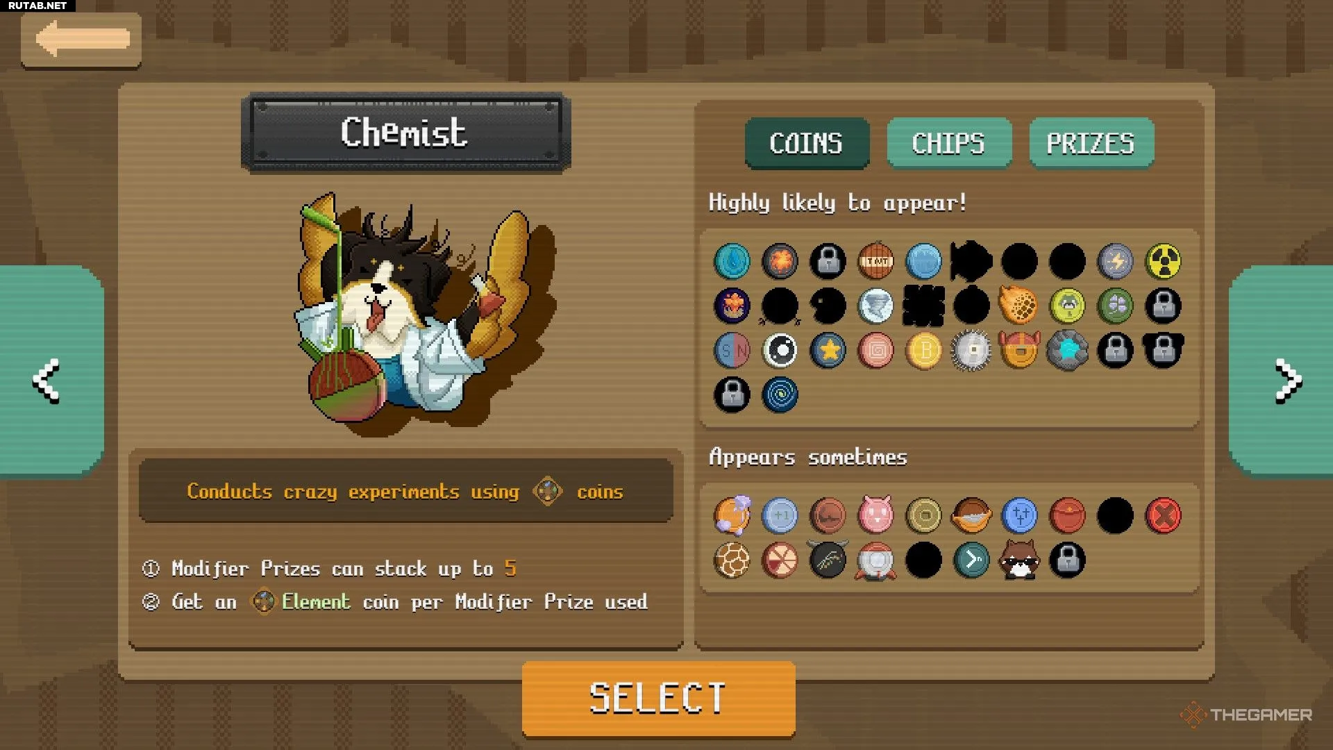 Оставаясь на более простой стороне, Химик — это милый пёс, который специализируется на Элементальных монетах. С этими монетами вы будете устраивать множество взрывов, которые помогут вам толкать ваши монеты во всех направлениях.