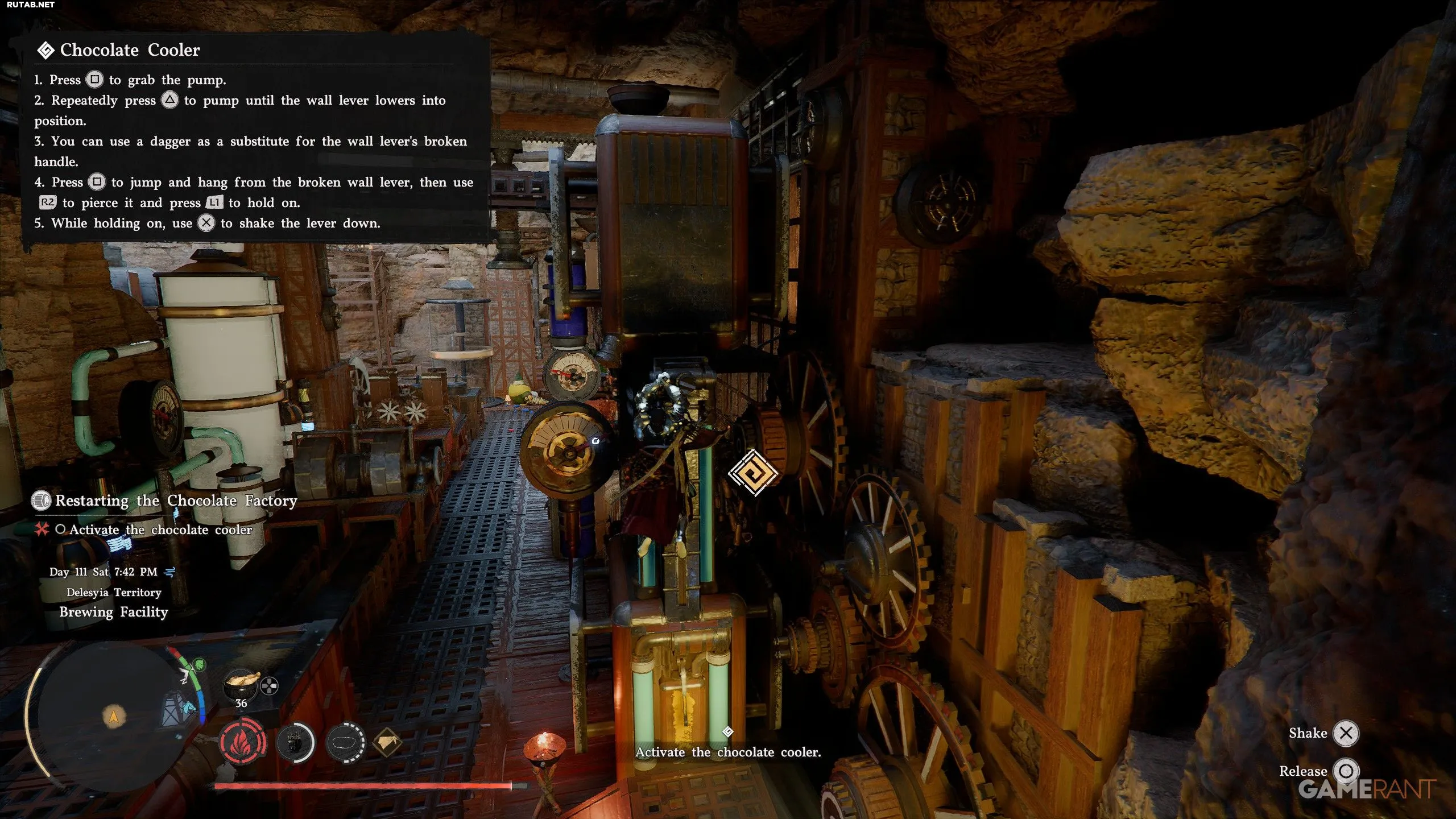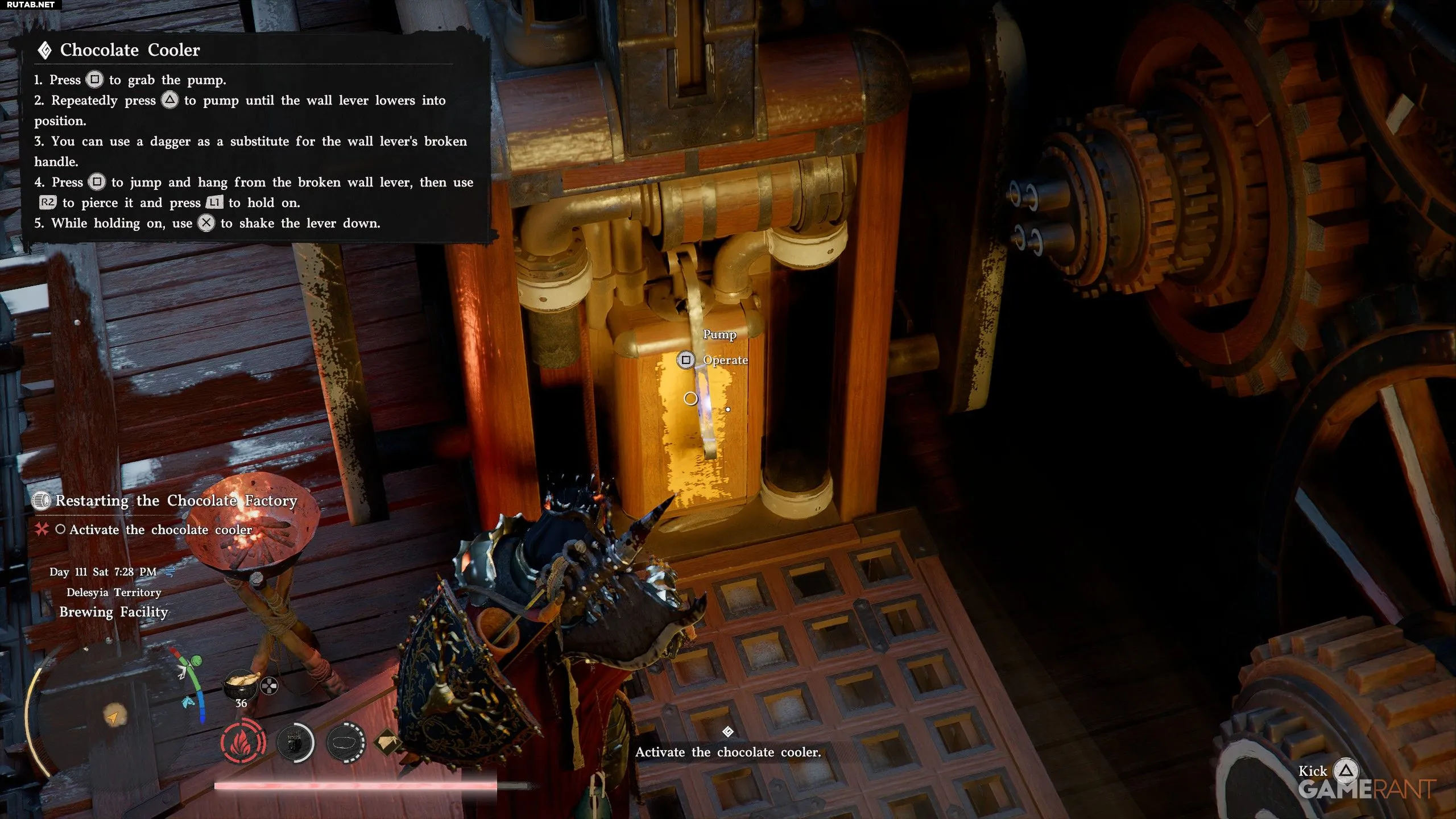 - Взаимодействуйте с насосом и нажимайте Triangle/Y, пока рычаг не упадёт на пол.