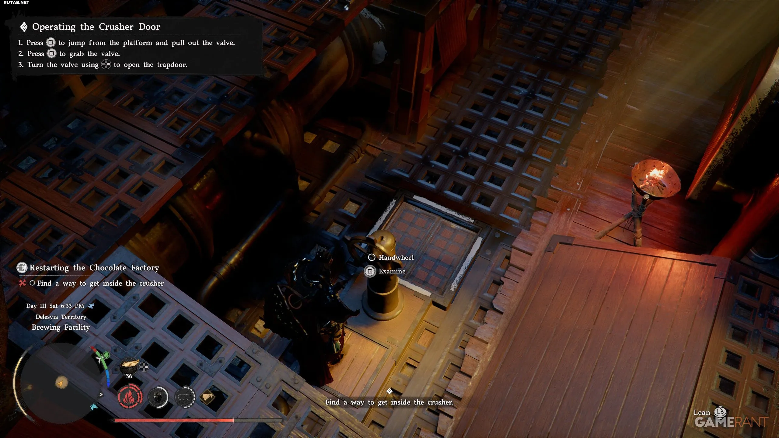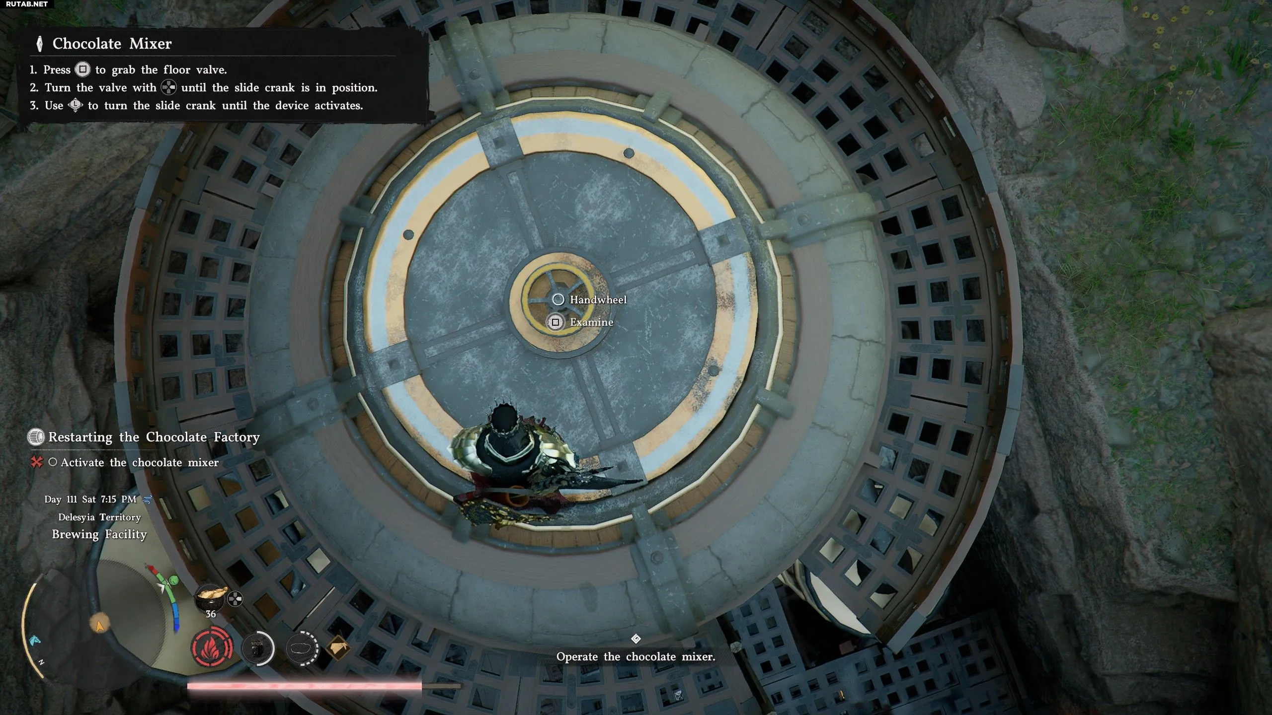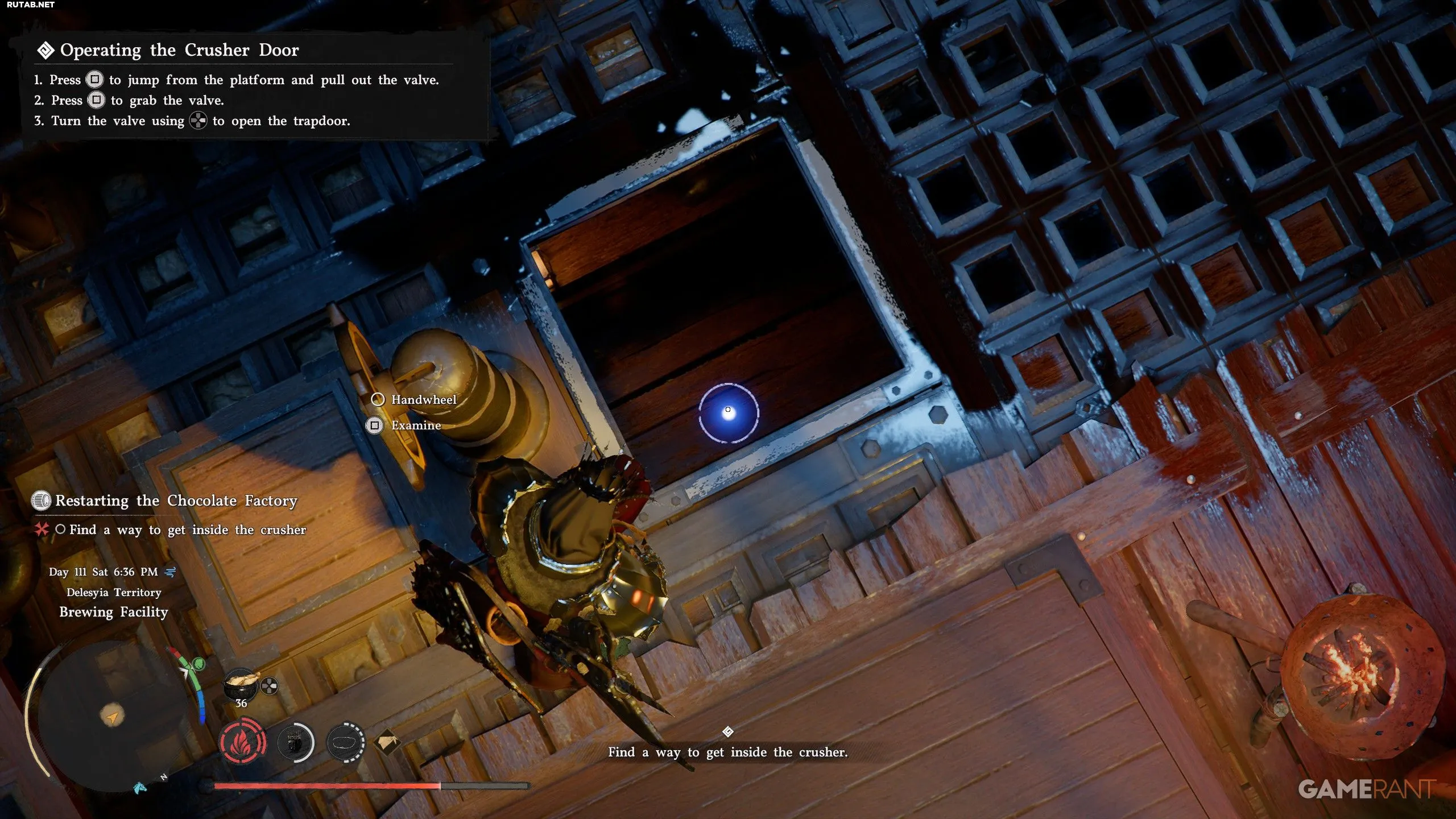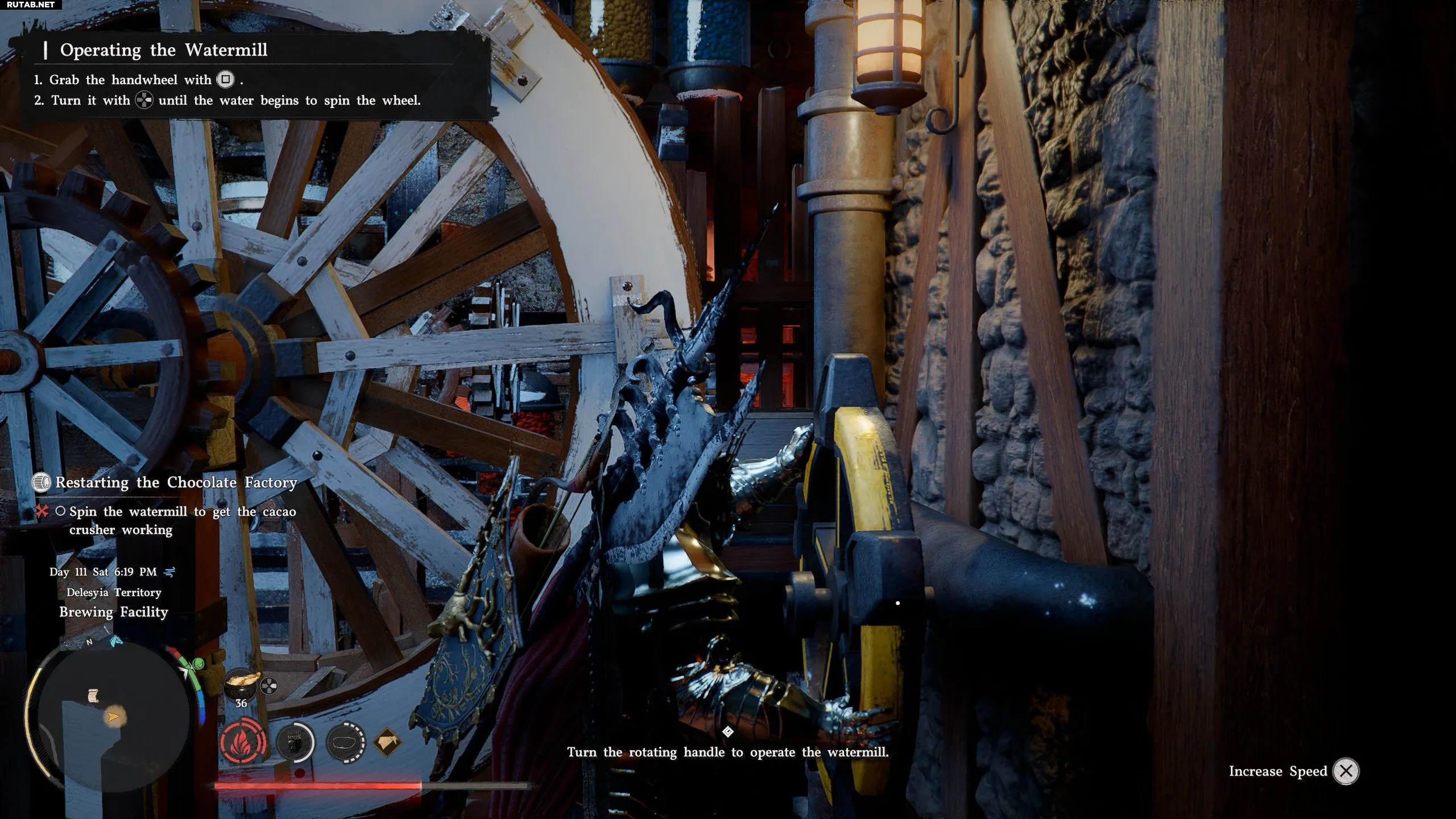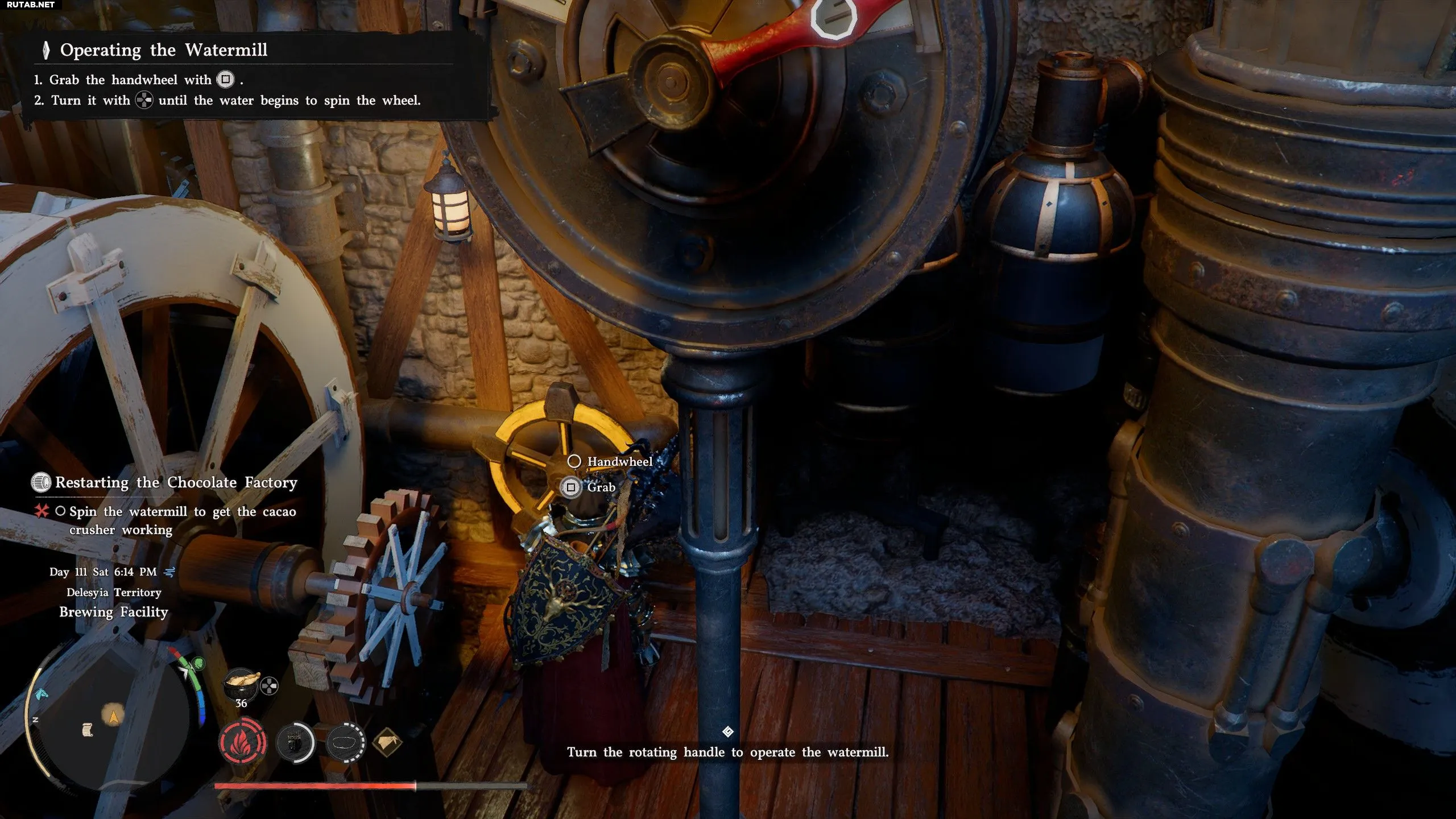 - Вы можете схватиться за маховик и вращать его, удерживая кнопку Right на крестовине, пока белое водяное колесо слева не начнёт вращаться. Просто продолжайте удерживать Right, пока маховик не перестанет поворачиваться.