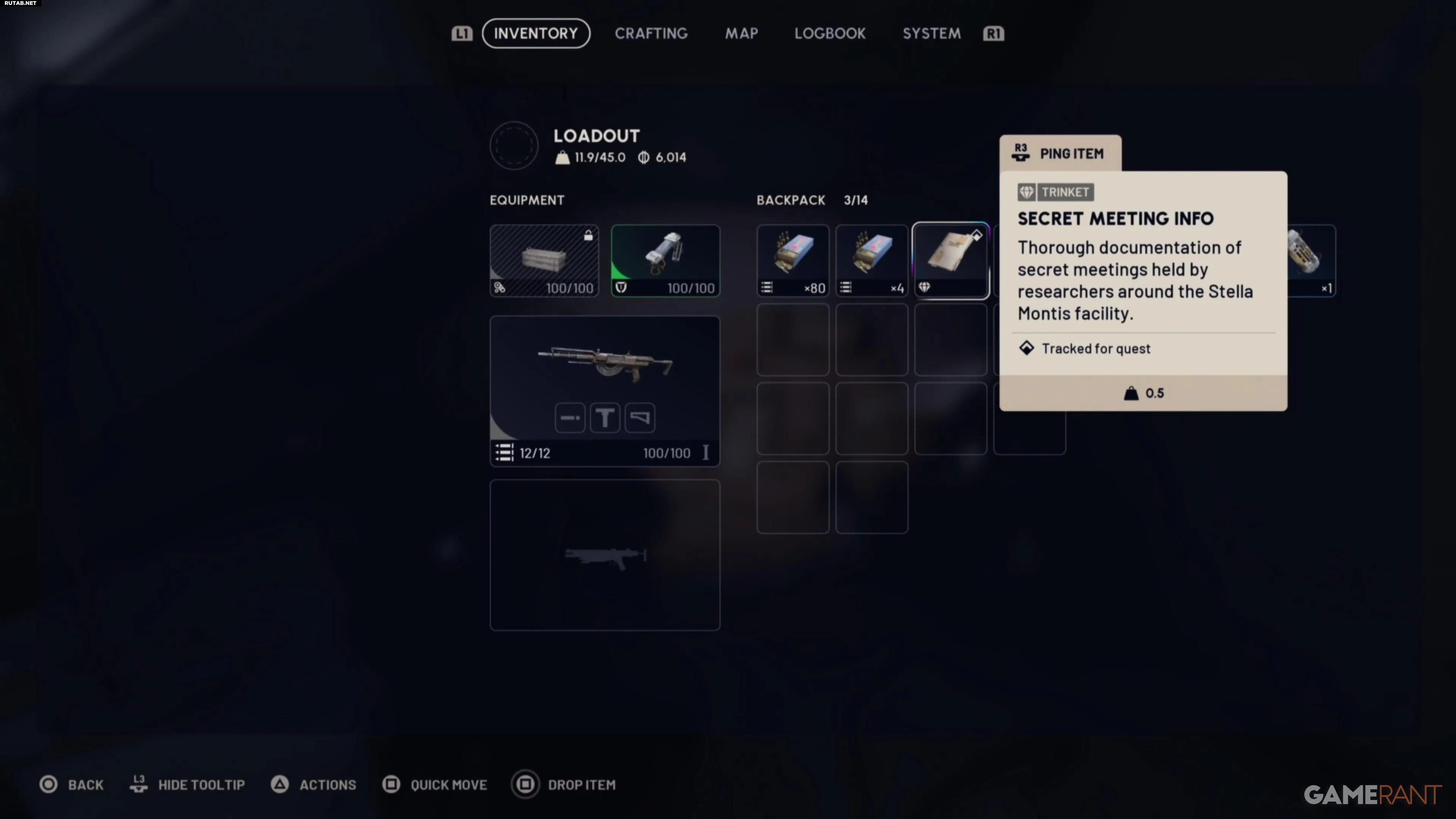 Для выполнения задания вам понадобится «Сейф-карман», чтобы вынести предмет в конце. Однако, поскольку точка эвакуации находится рядом с финальной целью, а сам квест довольно короткий, можно взять бесплатный набор снаряжения. Если же вы собираете свой, рекомендуется взять «Фотоэлектрический плащ»: вокруг «Медицинских исследований» и «Хранилища семян» часто скапливаются «Шреддеры», и лучше избегать с ними боя.