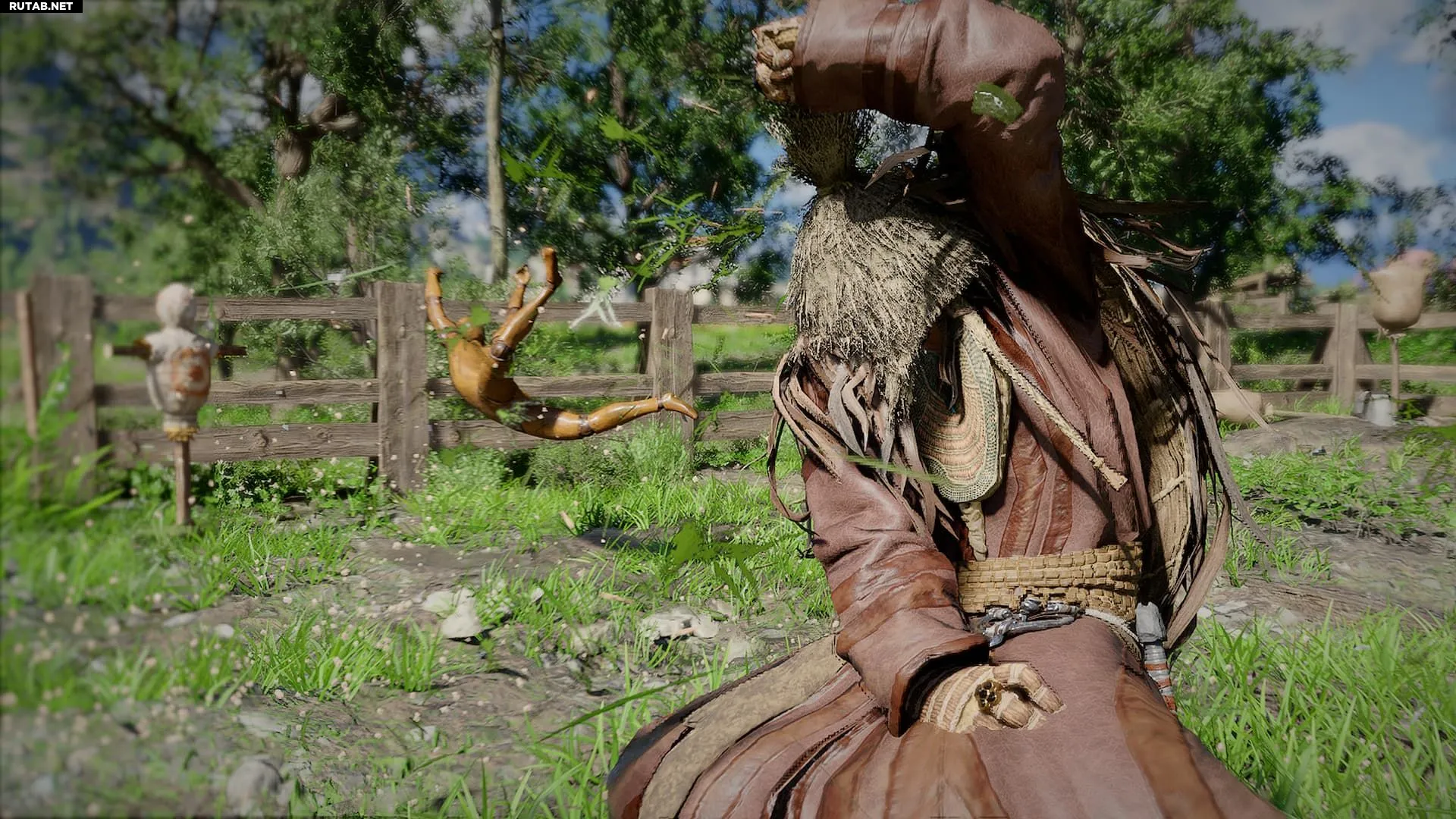 Общая идея заключается в том, чтобы взять хотя бы один из этих типов атак и скомбинировать их в связную цепочку. Не все приёмы можно связать друг с другом (например, сильную атаку с атакой голыми руками), поэтому мы рекомендуем экспериментировать с учебным пугалом в Багровой пустыне, чтобы понять, что работает.